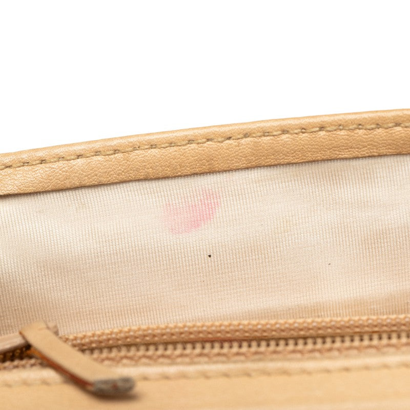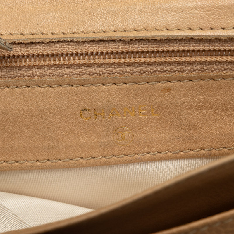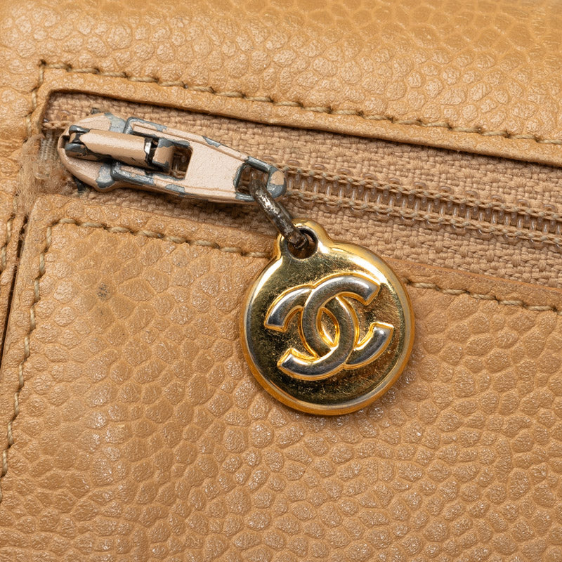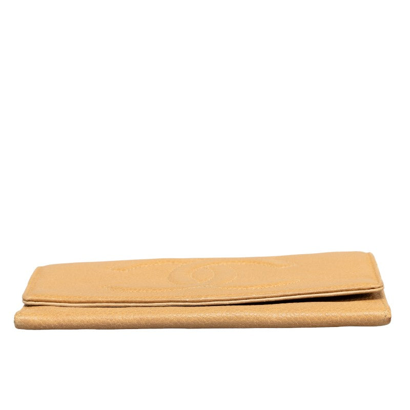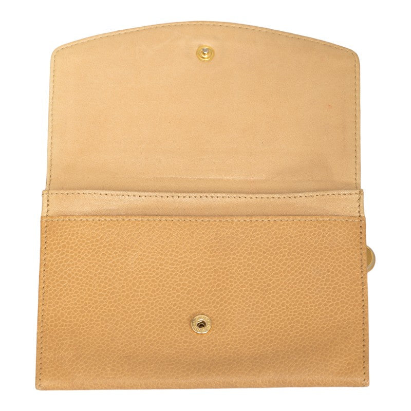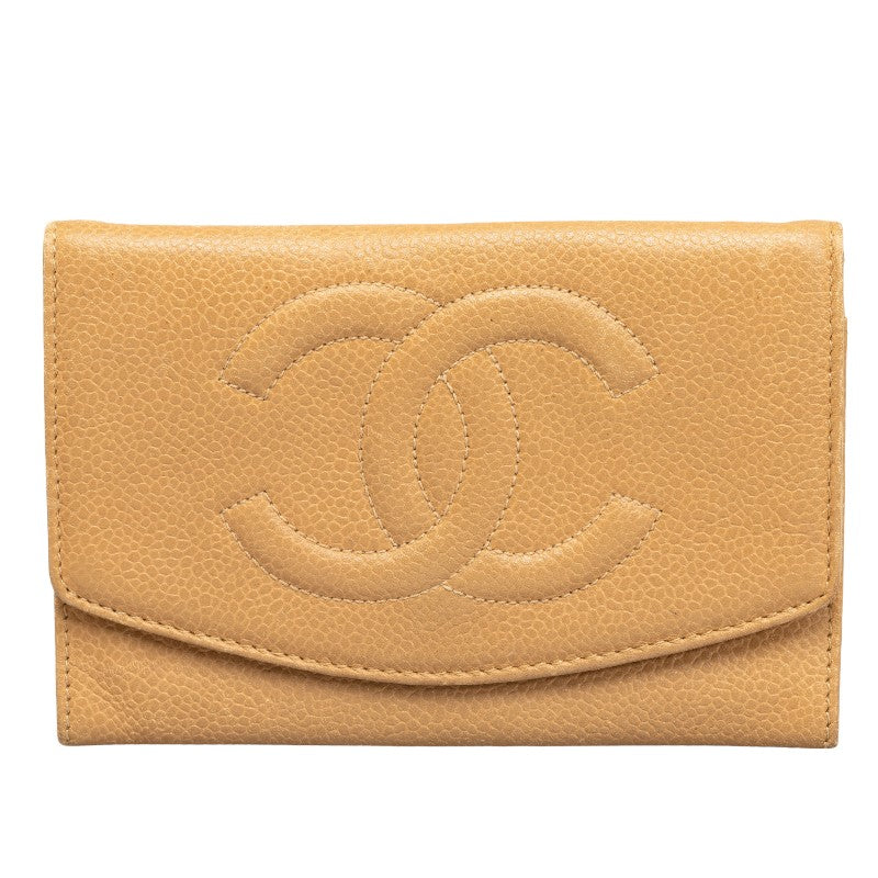 CHANEL two folded wallet cabia skin beige ladies and gentlemen