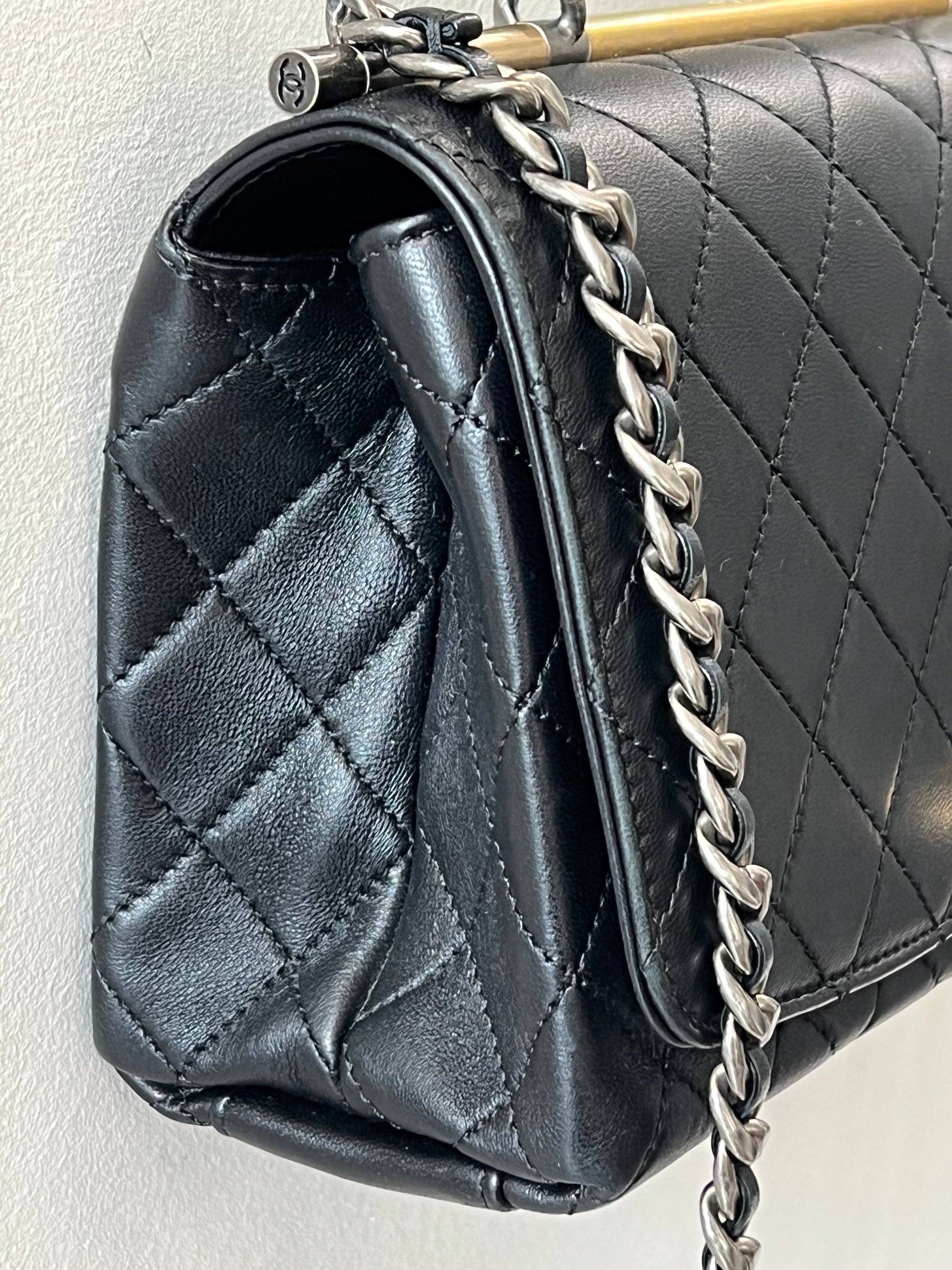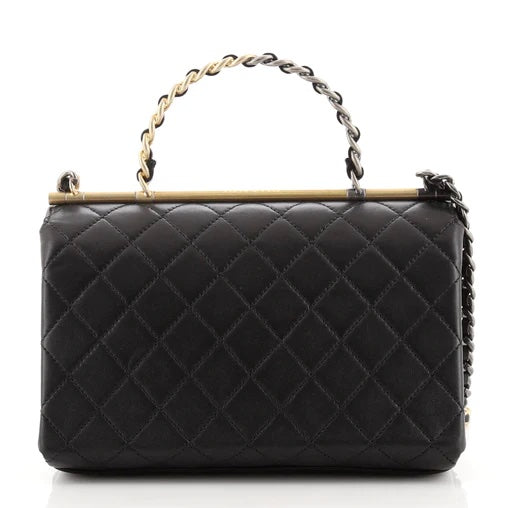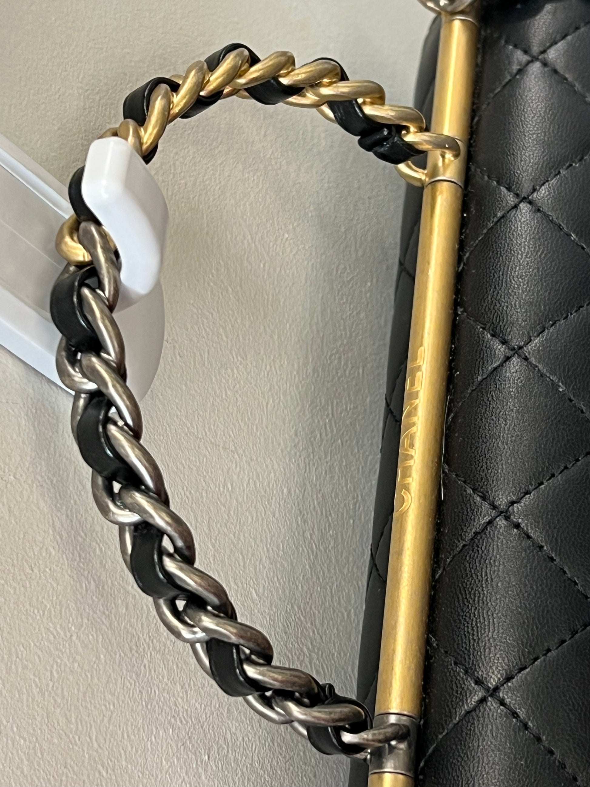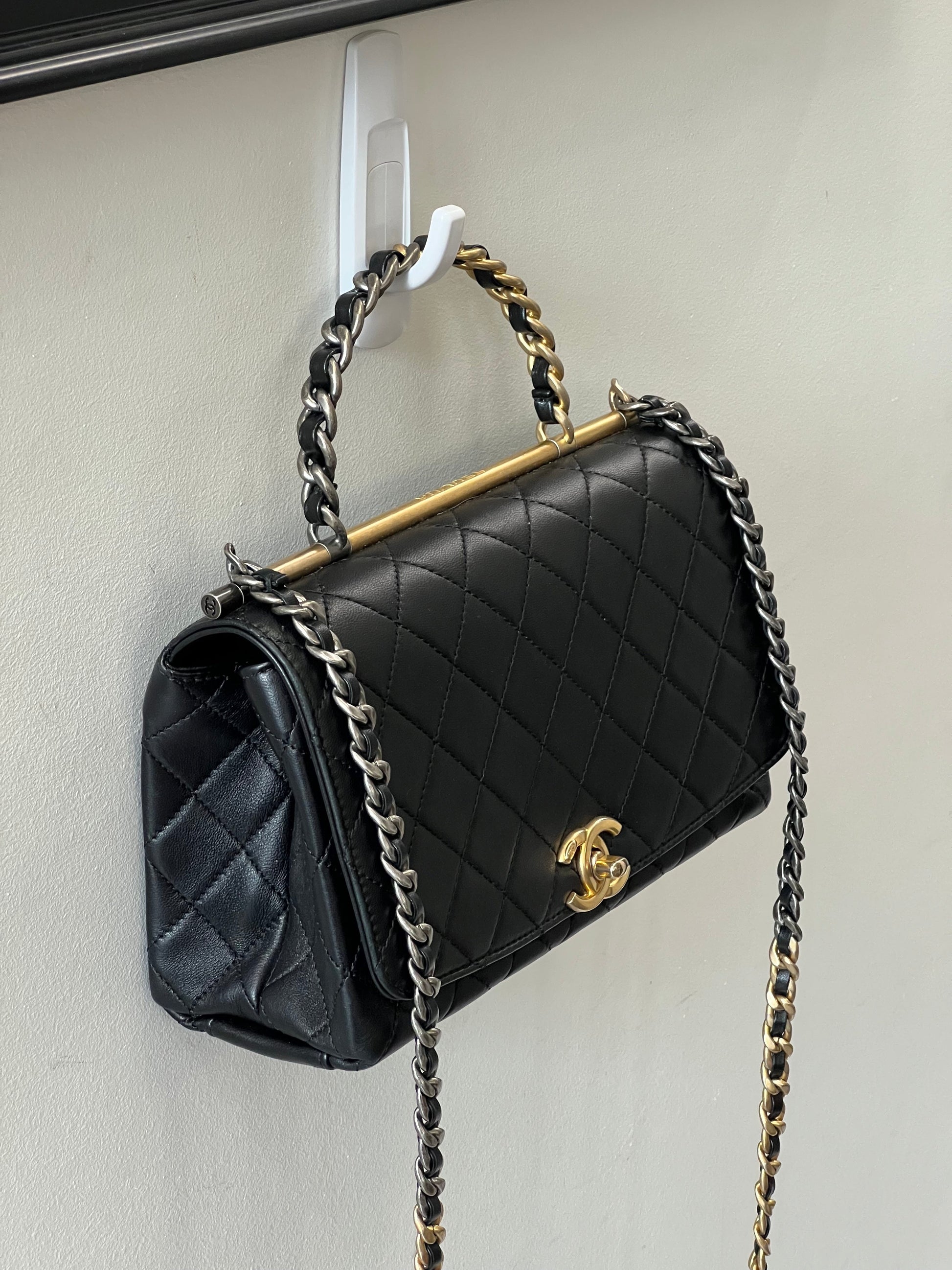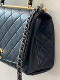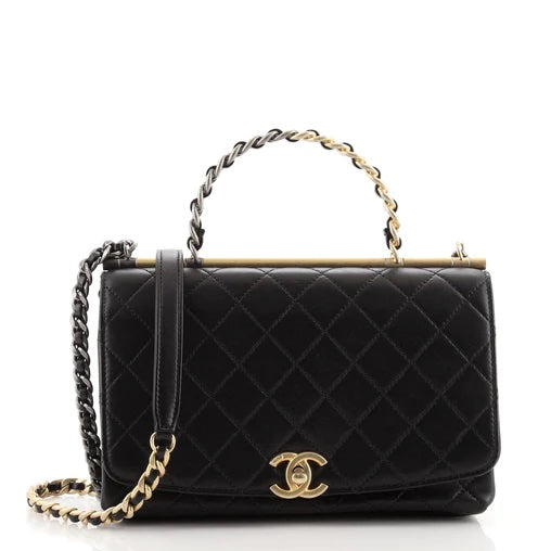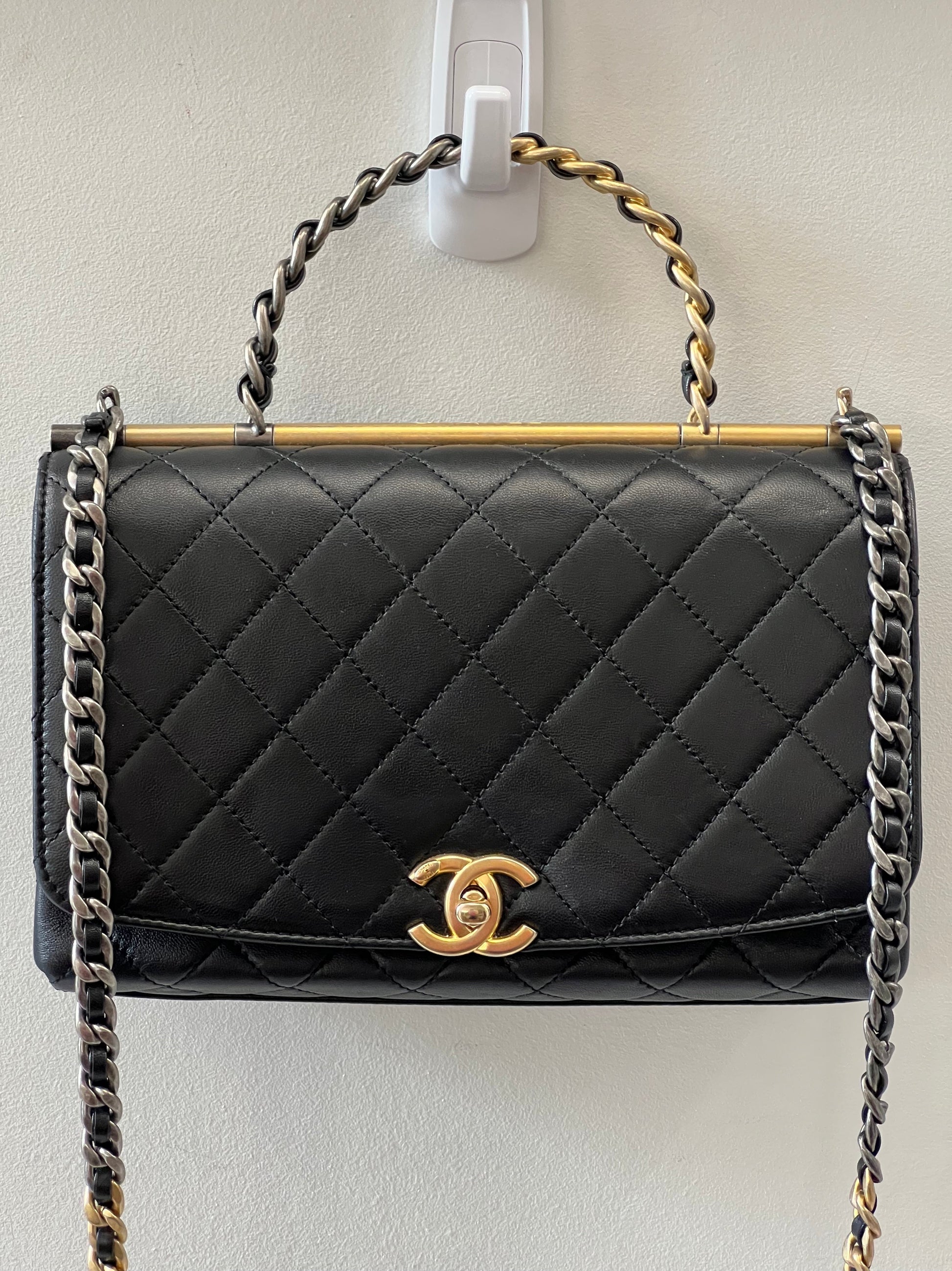 CHANEL TWO-TONE CHAIN QUILTED LAMBSKIN TOP HANDLE FLAP BAG