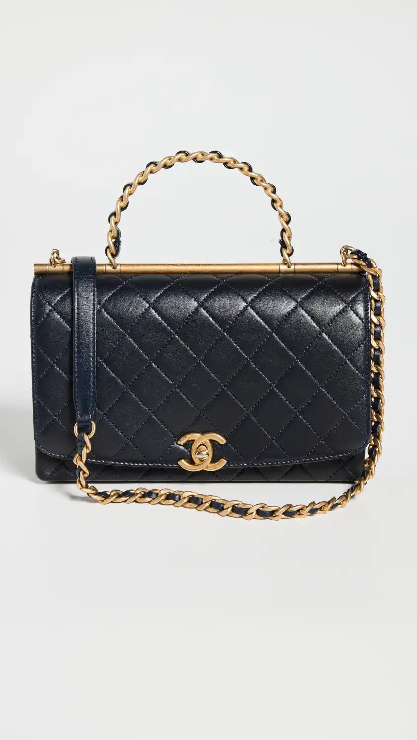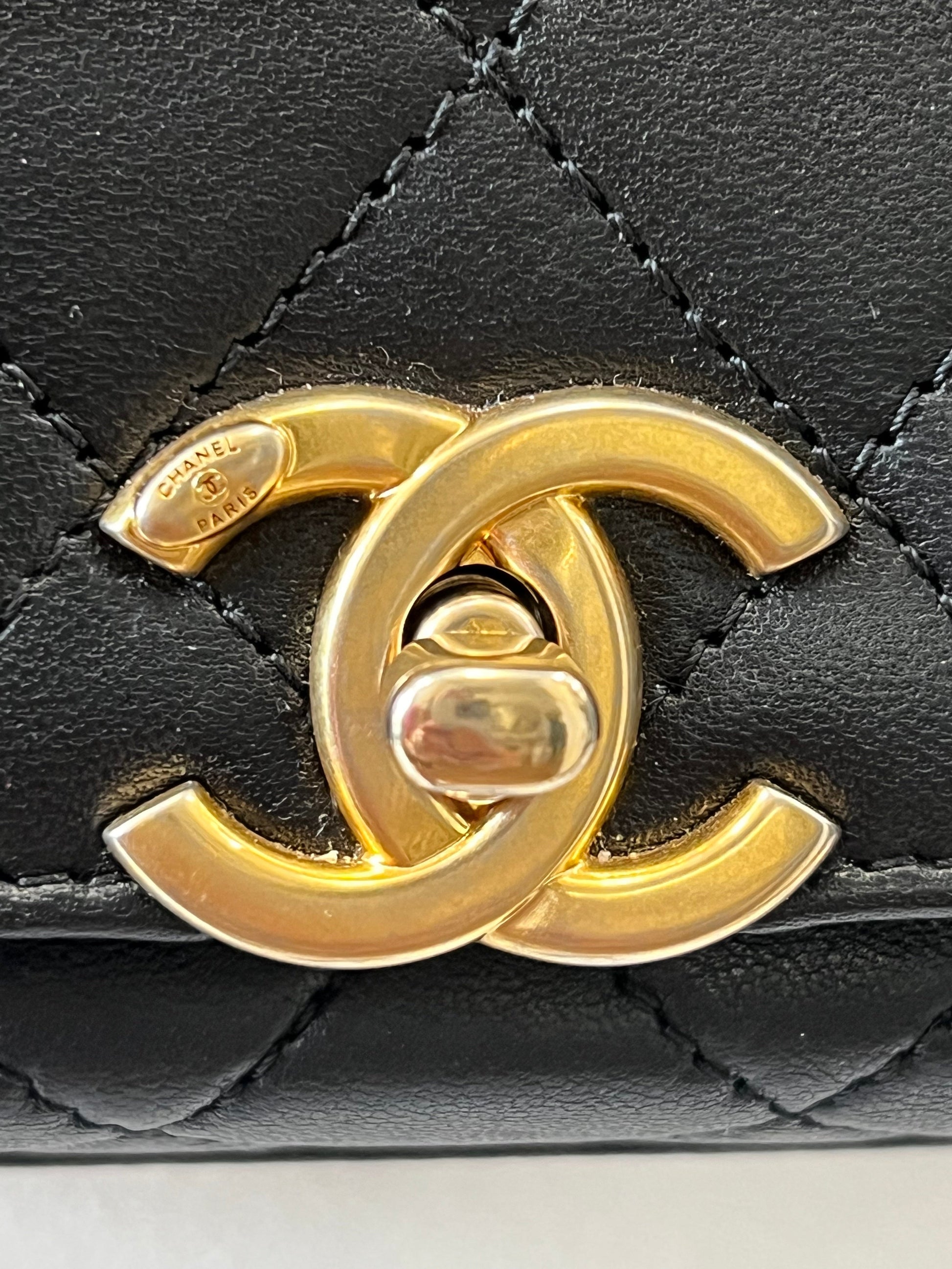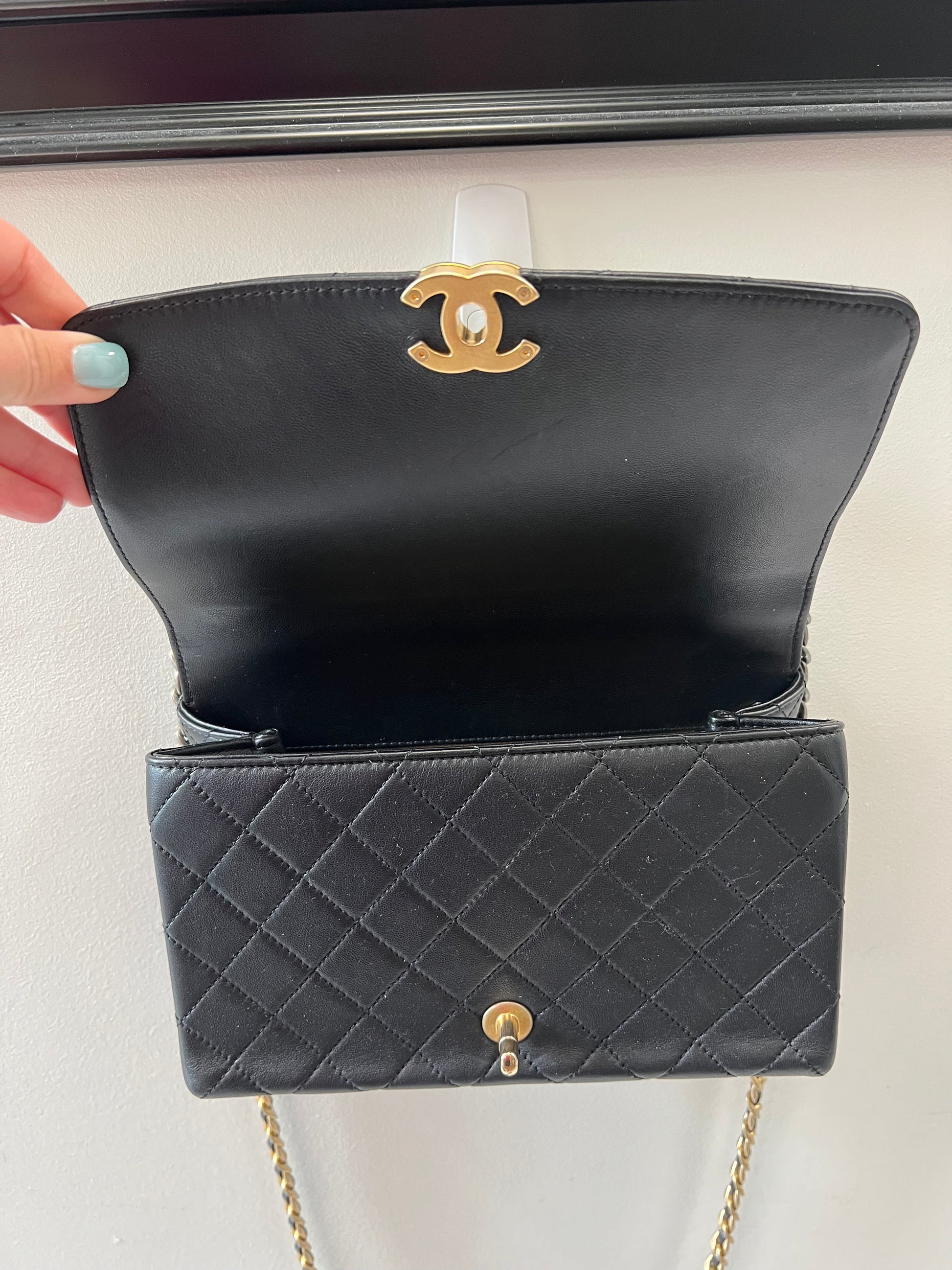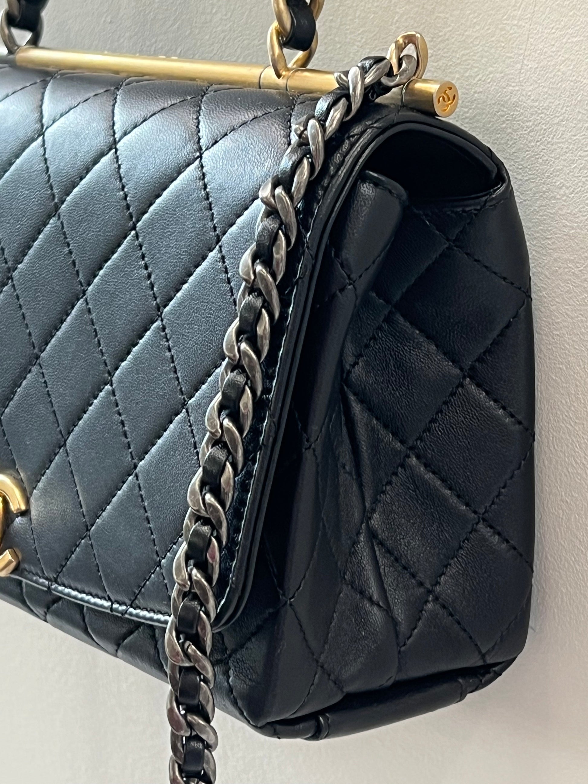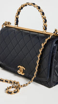 CHANEL TWO-TONE CHAIN QUILTED LAMBSKIN TOP HANDLE FLAP BAG