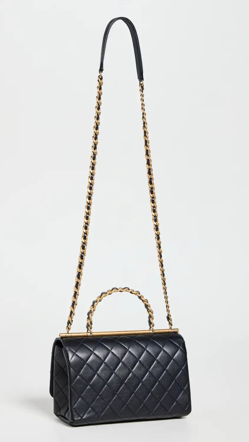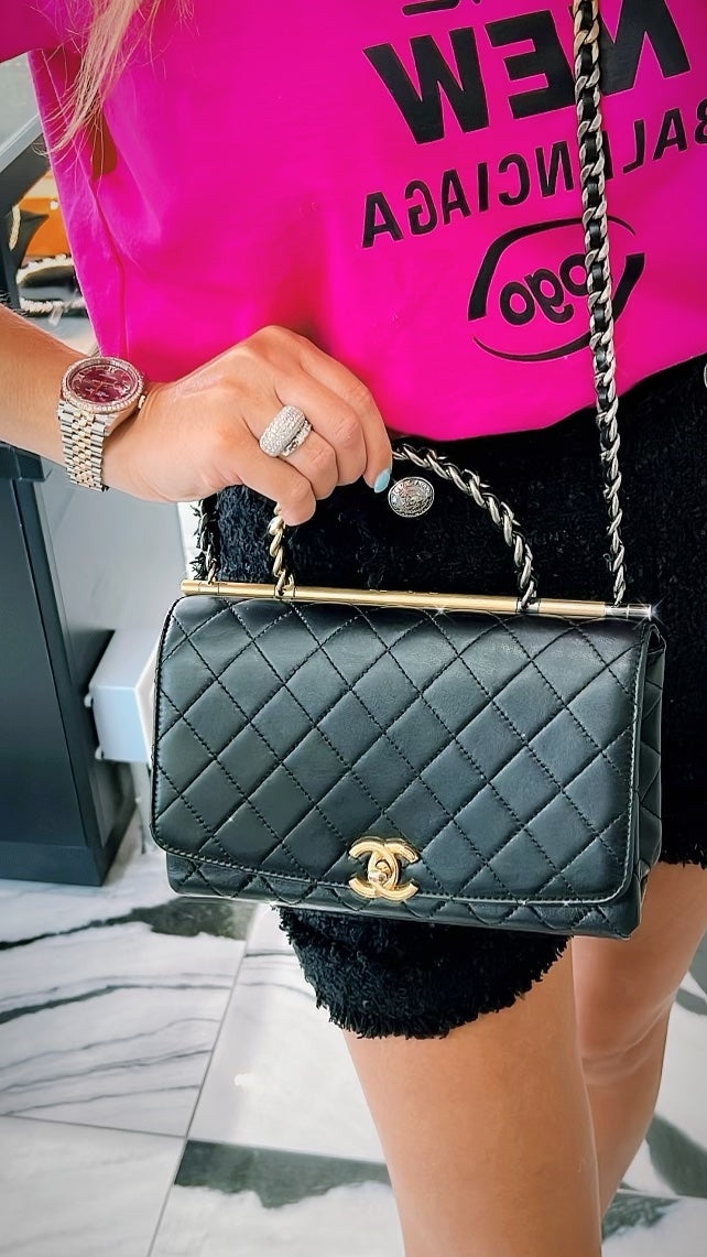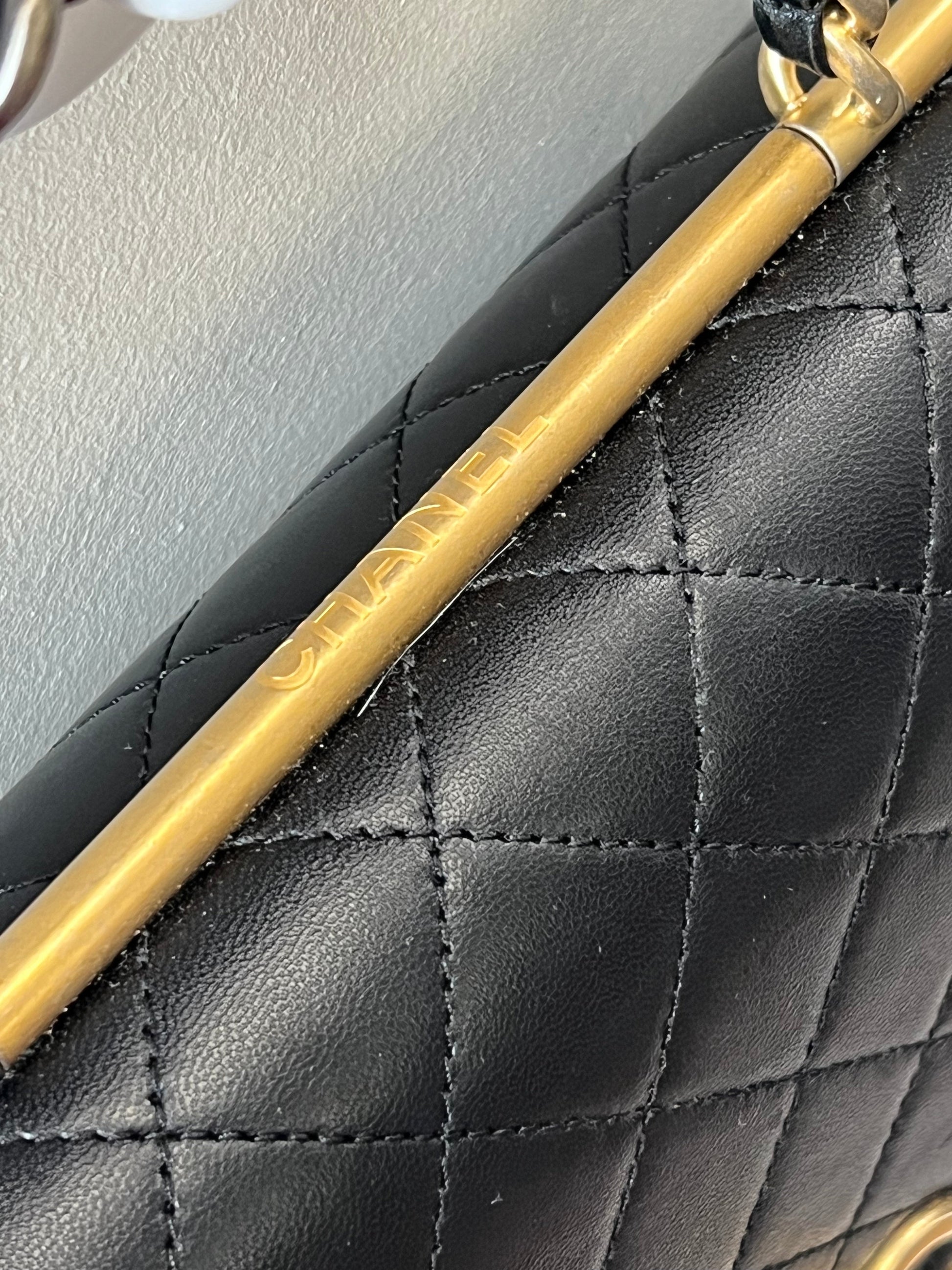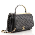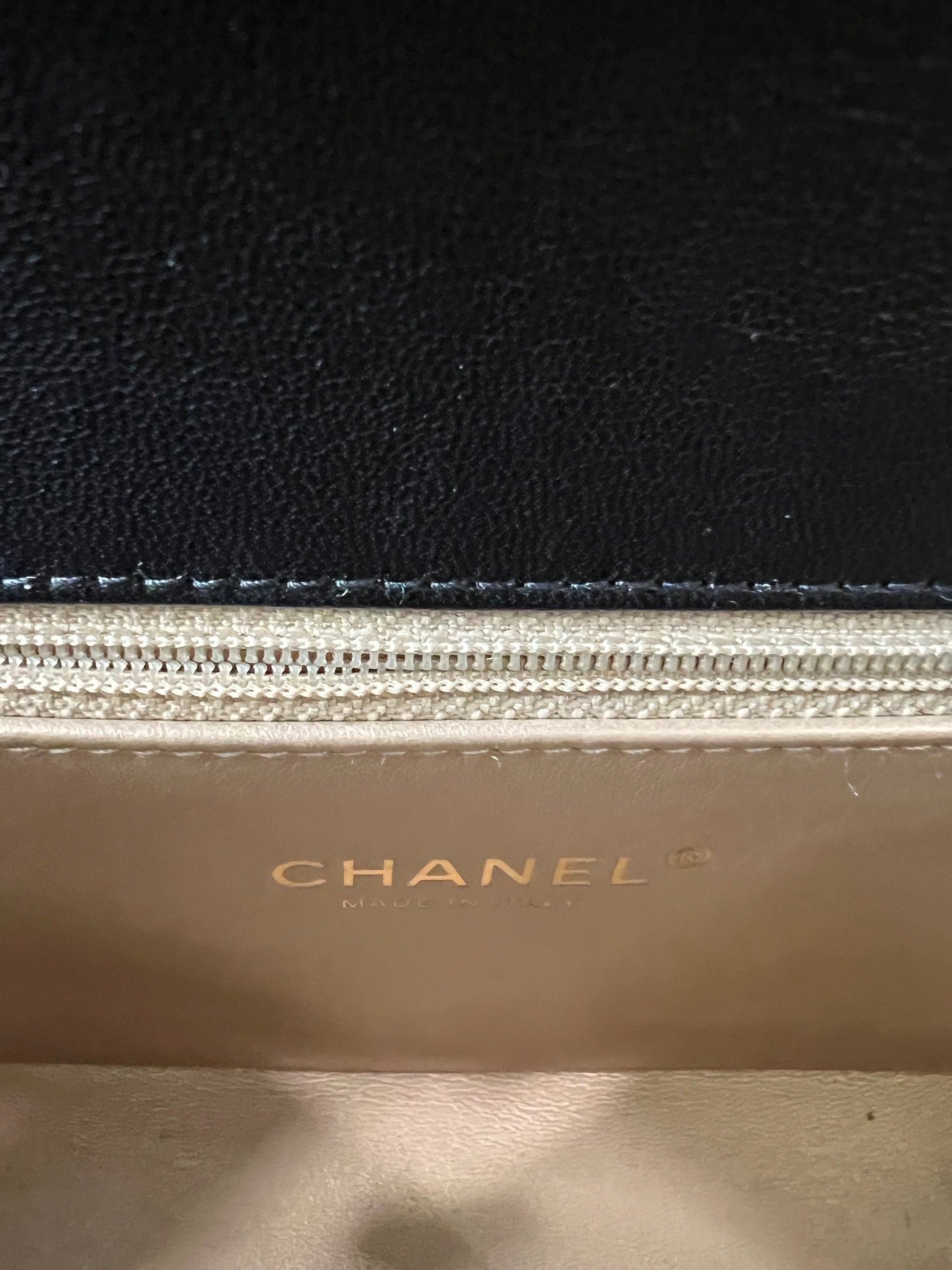 CHANEL TWO-TONE CHAIN QUILTED LAMBSKIN TOP HANDLE FLAP BAG