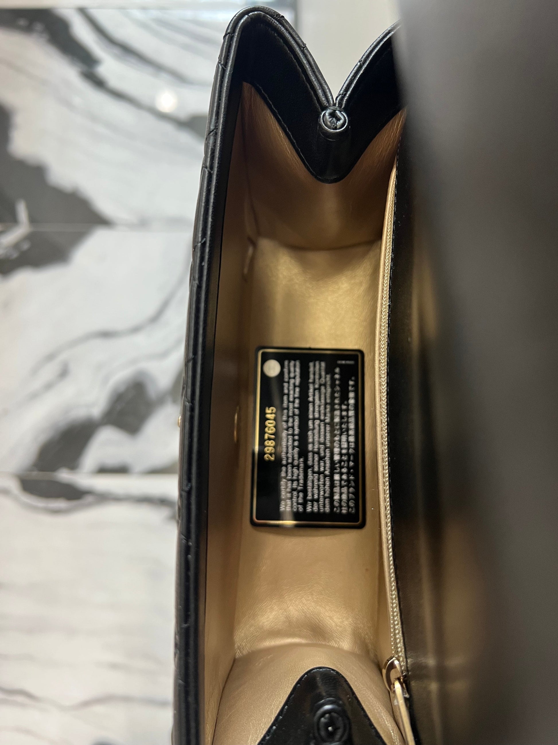 This Stunning Bag is crafted of diamond-quilted lambskin leather in black.