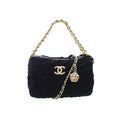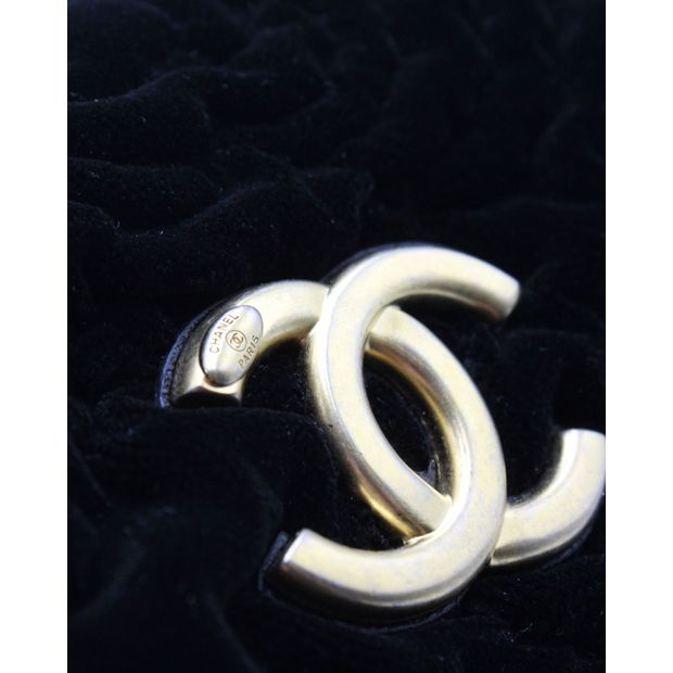 CHANEL Two-Way Chain Camellia Shoulder Bag in Black Velvet