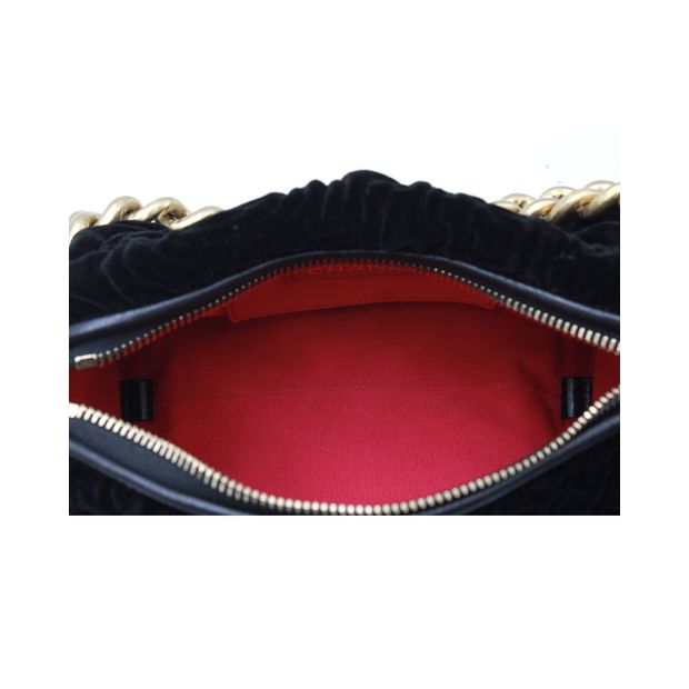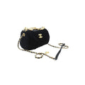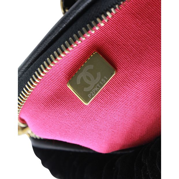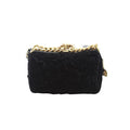 Inspired by iconic Chanel jewelry designs, this exquisite bag is crafted from black velvet and features gold chain detailing that can be as a shoulder strap or across the body for hands-free ease.