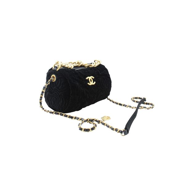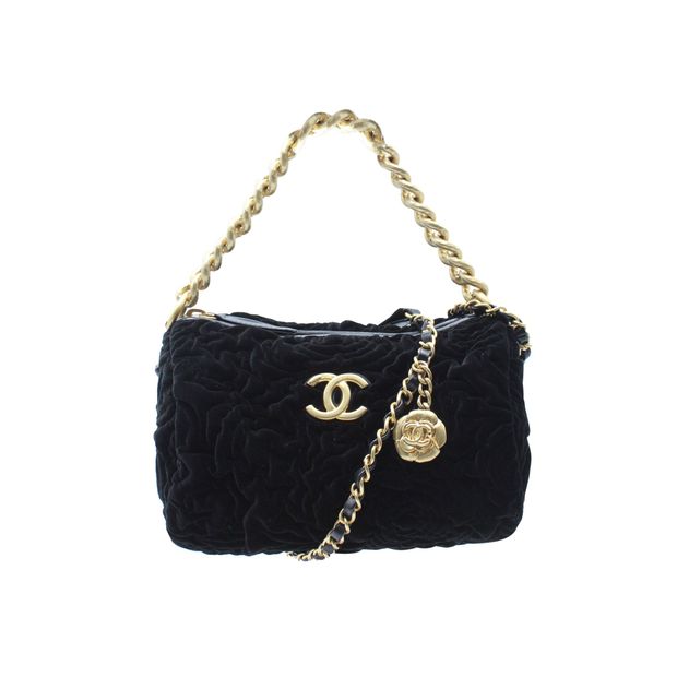 Chanel Two-Way Chain Camellia Shoulder Bag in Black Velvet Color: black Material: Nylon | Nylon velvet Condition: very good Sign of wear: item, but no visible defects SKU: 265071 / NAPBKGBBA258556W Dimensions: Length: 180 mm, Width: 145 mm, Height: 80 mm Collection ID: 20264