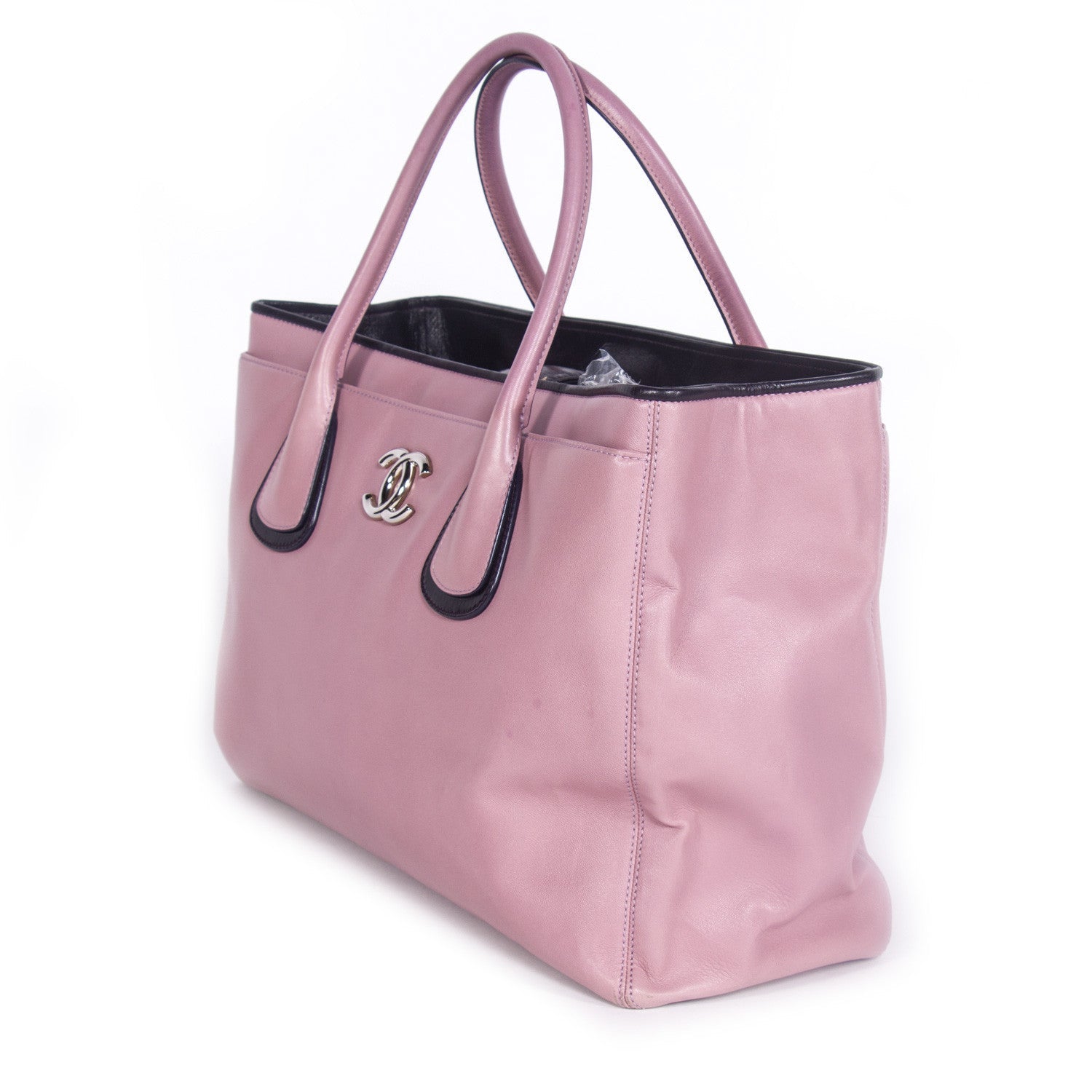 Details: Pink Lambskin Leather / Silver-Tone Hardware / Dual Top Rolled Handles / Silver-Tone CC Logo Embellishment At Front / Dual Pockets At Exterior With Magnetic Snap Closures / Grey Woven Lining / Three Large Compartment / One Removable Compartment / Dual Pockets At Interior Walls With Zip Closure / Magnetic Snap Closure At Top