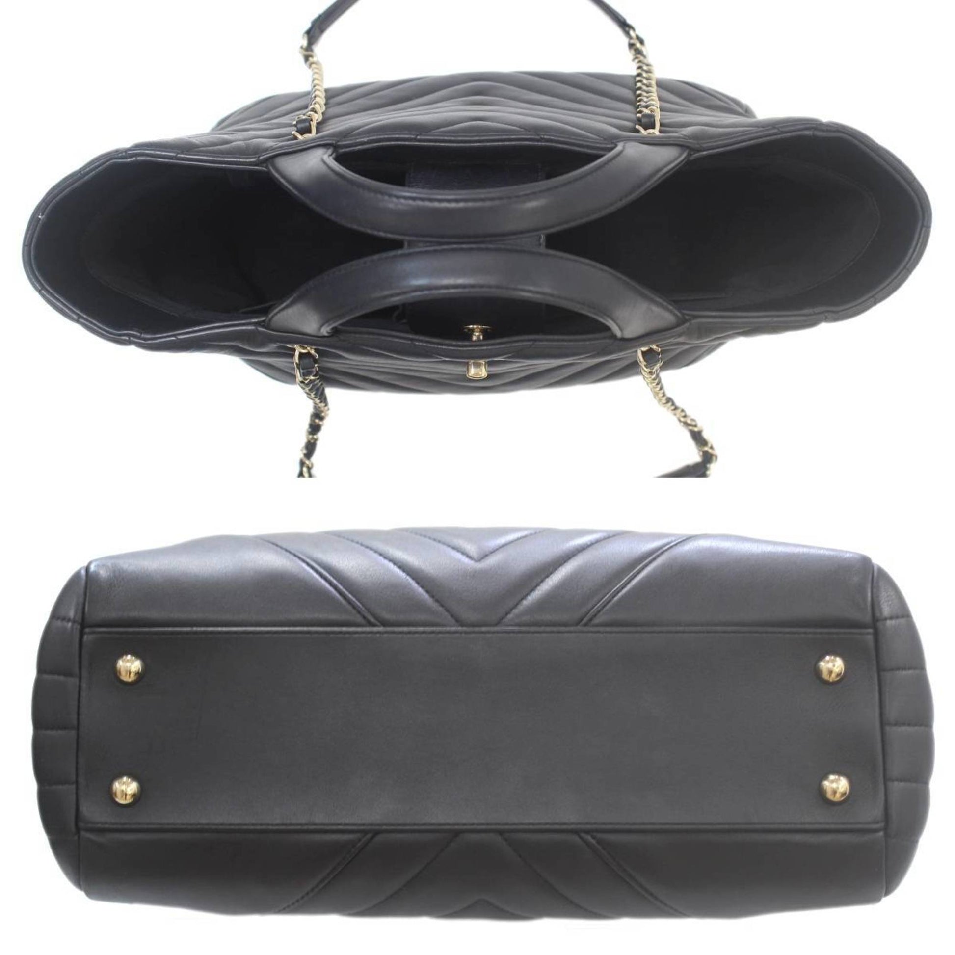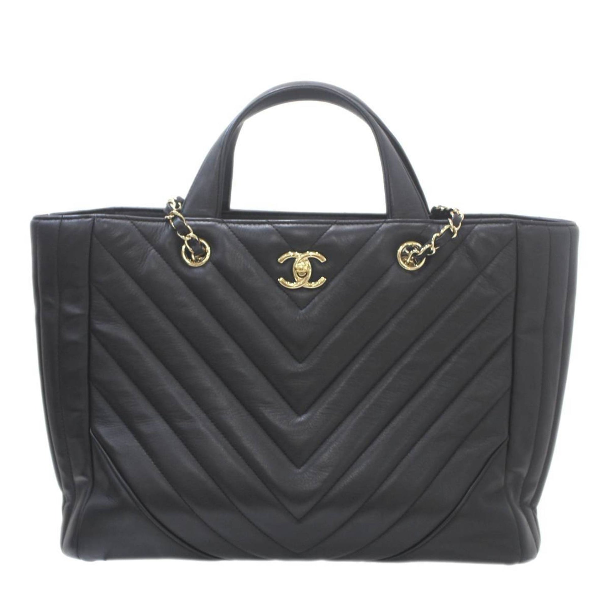 CHANEL V-stitch 2way small tote bag chain