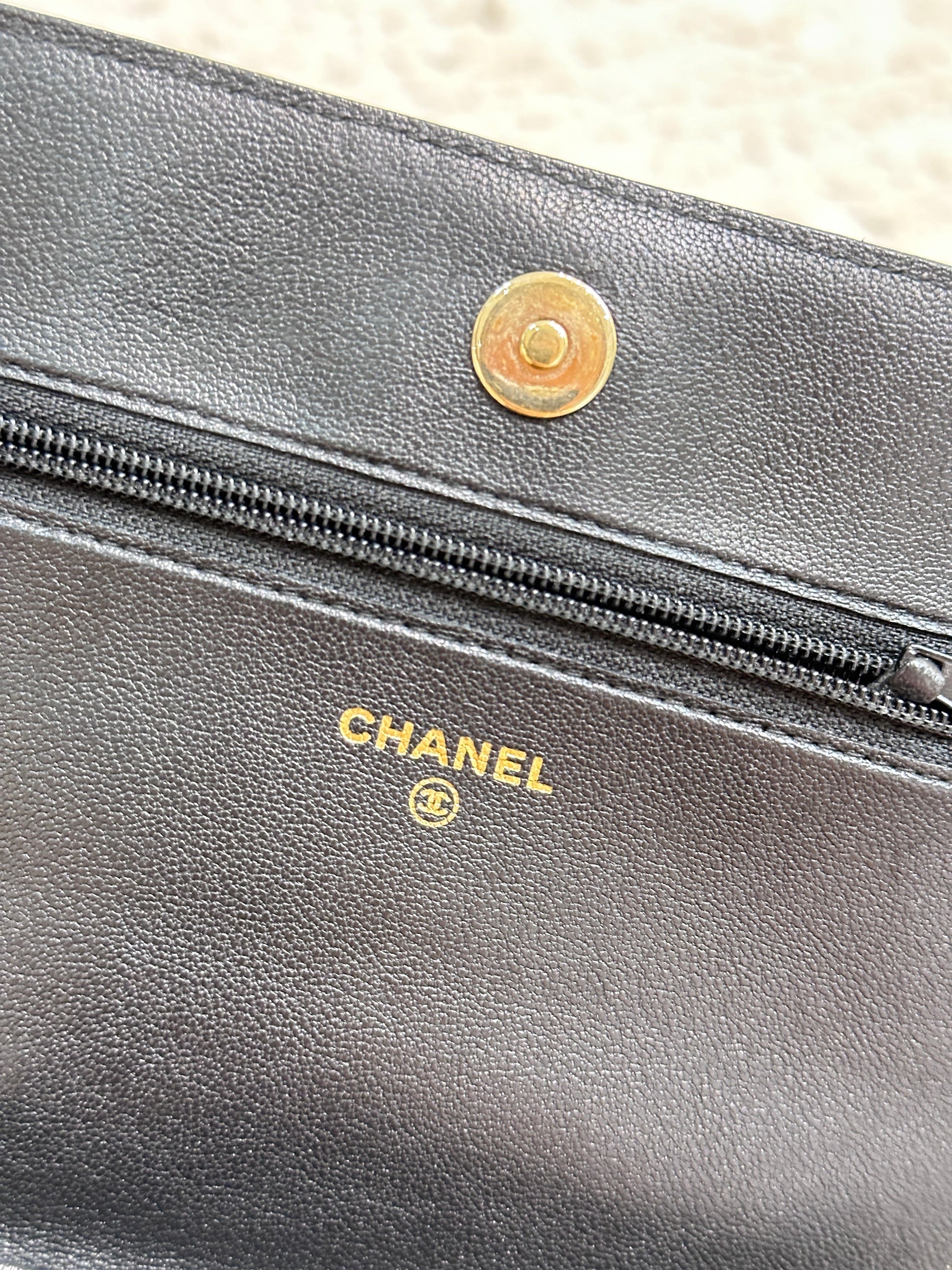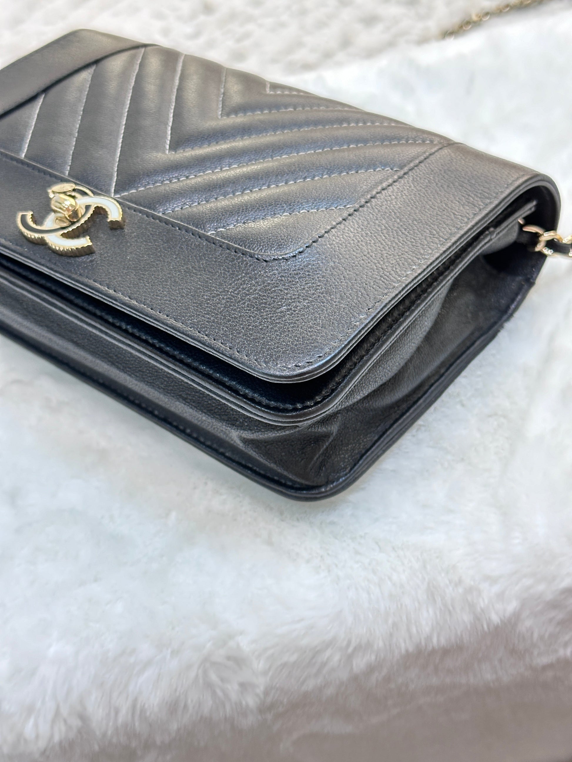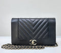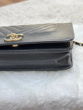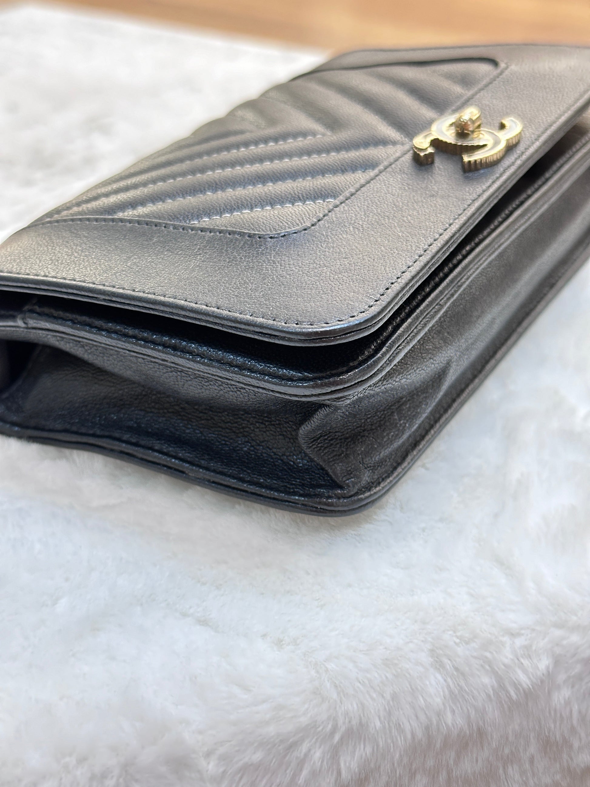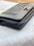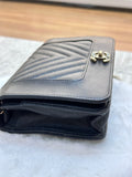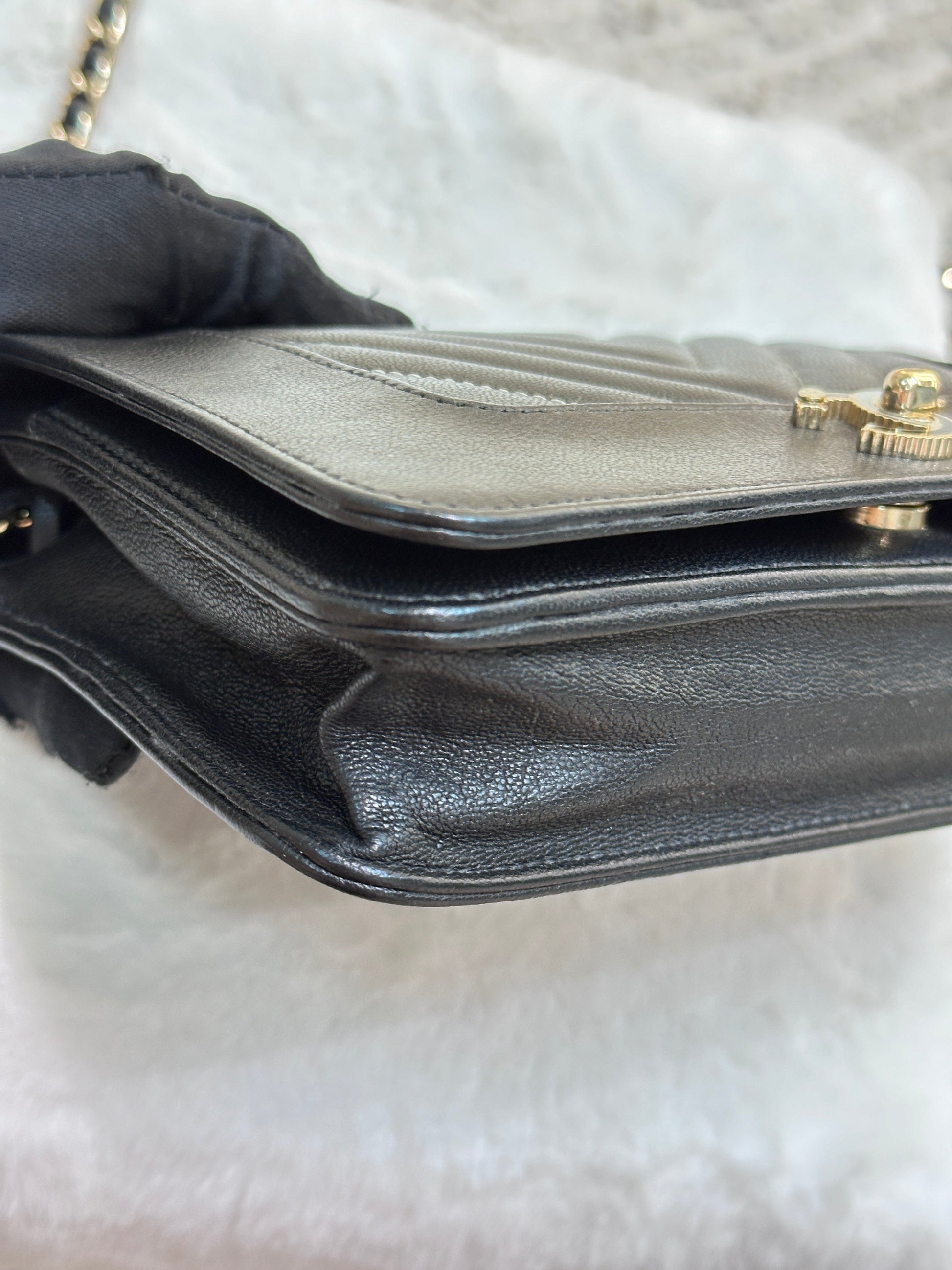 Chanel V Stitch Calfskin Chain wallet Black GHW