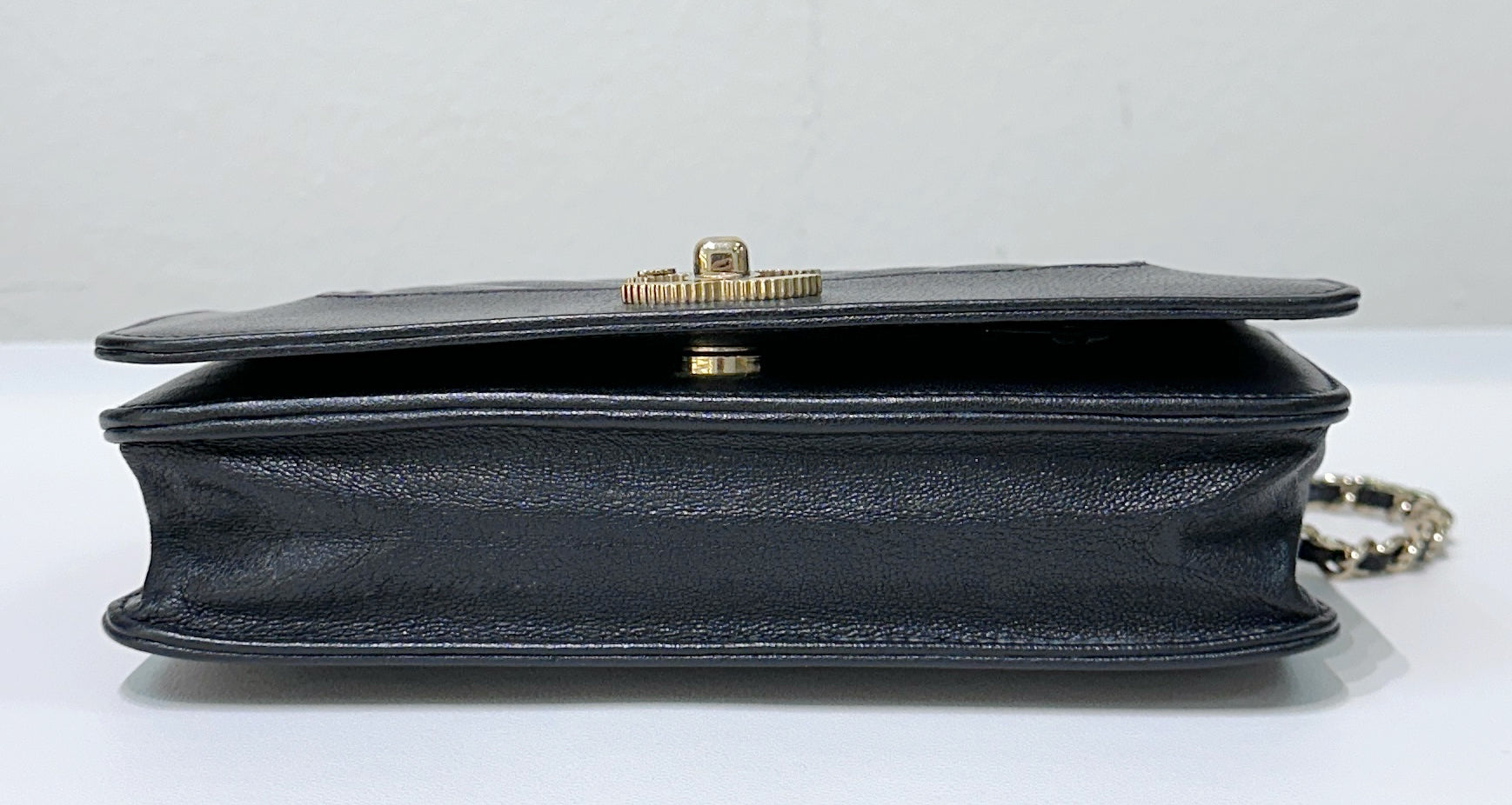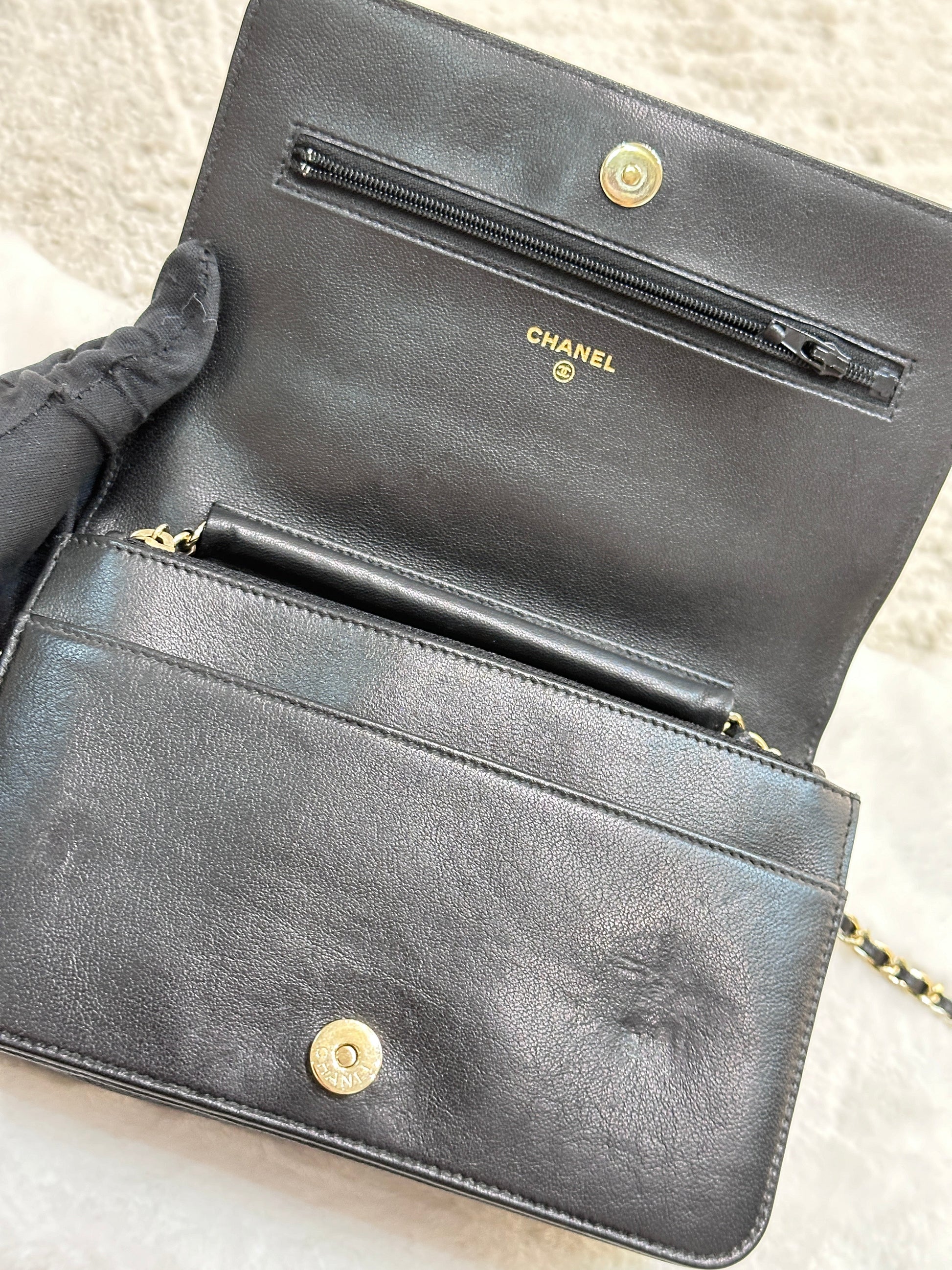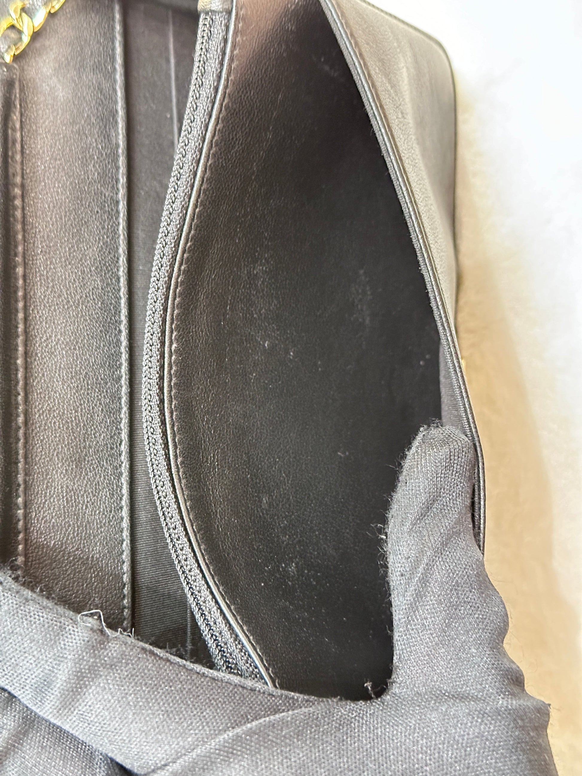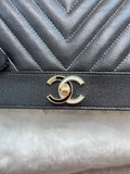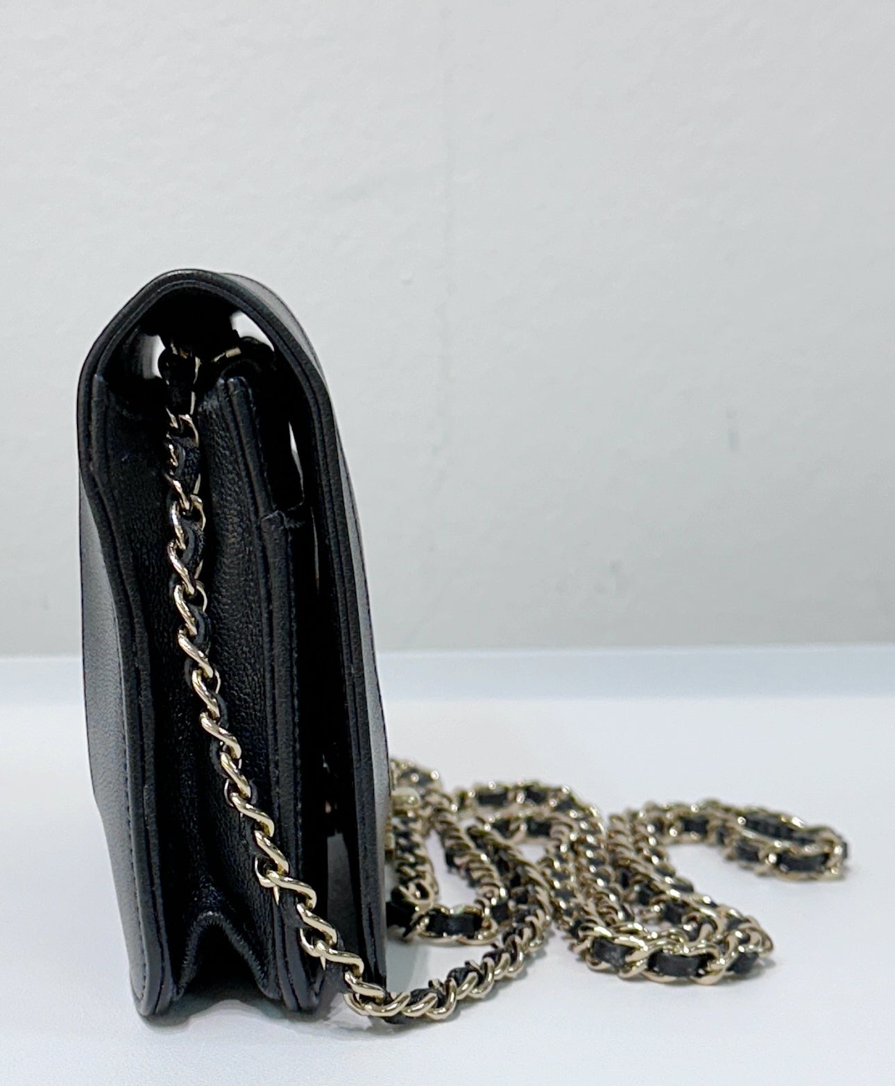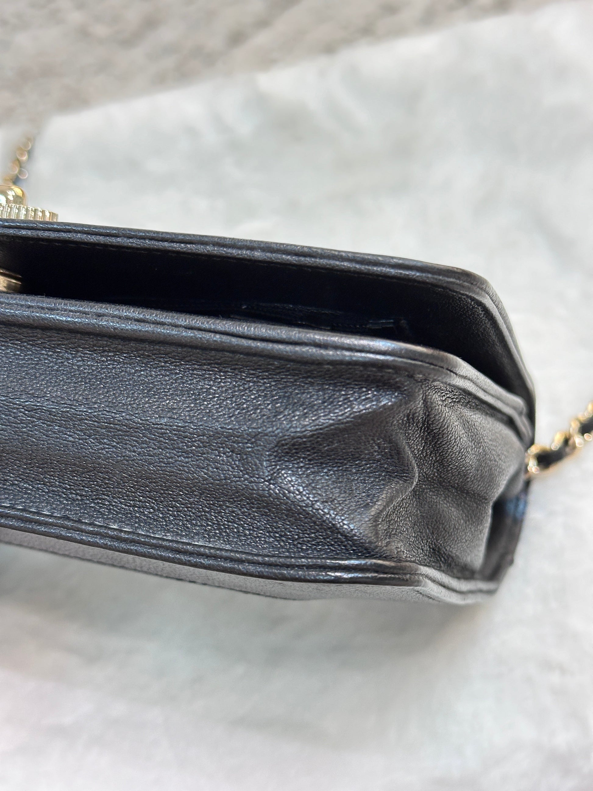 Chanel V Stitch Calfskin Chain wallet Black GHW