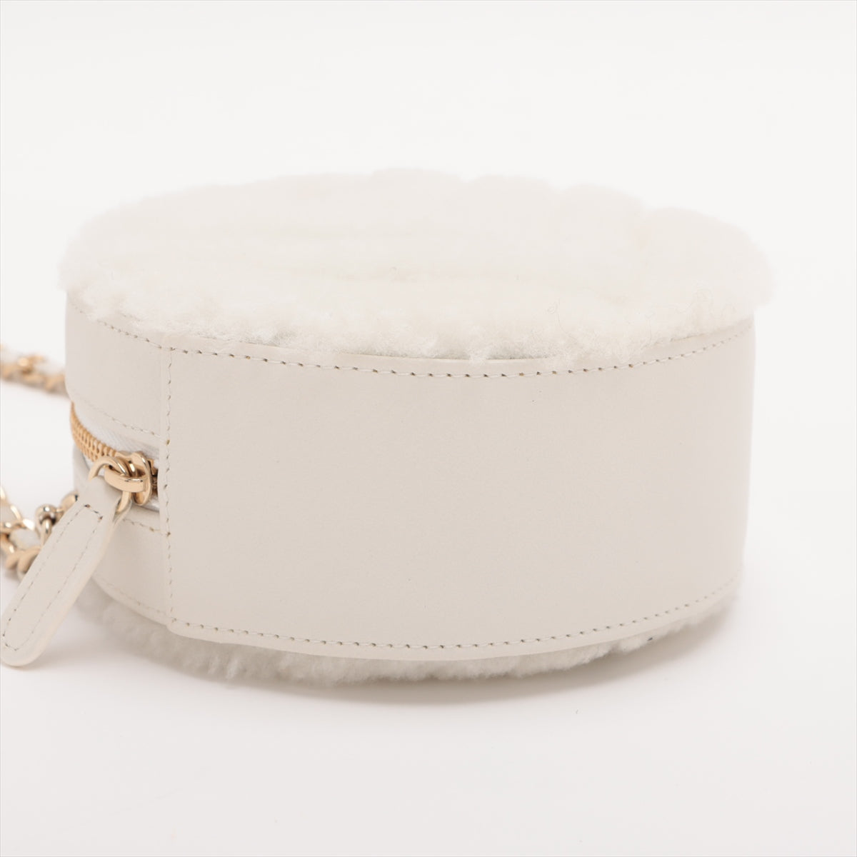 Chanel V Stitch Chain Shoulder Bag Round White G 28th