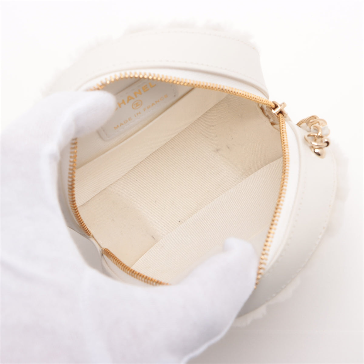 Chanel V Stitch Chain Shoulder Bag Round White G 28th