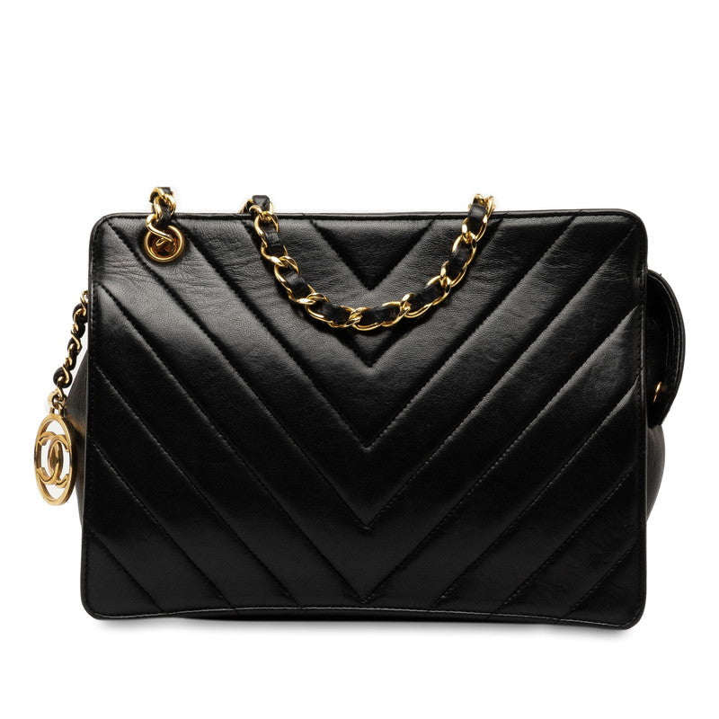 Chanel V Stitch Circus Cochrane Chain Shoulder Bag Black Lambskin CHANEL