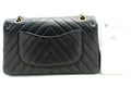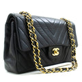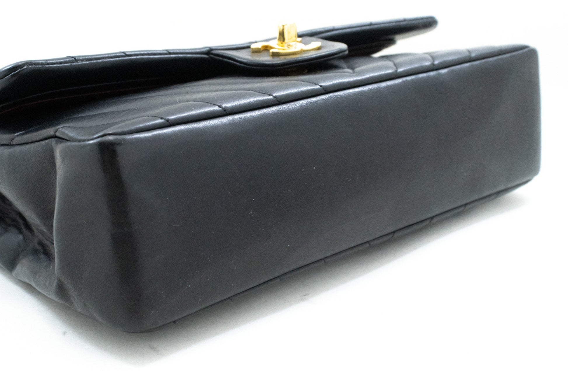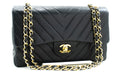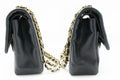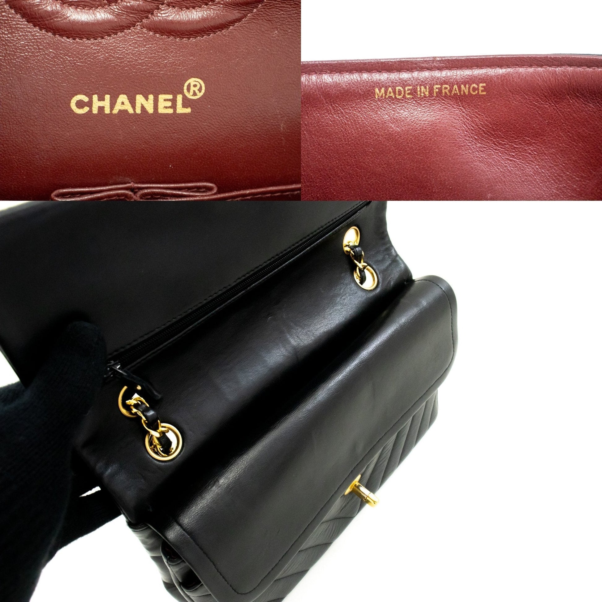 CHANEL V-Stitch Double Flap 10" Chain Shoulder Bag Black Lambskin