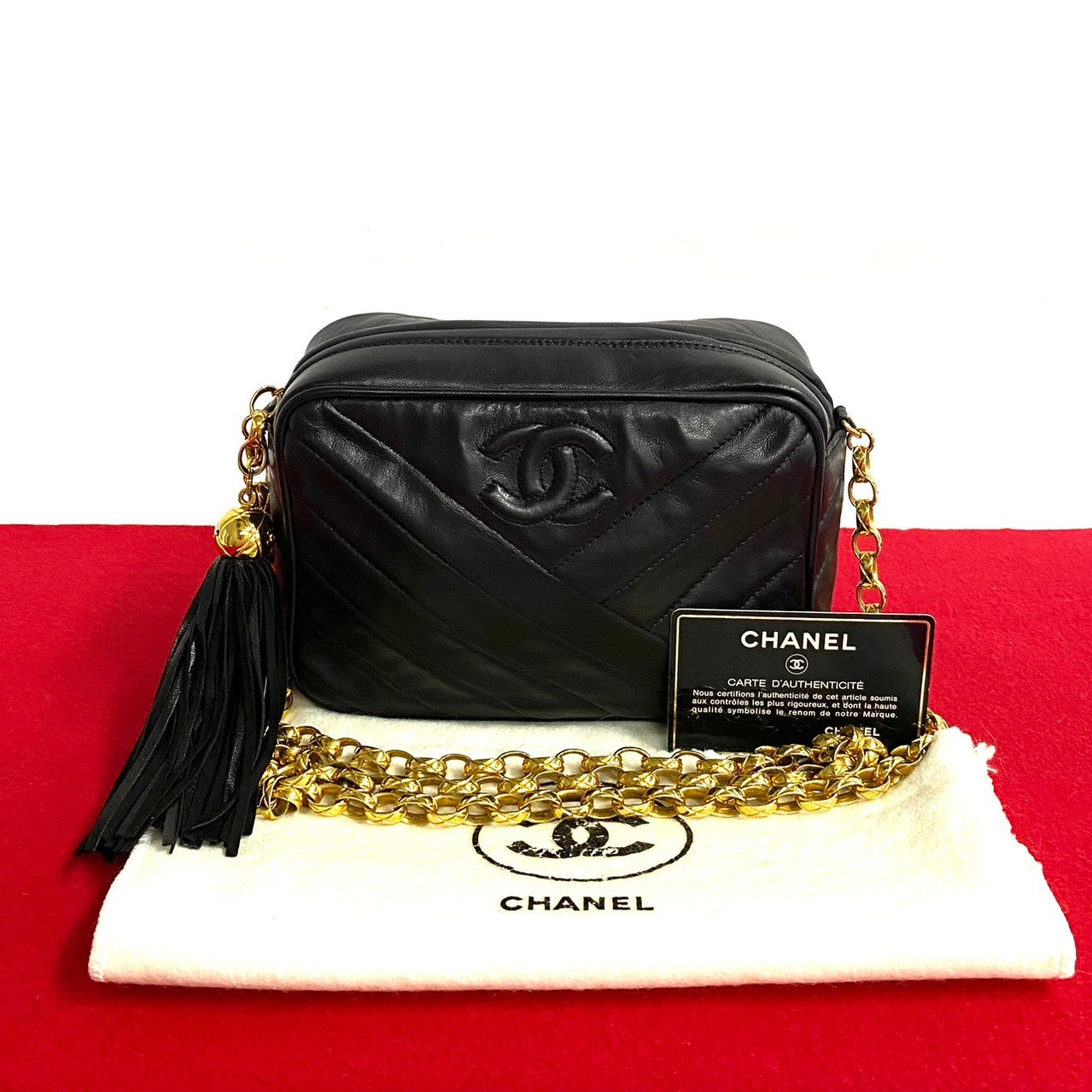 Chanel V Stitch Lambskin Fringe Chain Mini Shoulder Bag Leather Shoulder Bag 38508 in Good condition