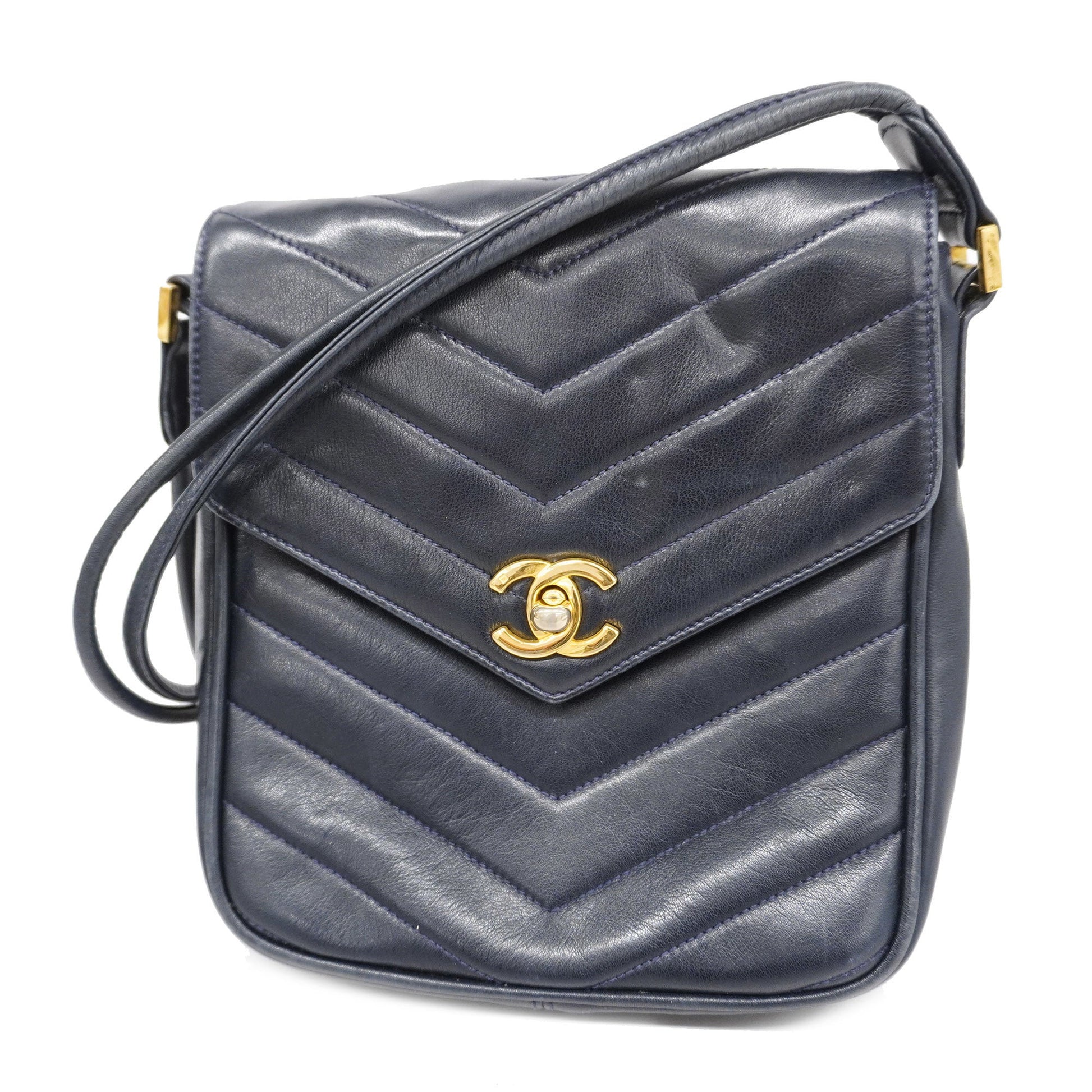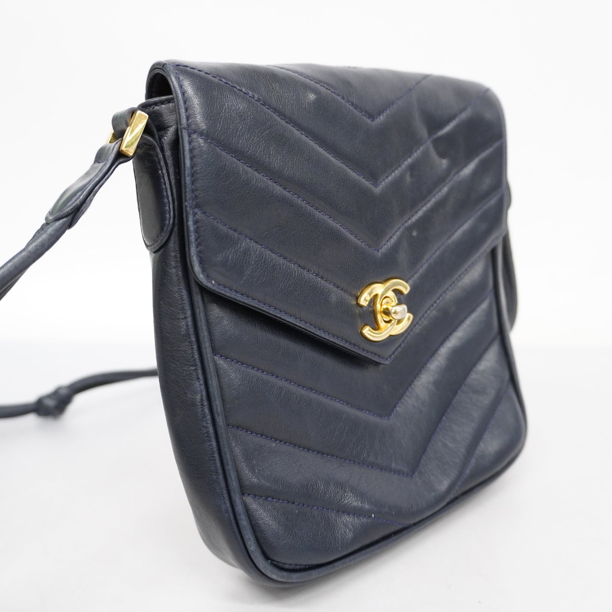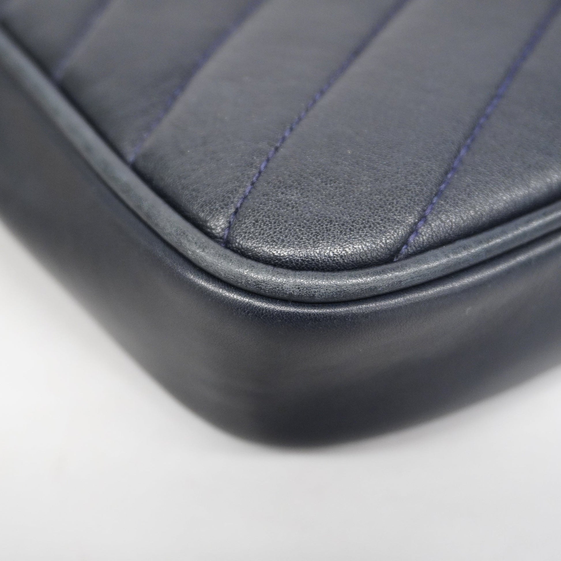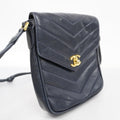 CHANEL V Stitch Leather Shoulder Bag Navy
