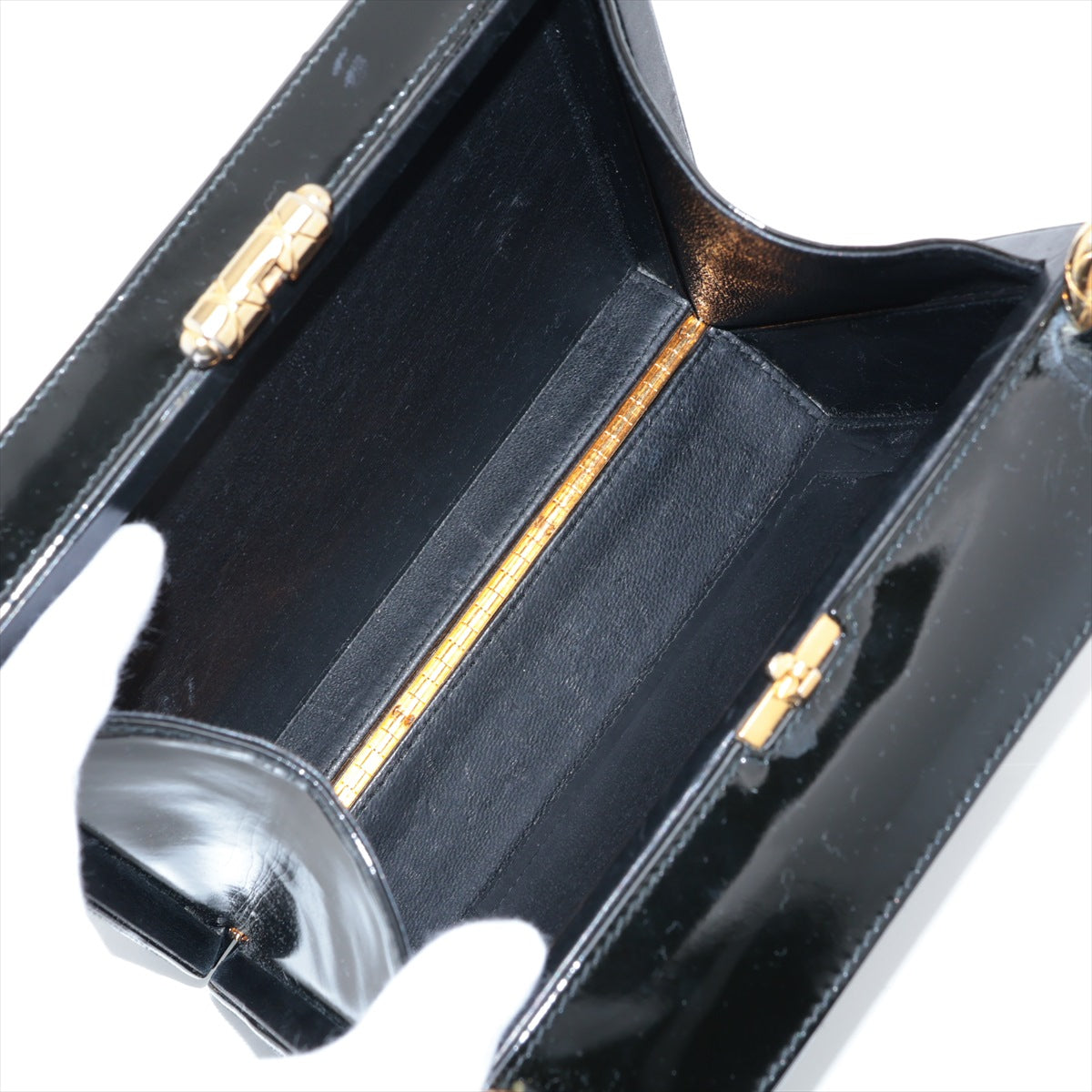 Chanel V Stitch Patent Leather Shoulder Bag Coco Black G Gold Holding Gold Tools and Other Speech