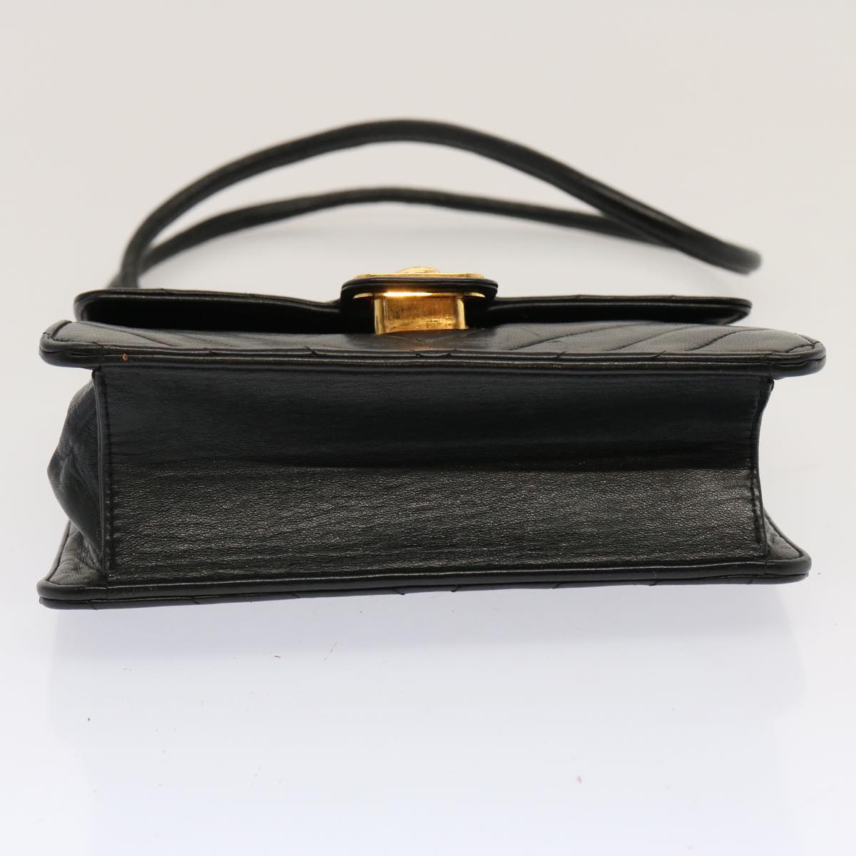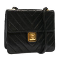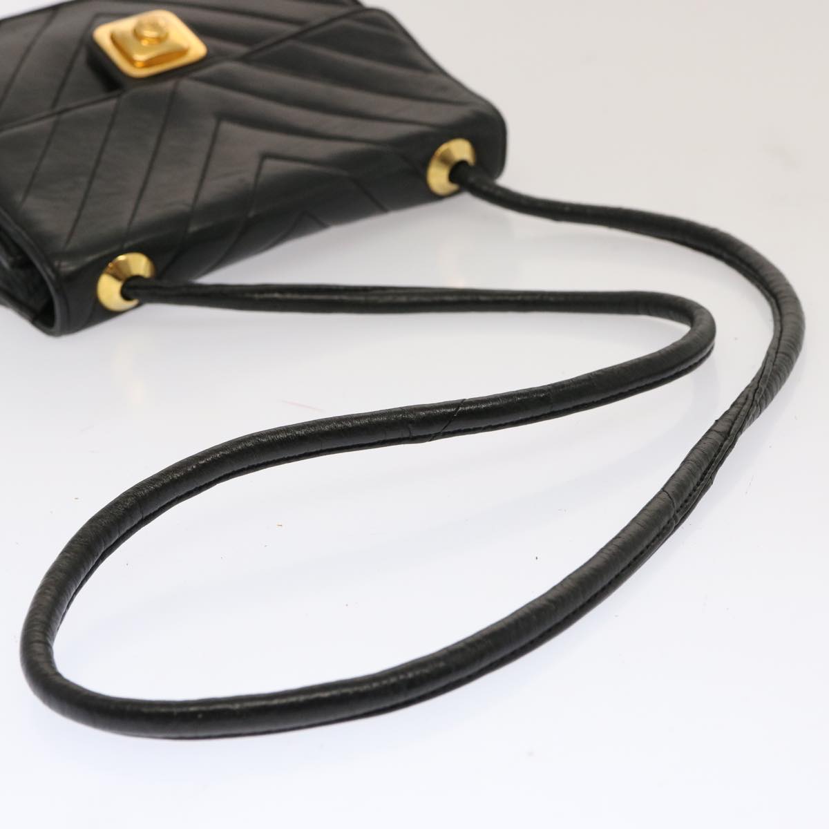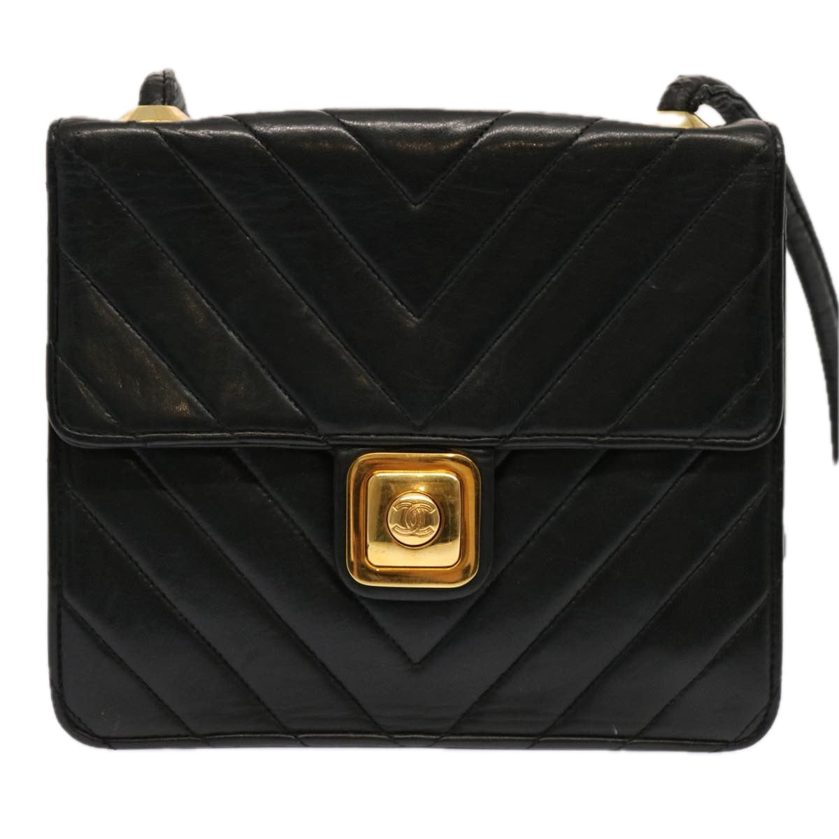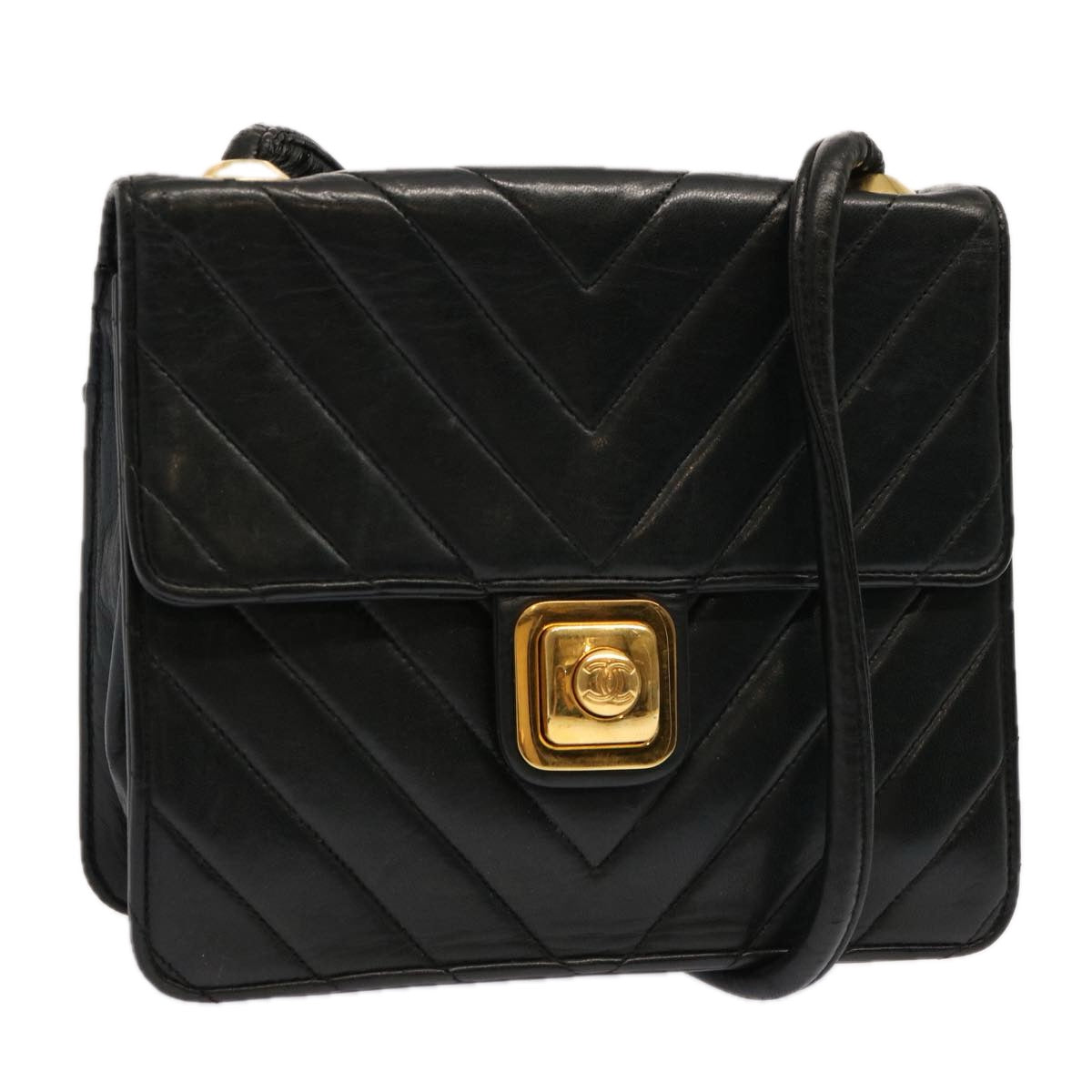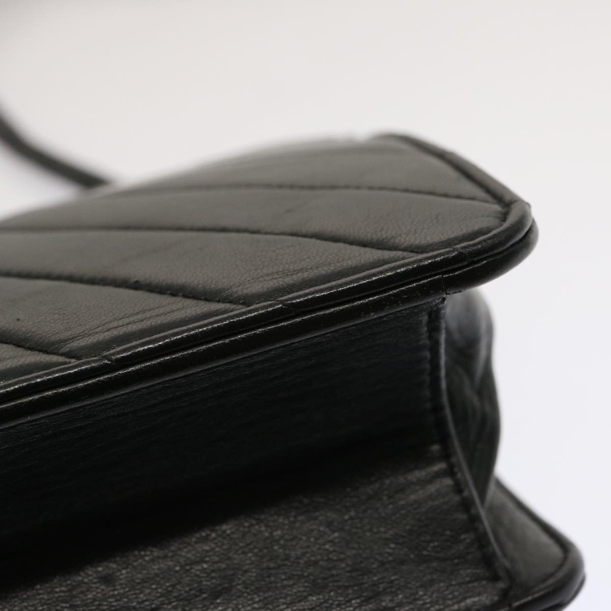 CHANEL V Stitch Shoulder Bag Lamb Skin Black CC Auth yk11681