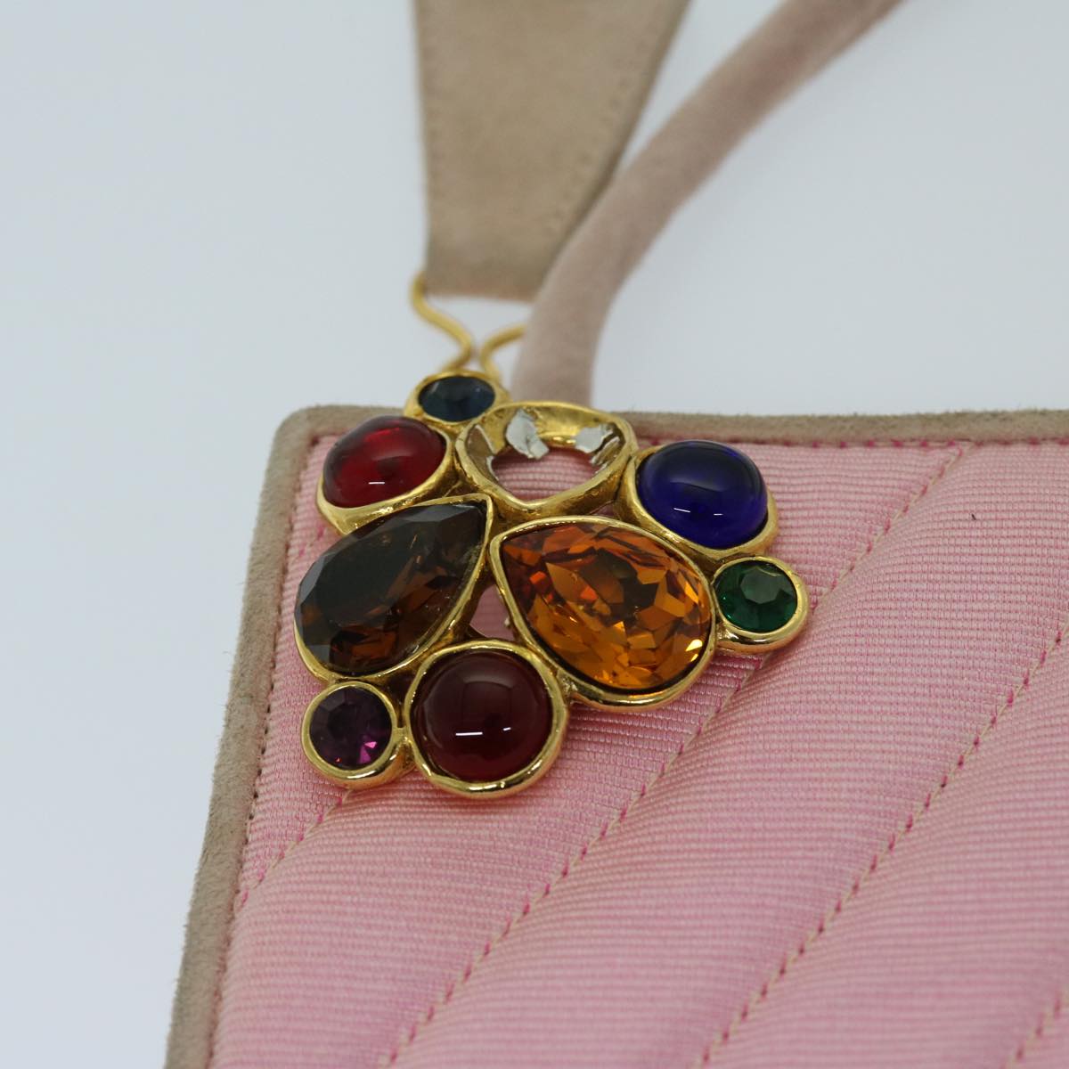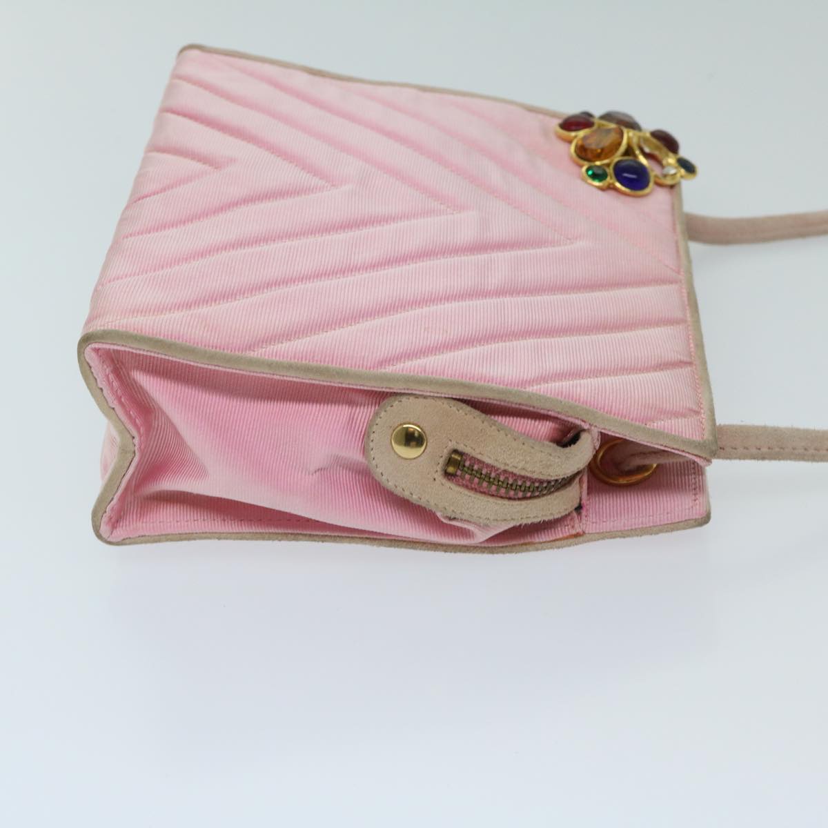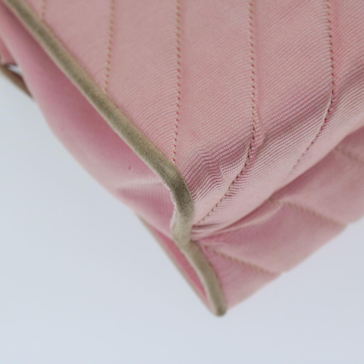 CHANEL V Stitch Stone Shoulder Bag Canvas Pink CC Auth bs12895