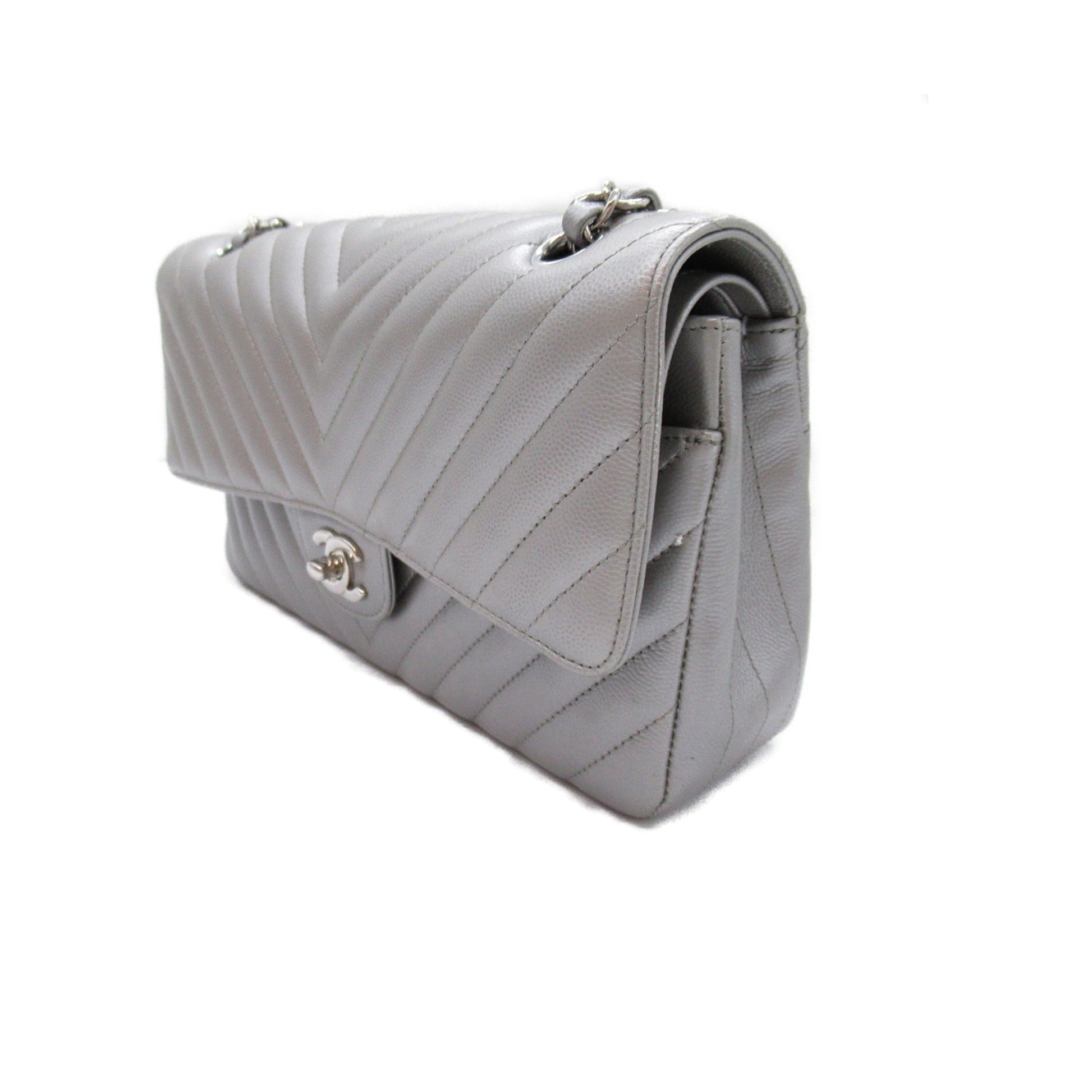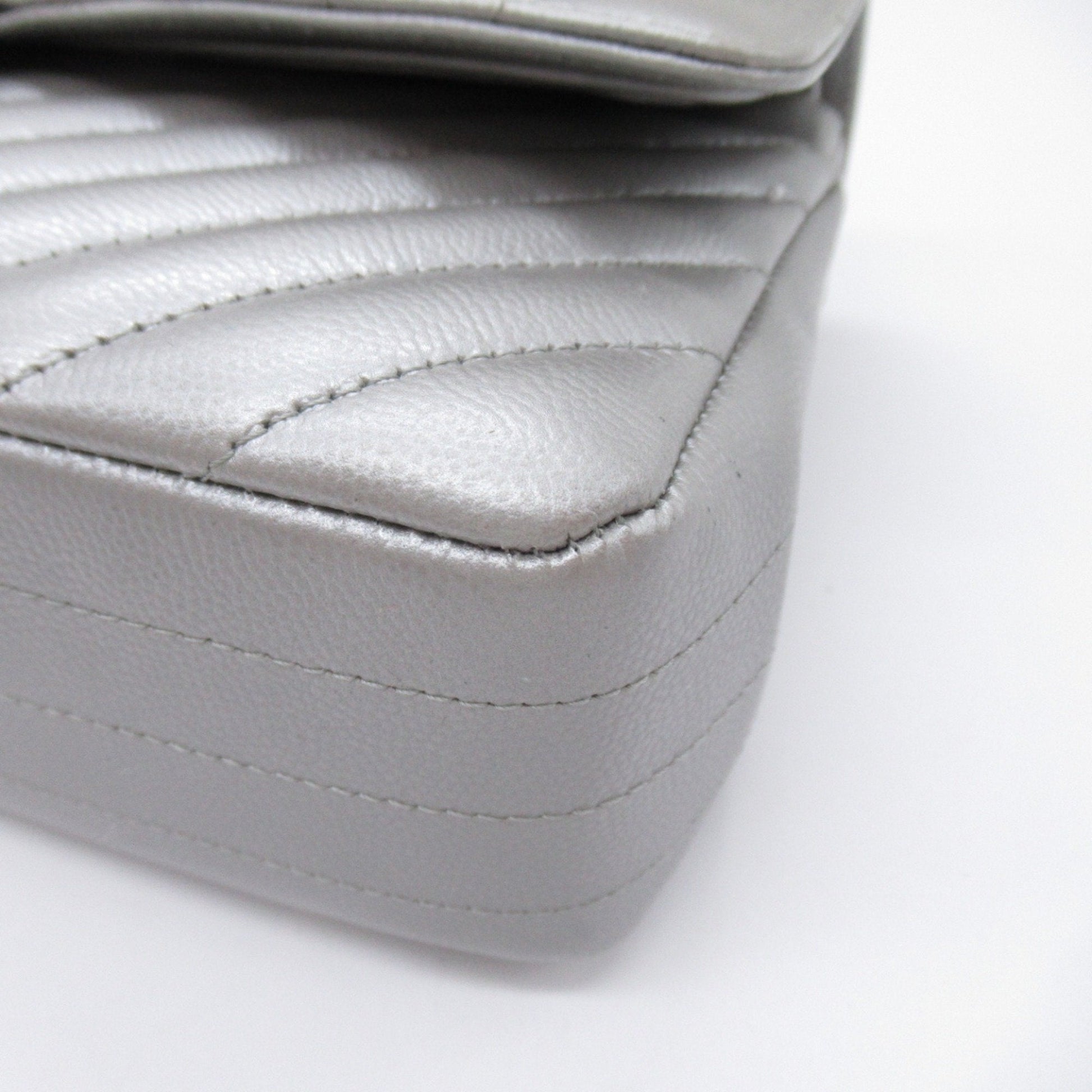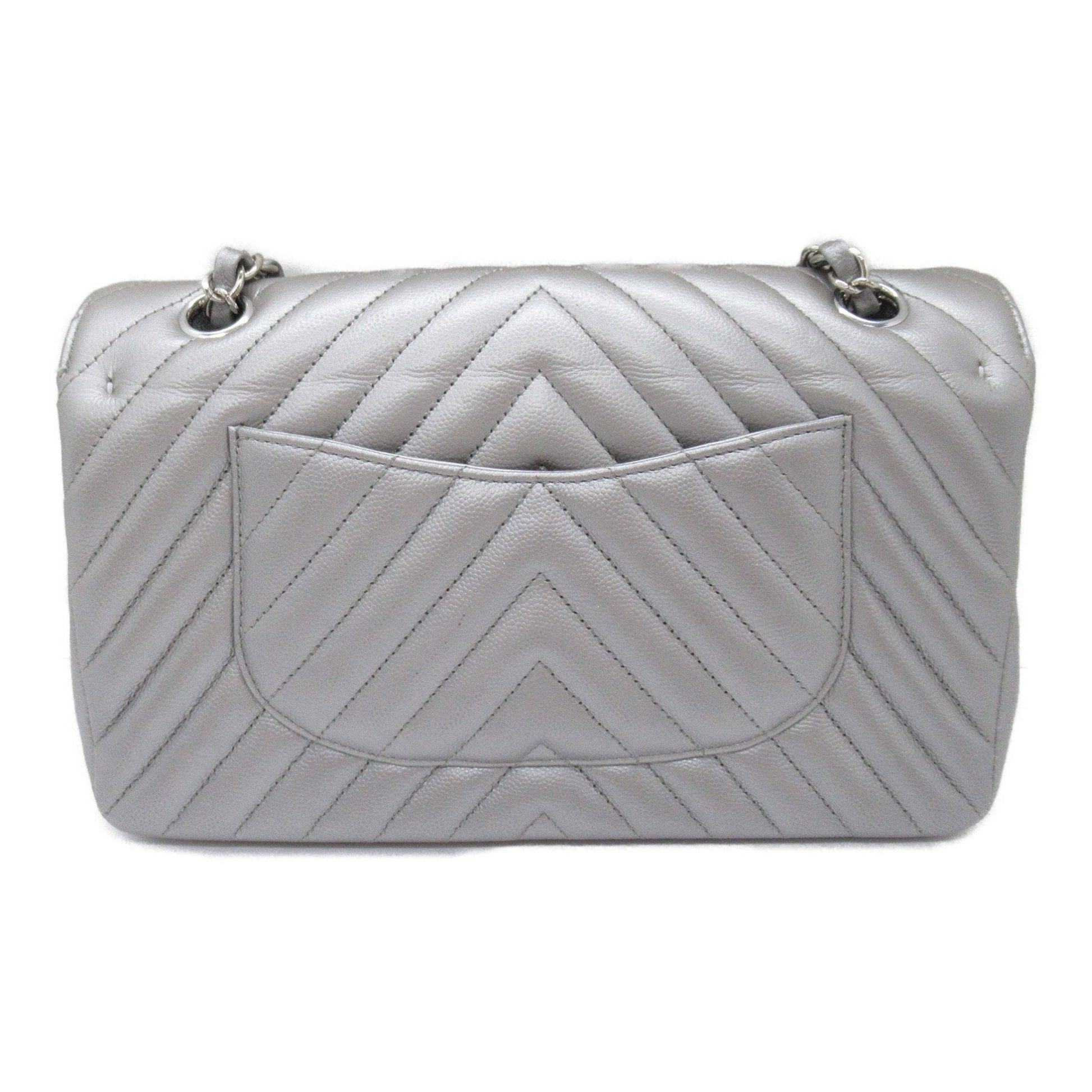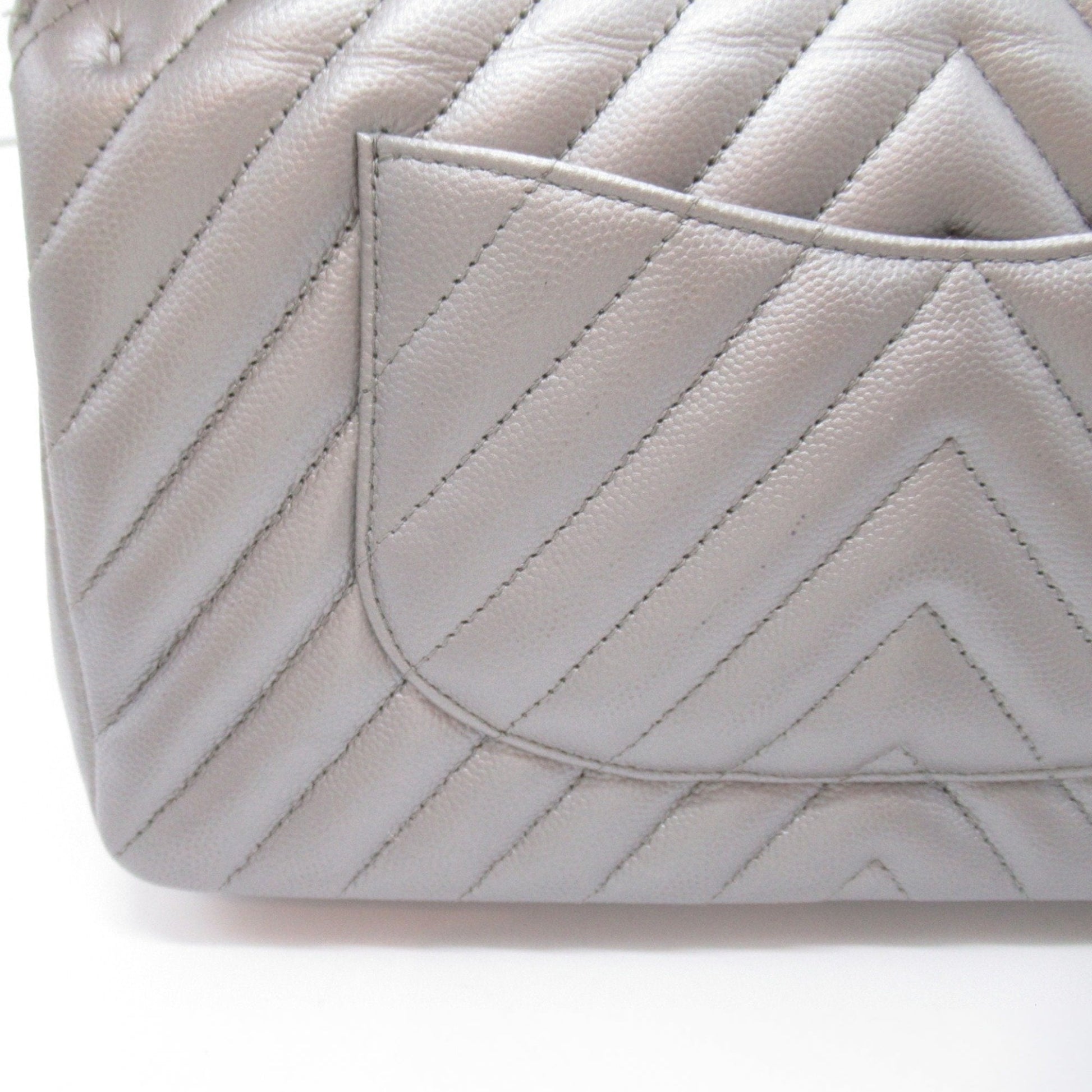 CHANEL V-stitched ChainShoulder Silver Caviar Skin (Grained Calf)