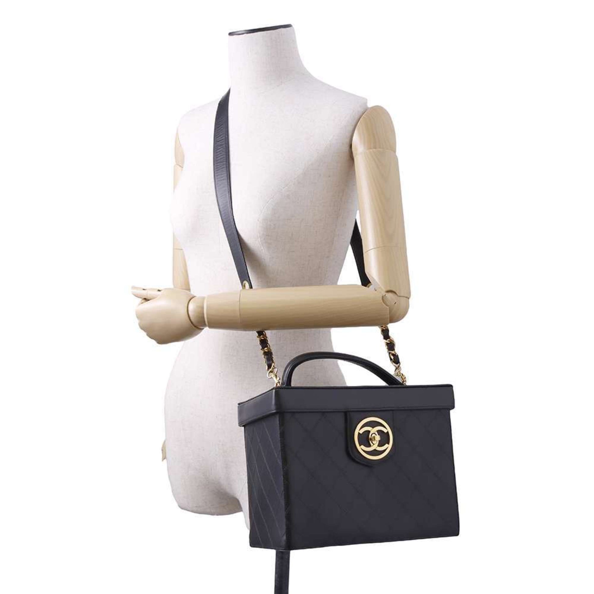 Chanel Vanity Bag Matelasse Coco Mark Bicolor Lambskin CHANEL 2way Shoulder Hand Black