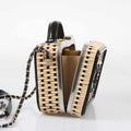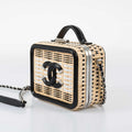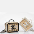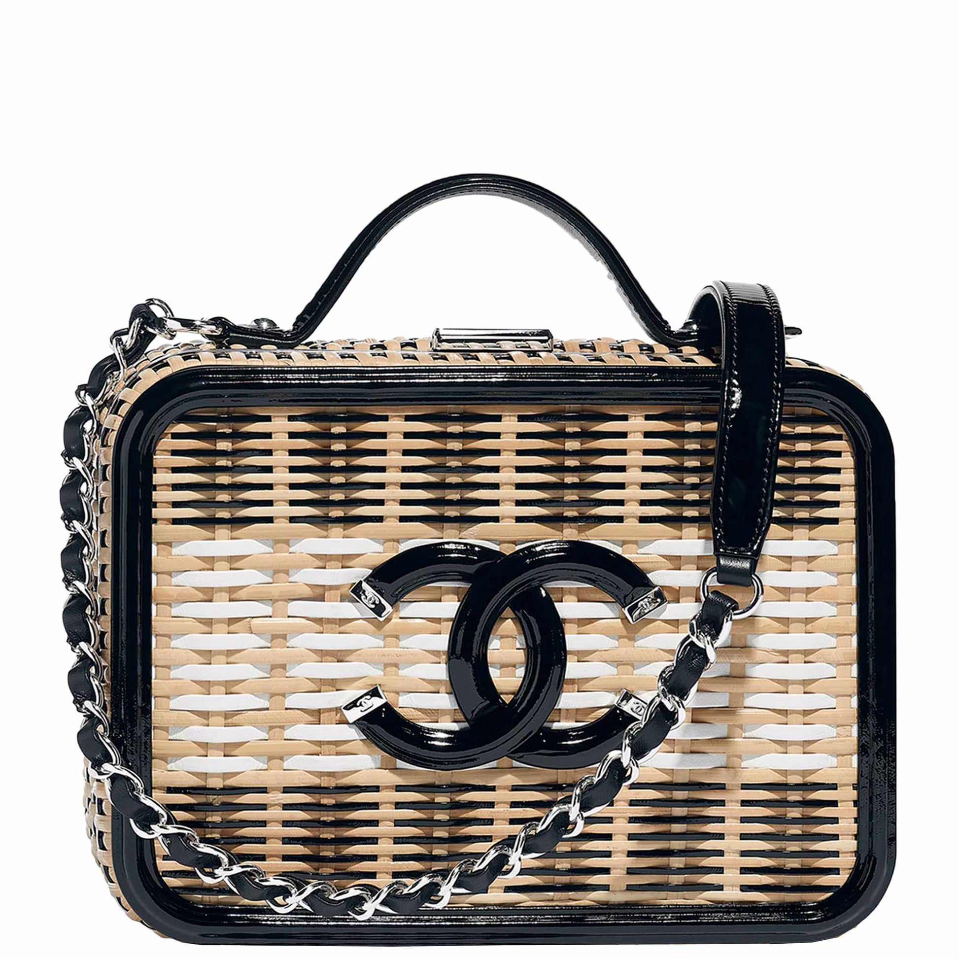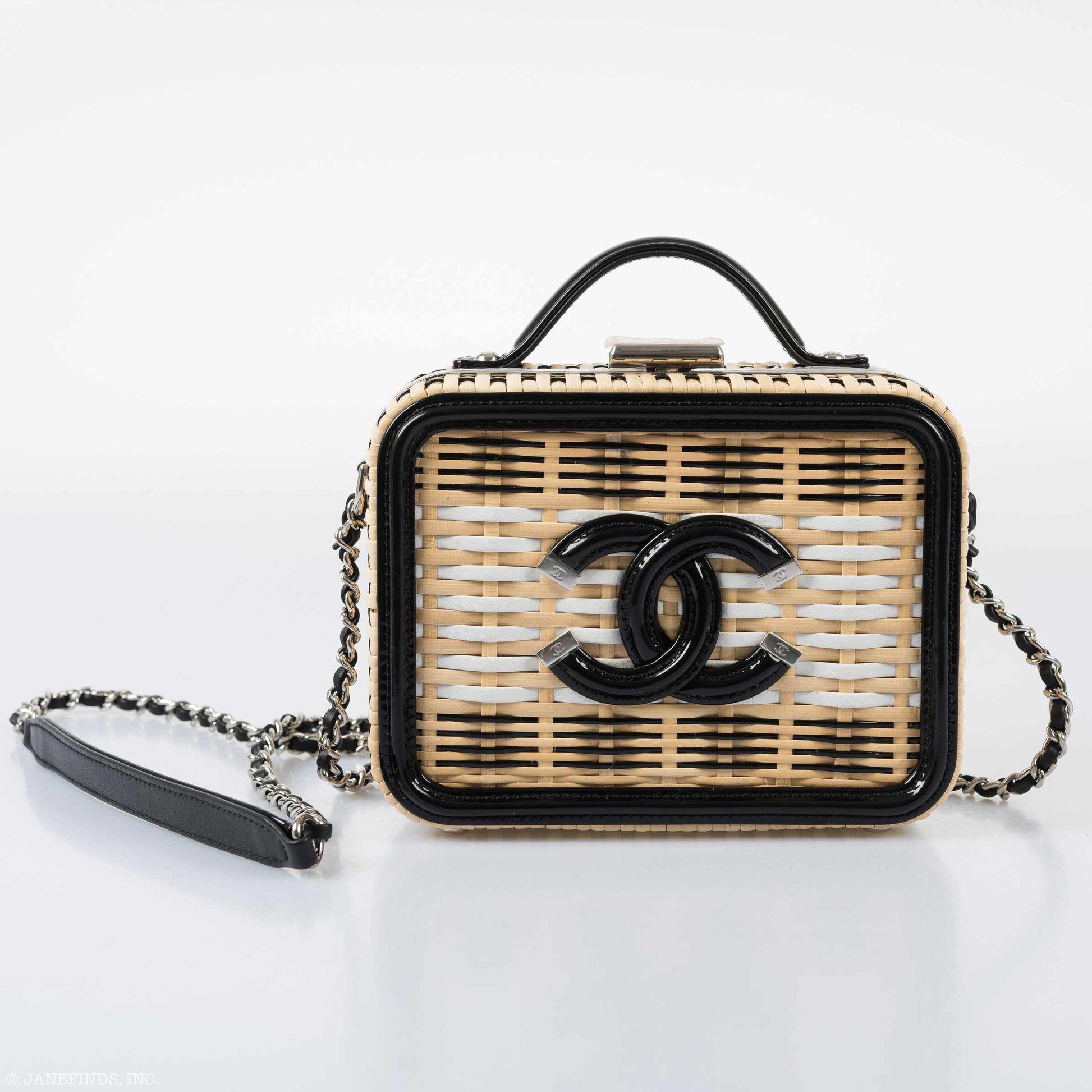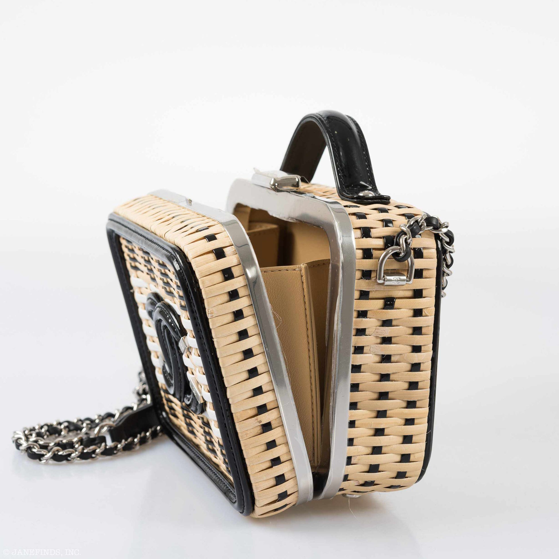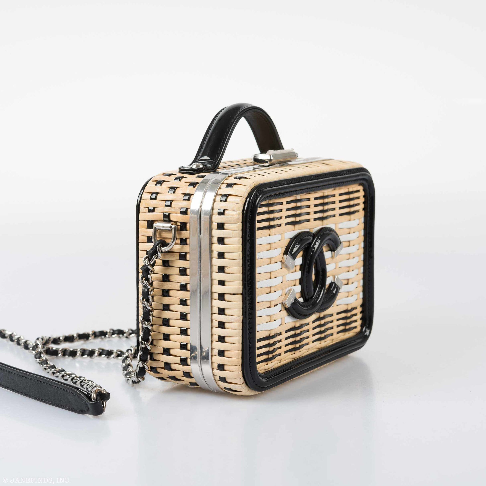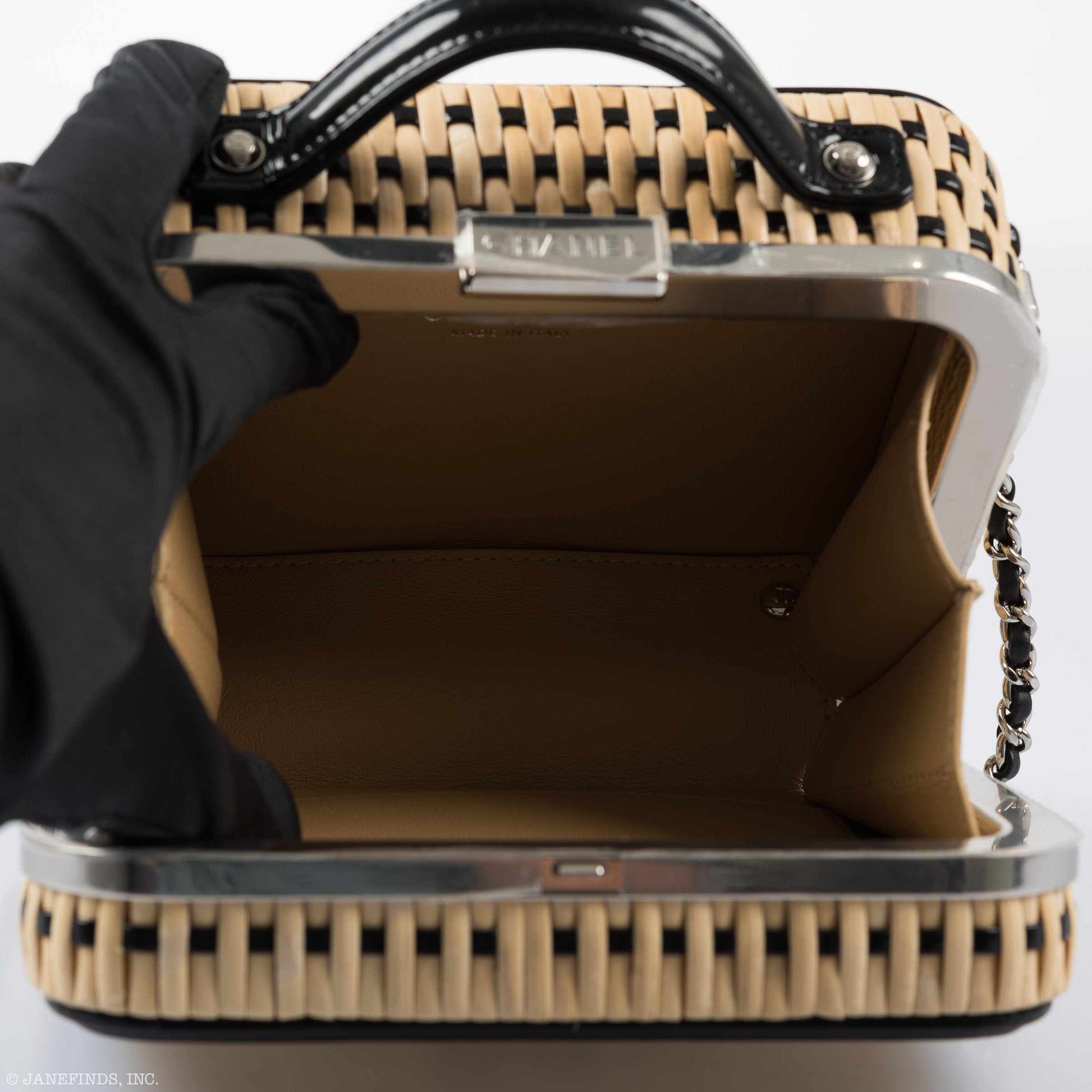 Chanel Vanity Case Black, Beige & White Rattan, Patent Calfskin & Silver-Tone Metal