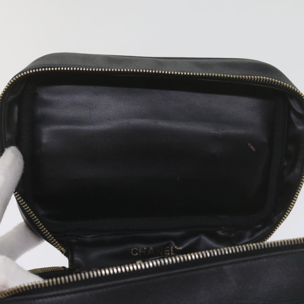 CHANEL Vanity Cosmetic Pouch Leather Black CC Auth 59984