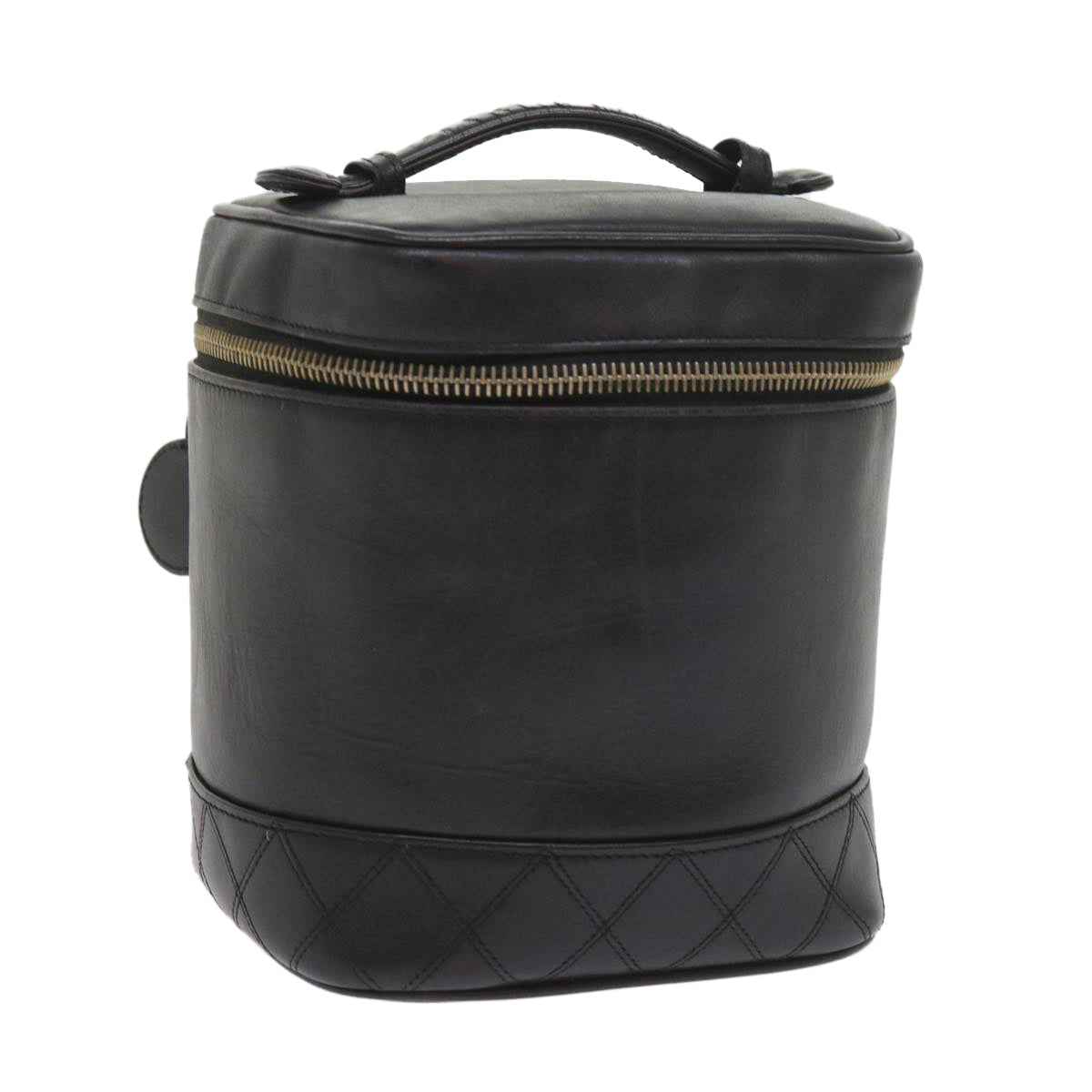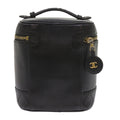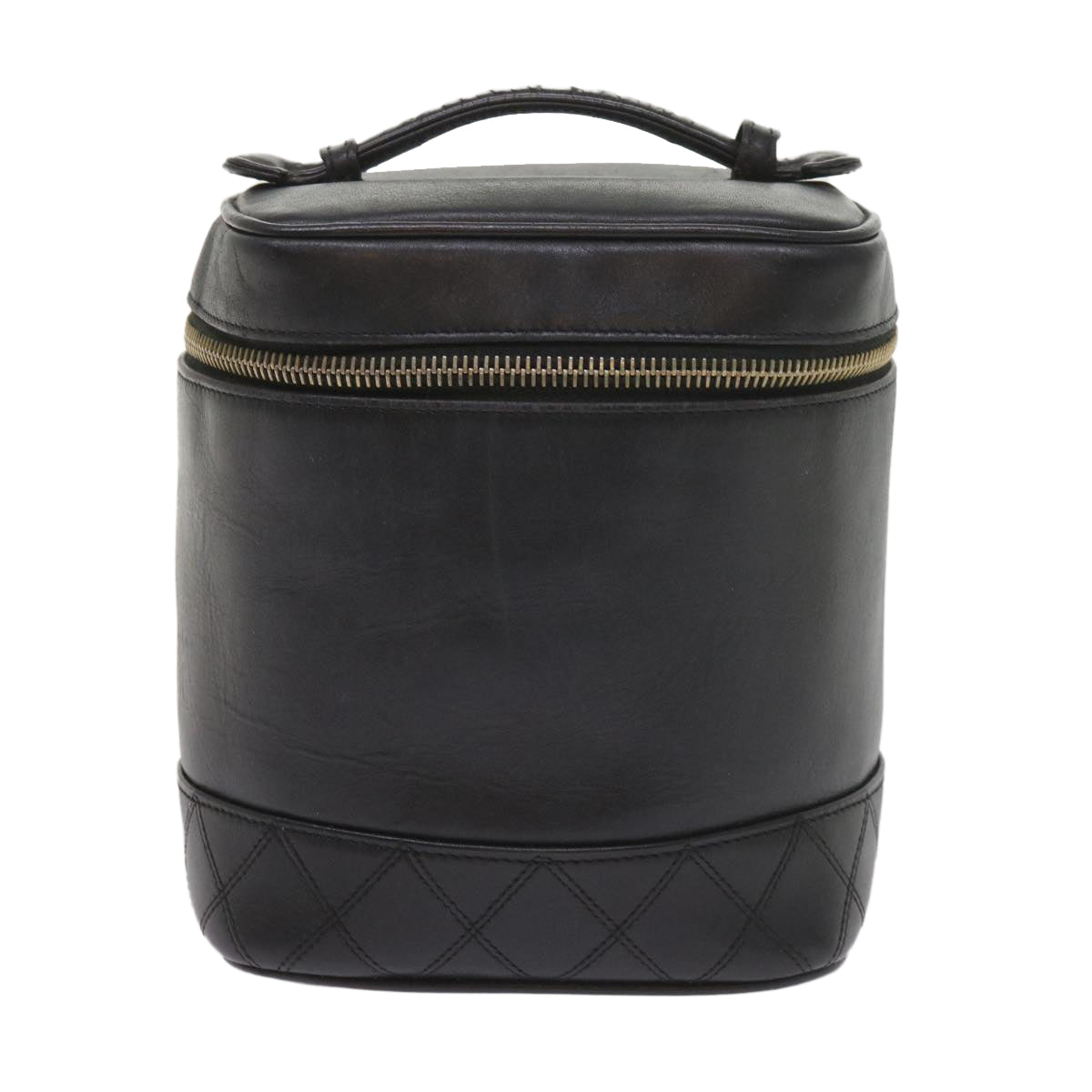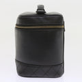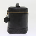 CHANEL Vanity Cosmetic Pouch Leather Black CC Auth bs10095