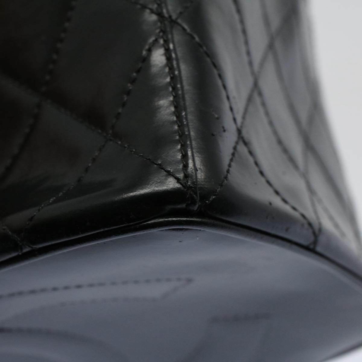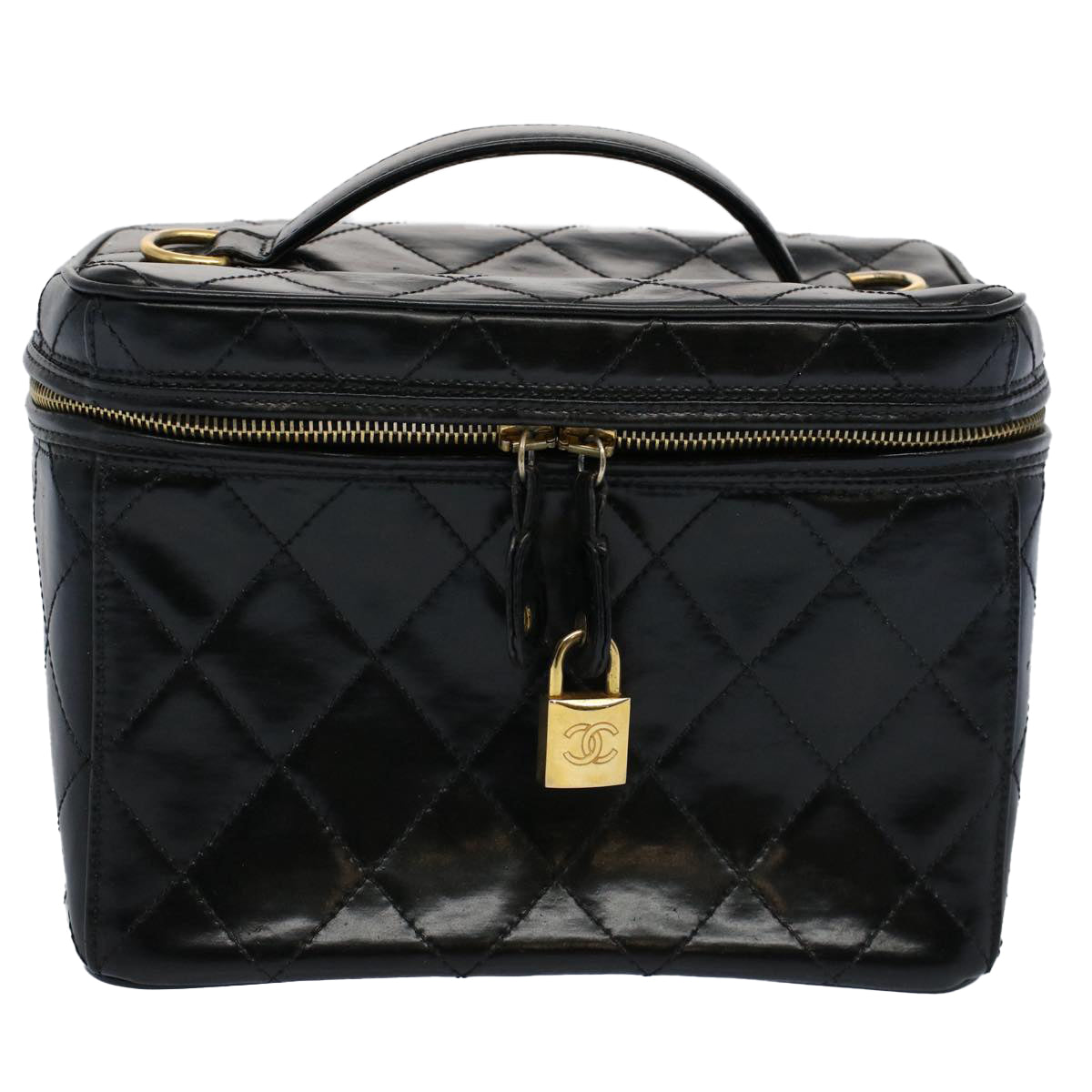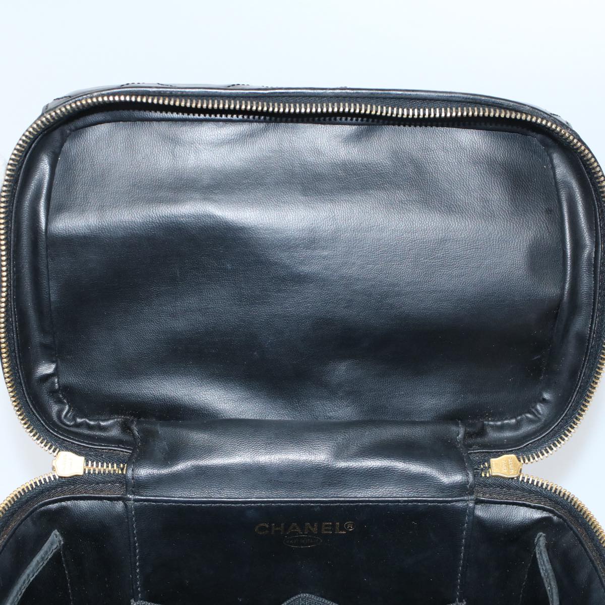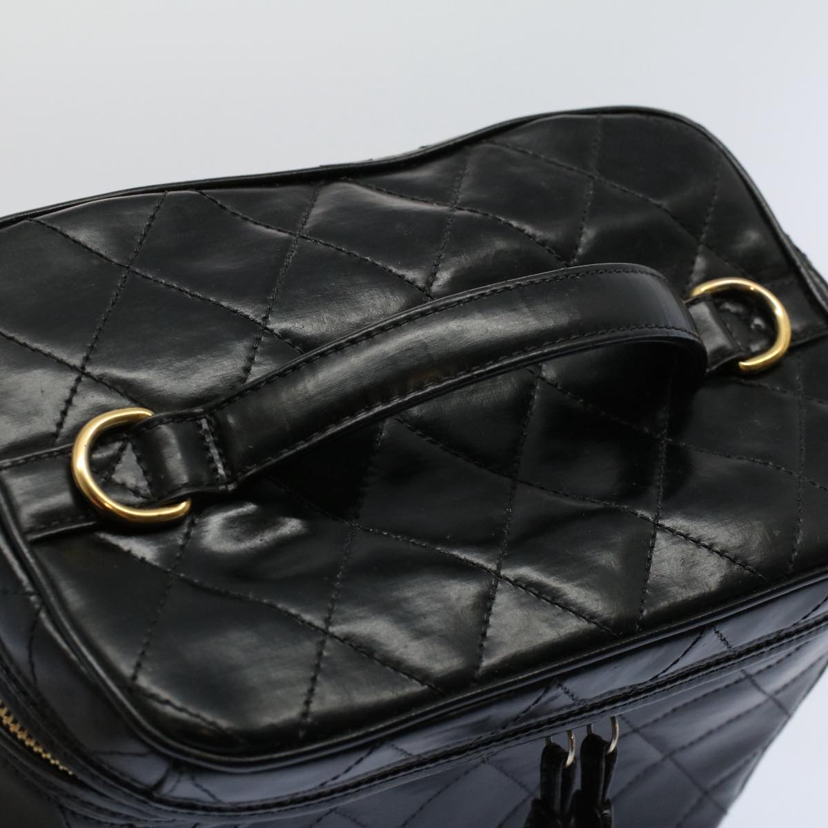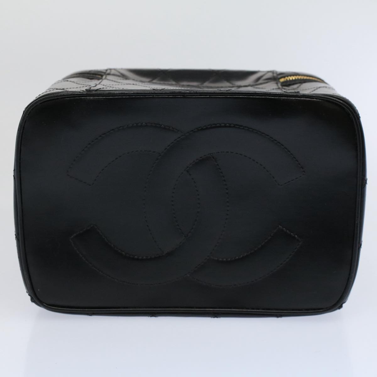 CHANEL Vanity Cosmetic Pouch Patent leather Black CC Auth bs10201