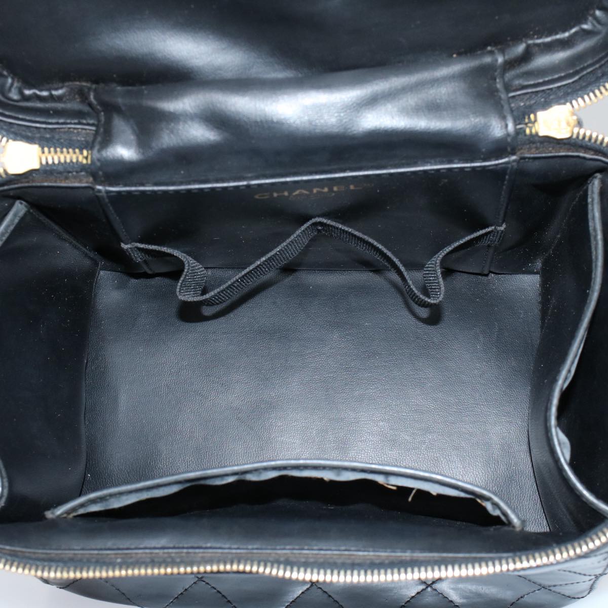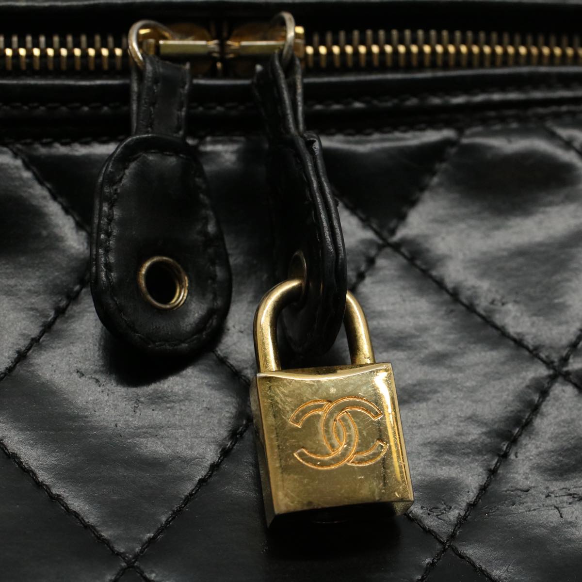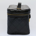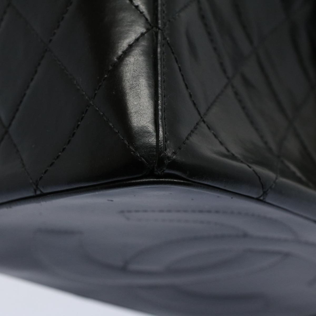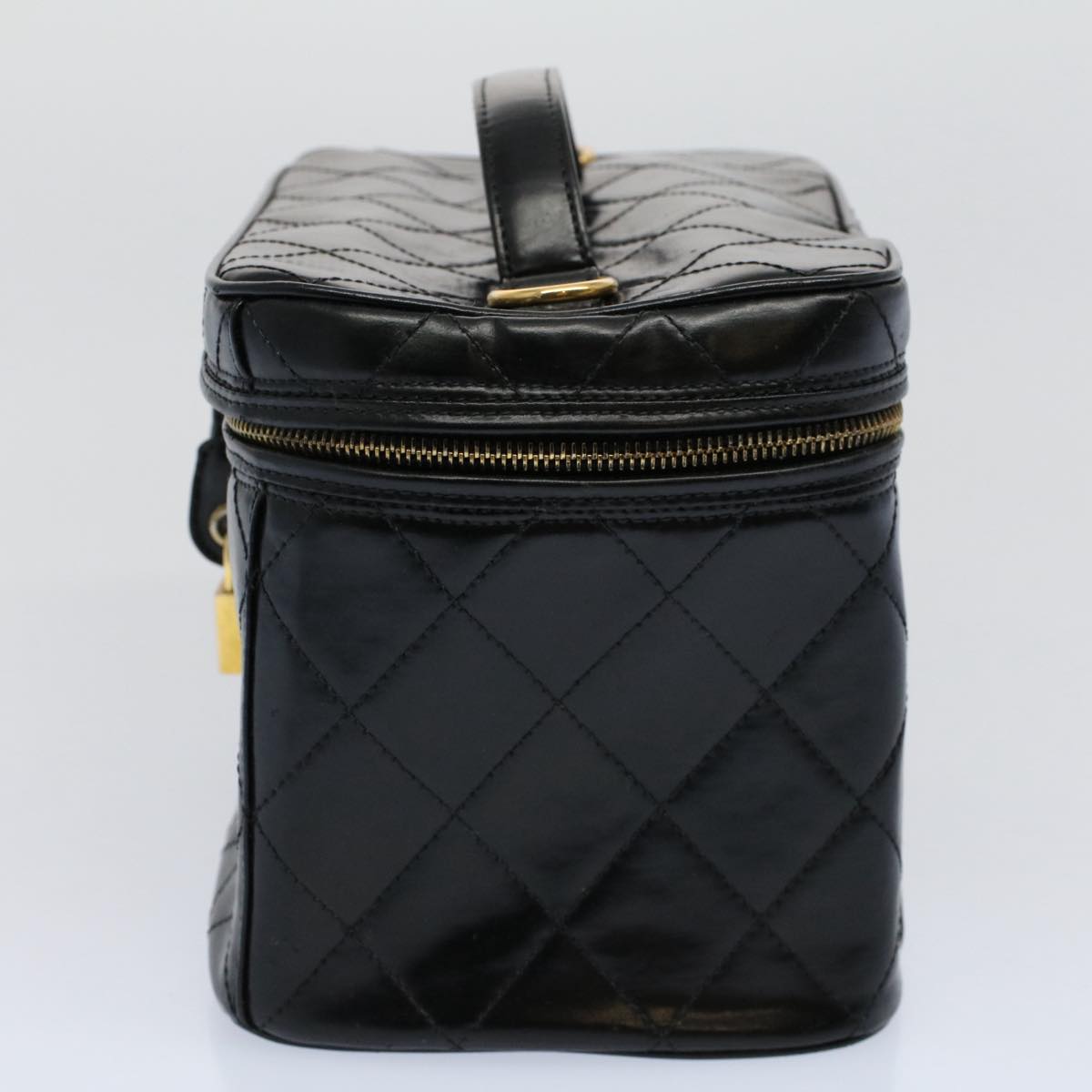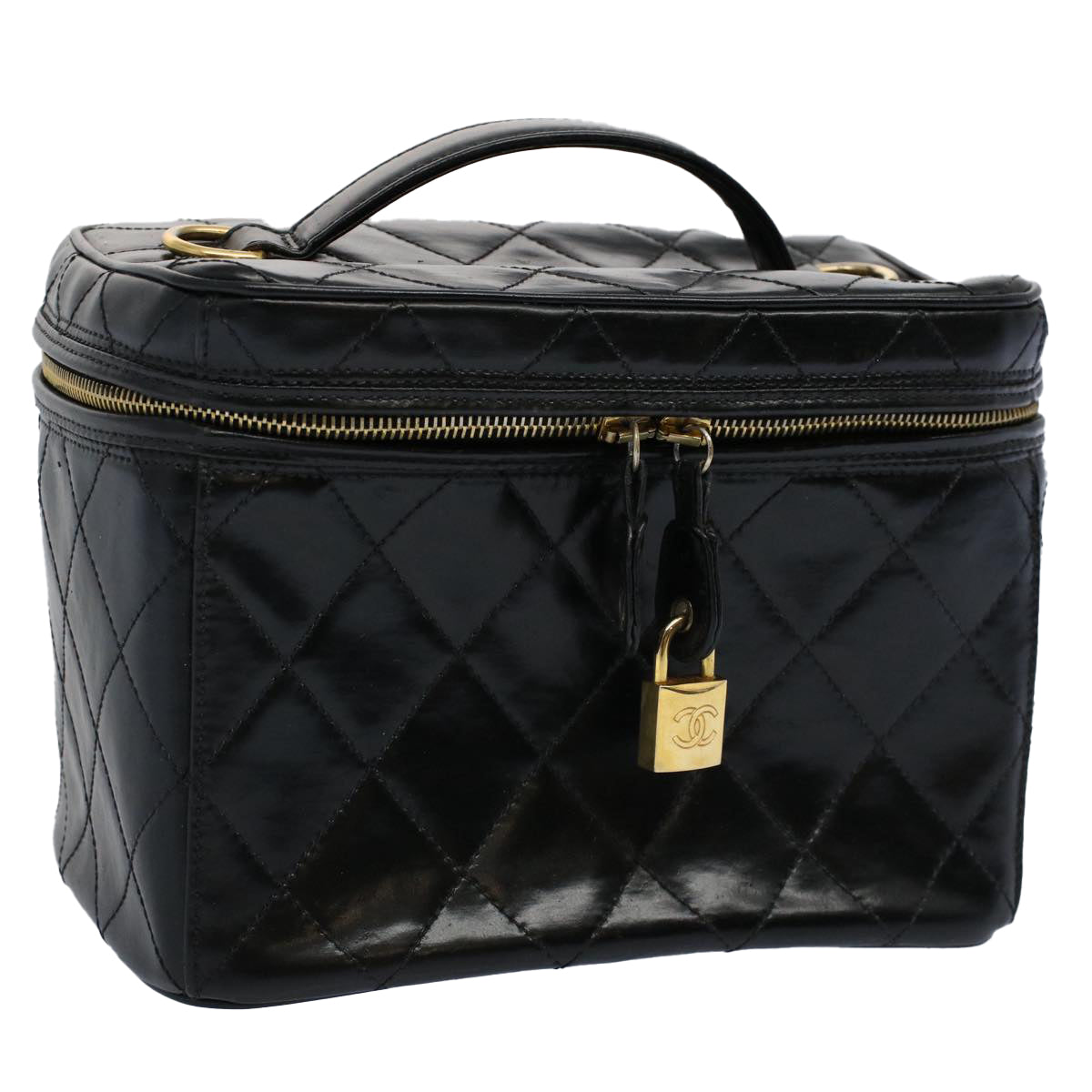 CHANEL Vanity Cosmetic Pouch Patent leather Black CC Auth bs10201