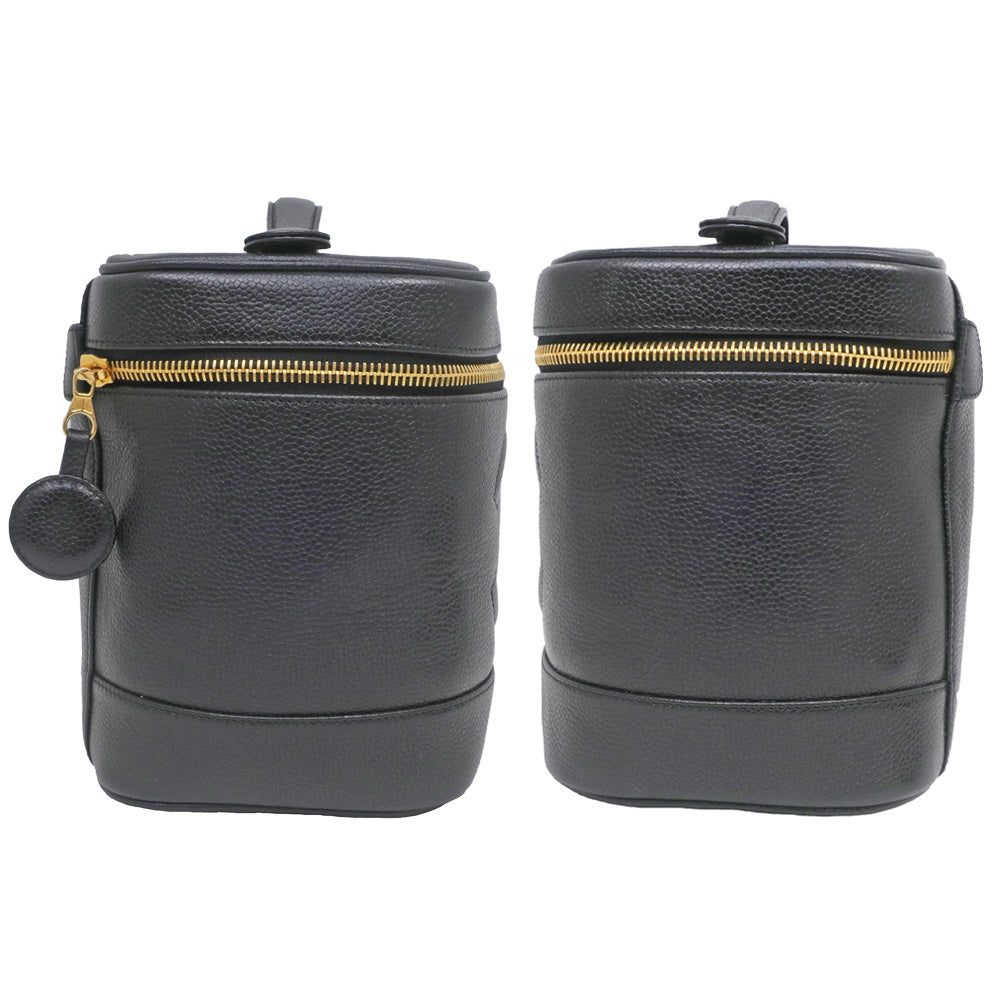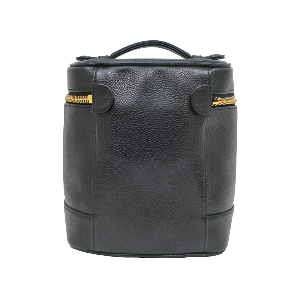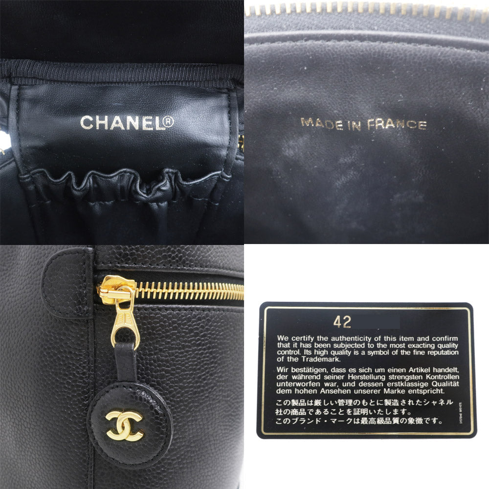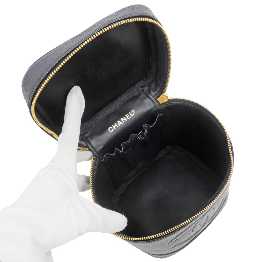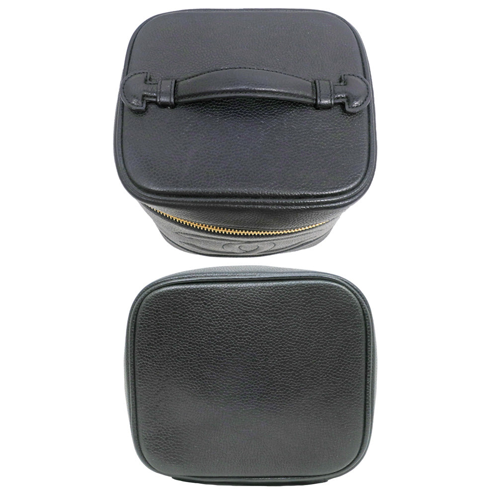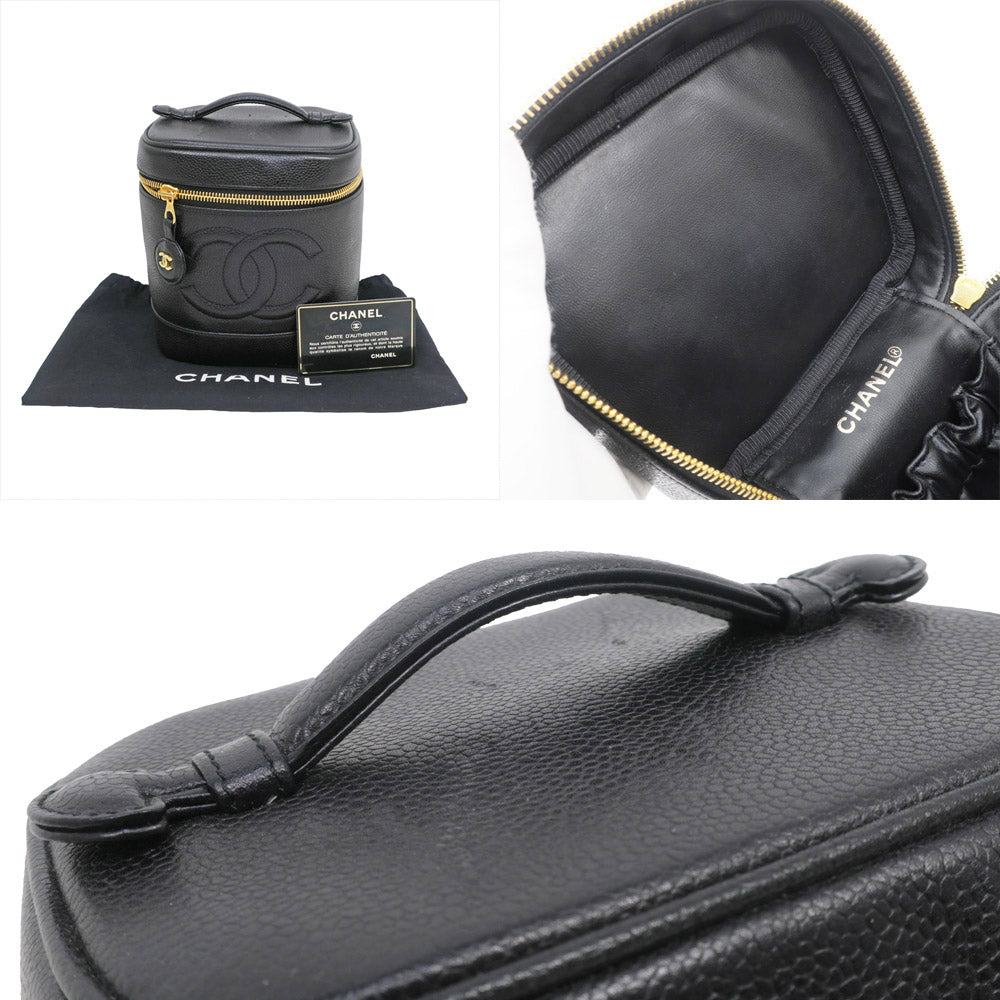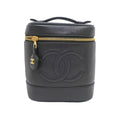 Chanel Vanity Handbag Black Green S G Gold A01998 Women's Pouch