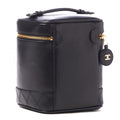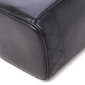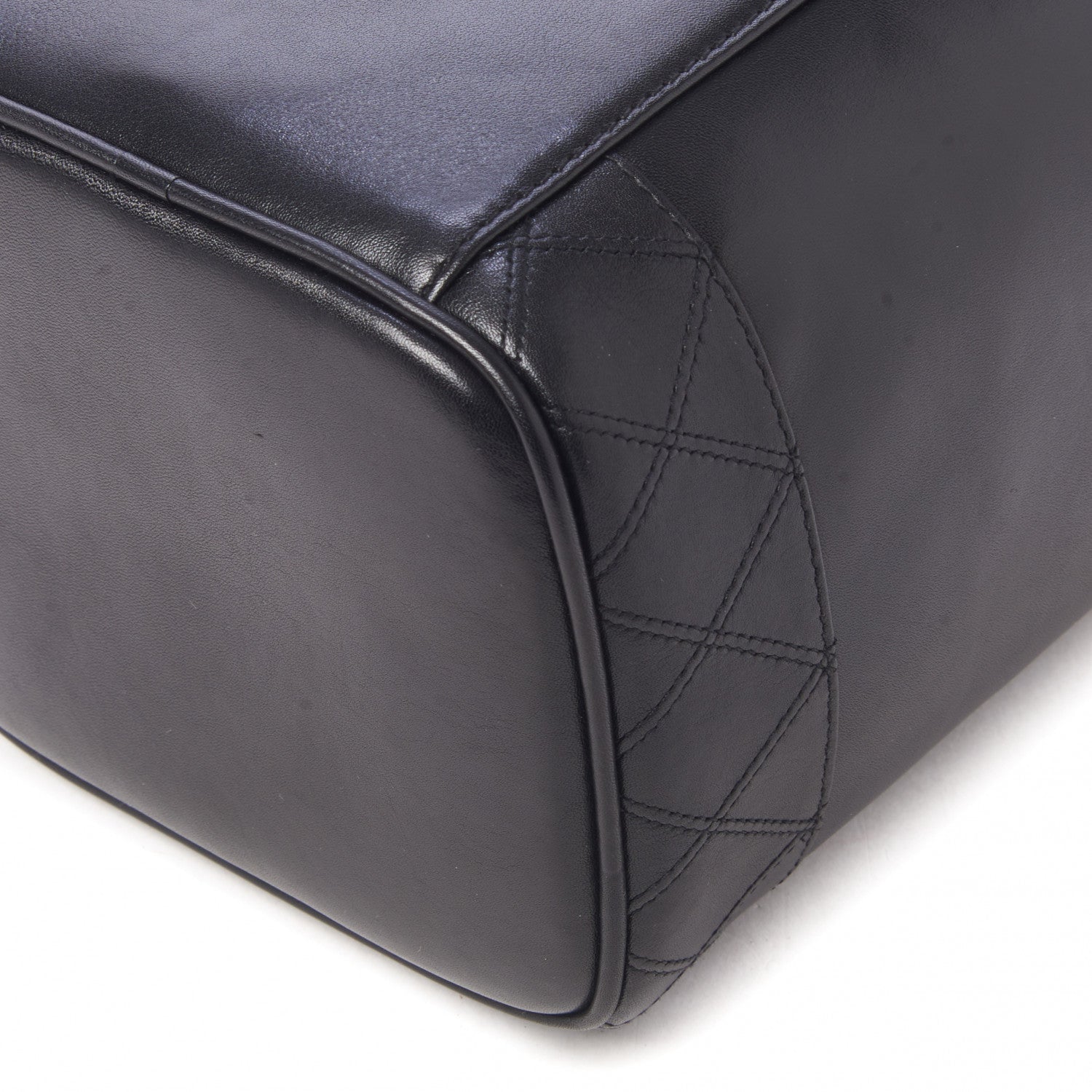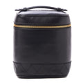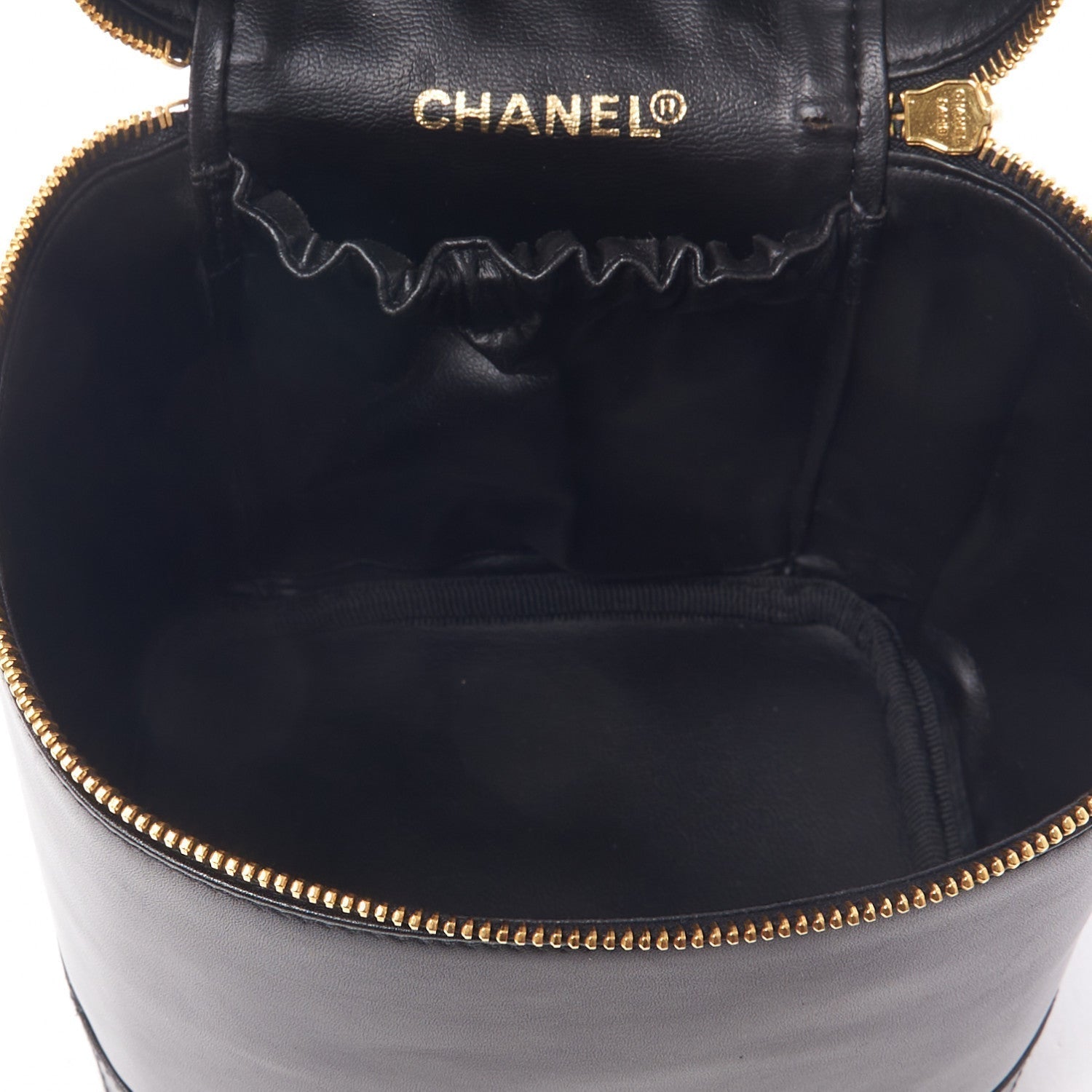 This vanity tote is crafted of quilted calfskin leather in Black. It features a quilted Chanel CC logo and a three sided zipper with a leather pull with a gold Chanel CC. The top opens to a black leather interior with a patch pocket.