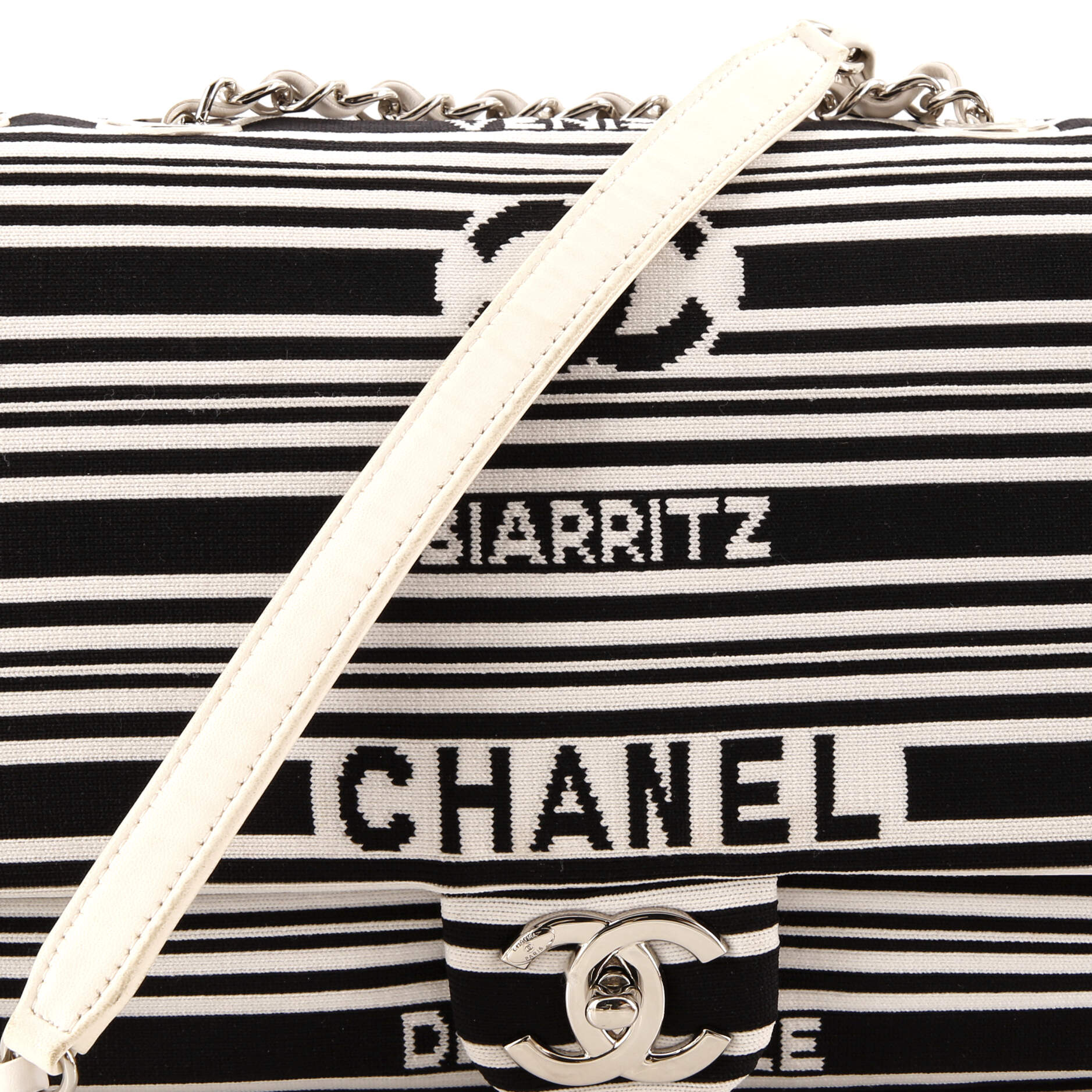Elevate your style with the Chanel Venise Biarritz Flap Bag in Medium size. Crafted from luxurious striped canvas, this bag is a timeless piece that exudes sophistication and elegance. The iconic Chanel logo adds a touch of glamour, making it a must-have accessory for any fashion enthusiast.