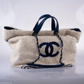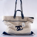 Chanel Venise Biarritz CC Tote XL White and Navy Canvas