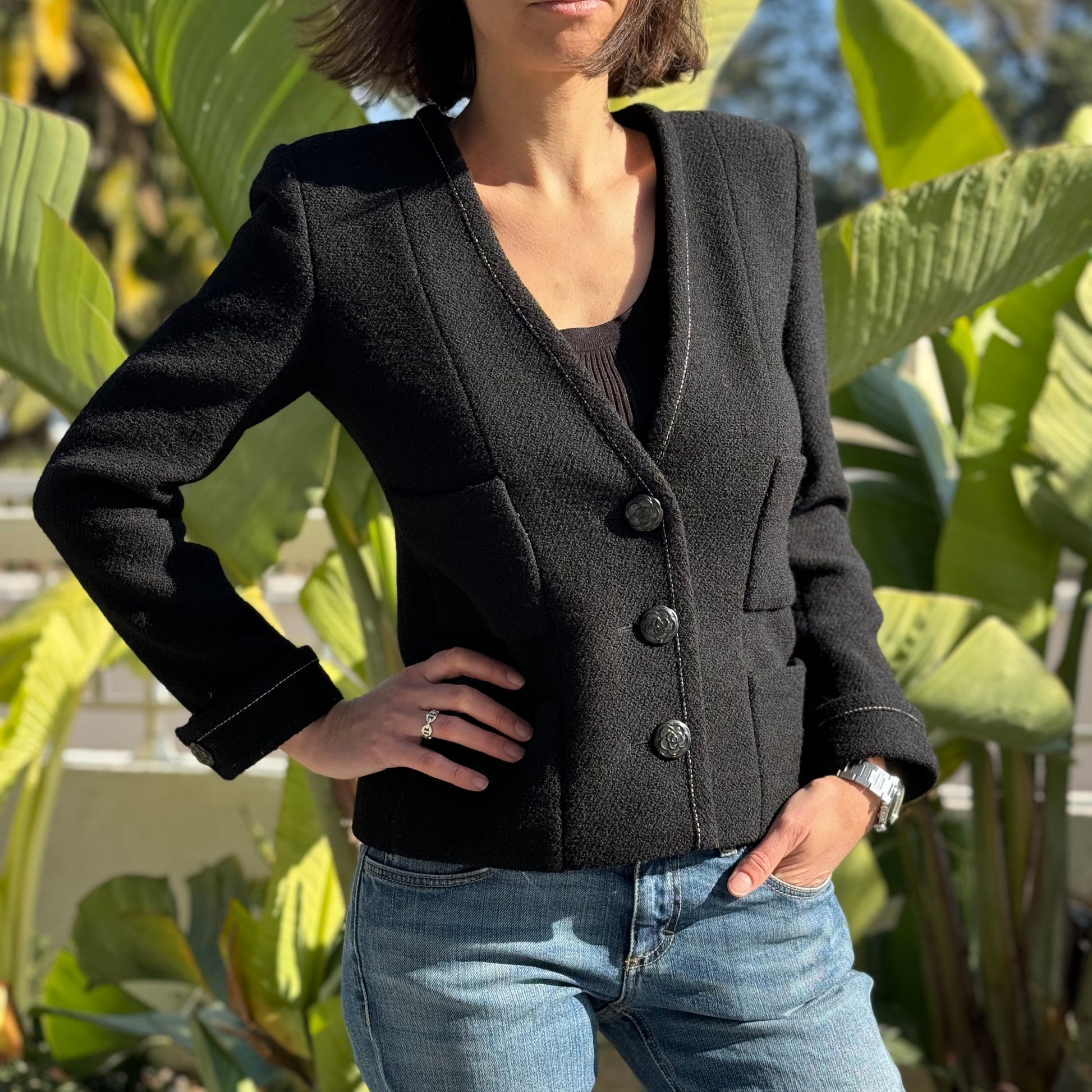 Soyez élégant et raffiné avec cette superbe veste en tweed de la maison Chanel. Parfaite pour toutes les occasions, elle ajoutera une touche de sophistication à votre tenue.