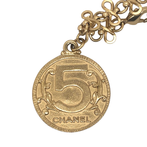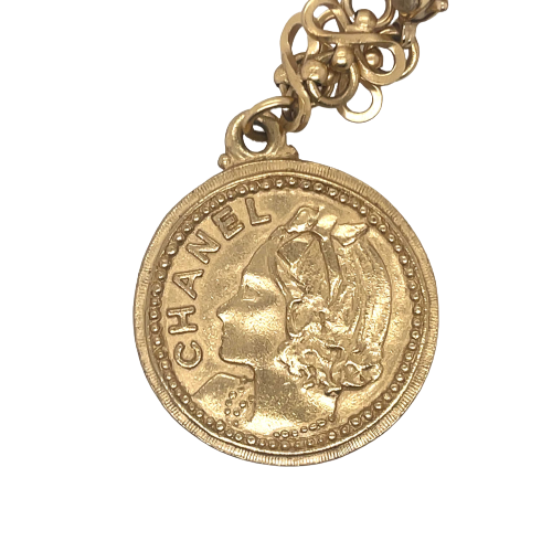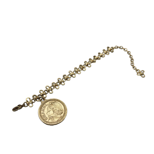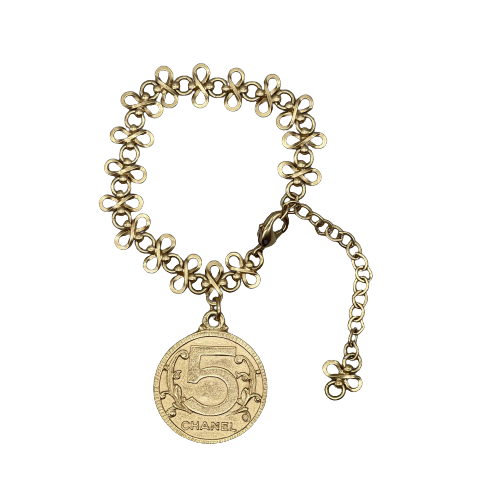 CHANEL - Vintage 03P Side Portrait '5' Medallion Chain Gold '' Bracelet