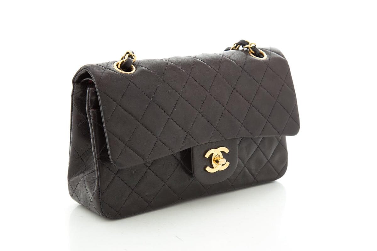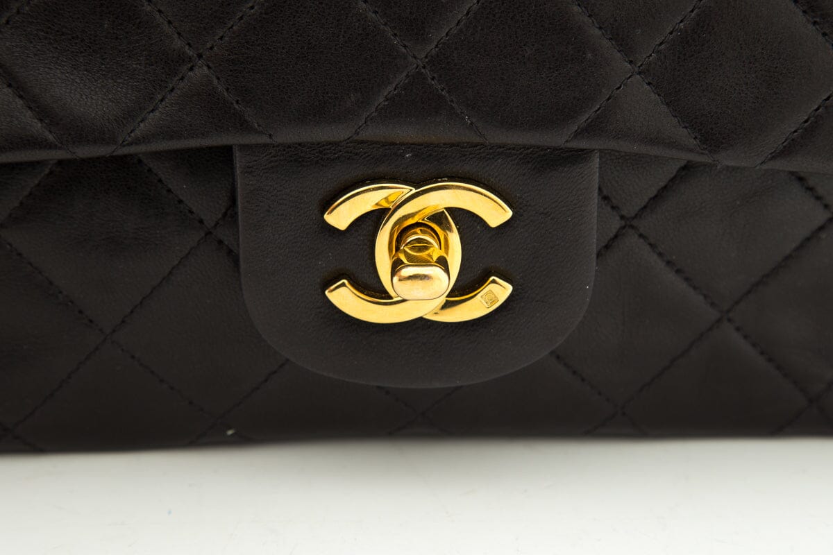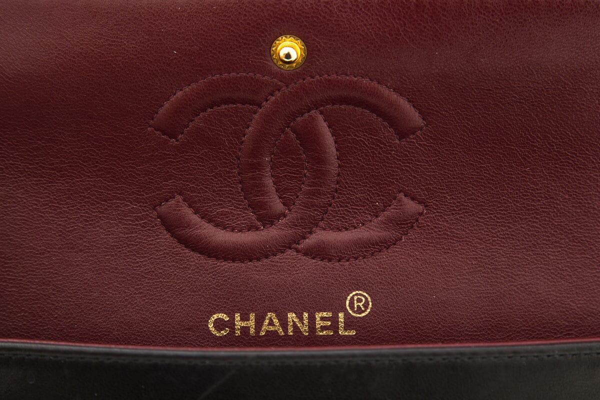 Chanel Vintage 1994-1996 Classic Double Flap Black Lambskin Handbag W/ 24kt Hardware; Includes ity Card and Box. This item is vintage and in good condition.