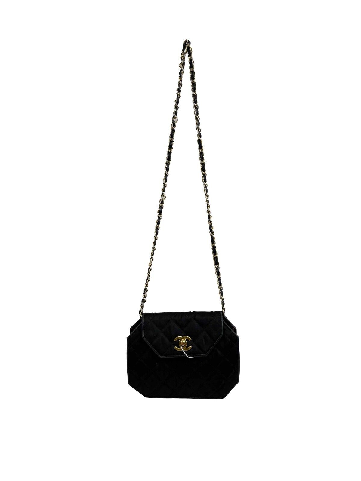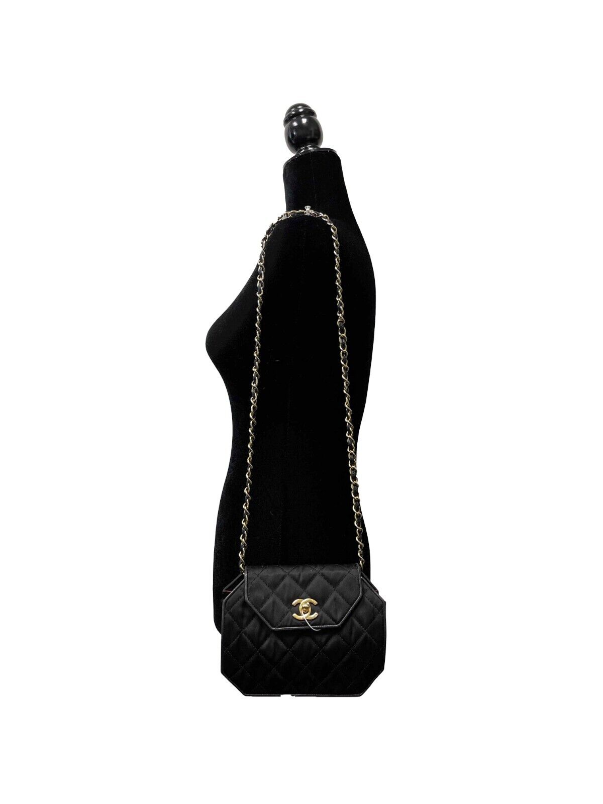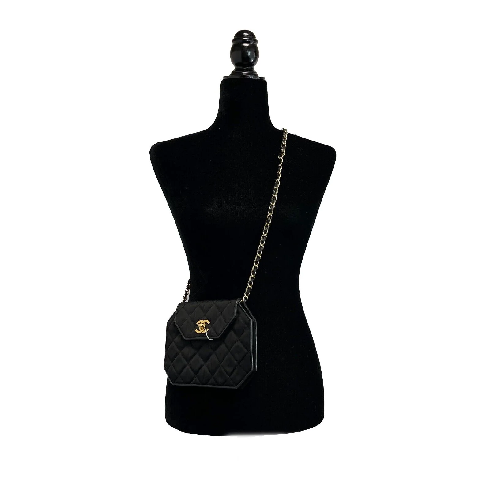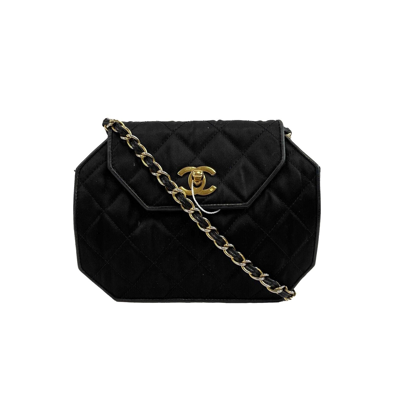 CHANEL Vintage 90's Quilted Octagon CC Shoulder Black Excellent Handbag