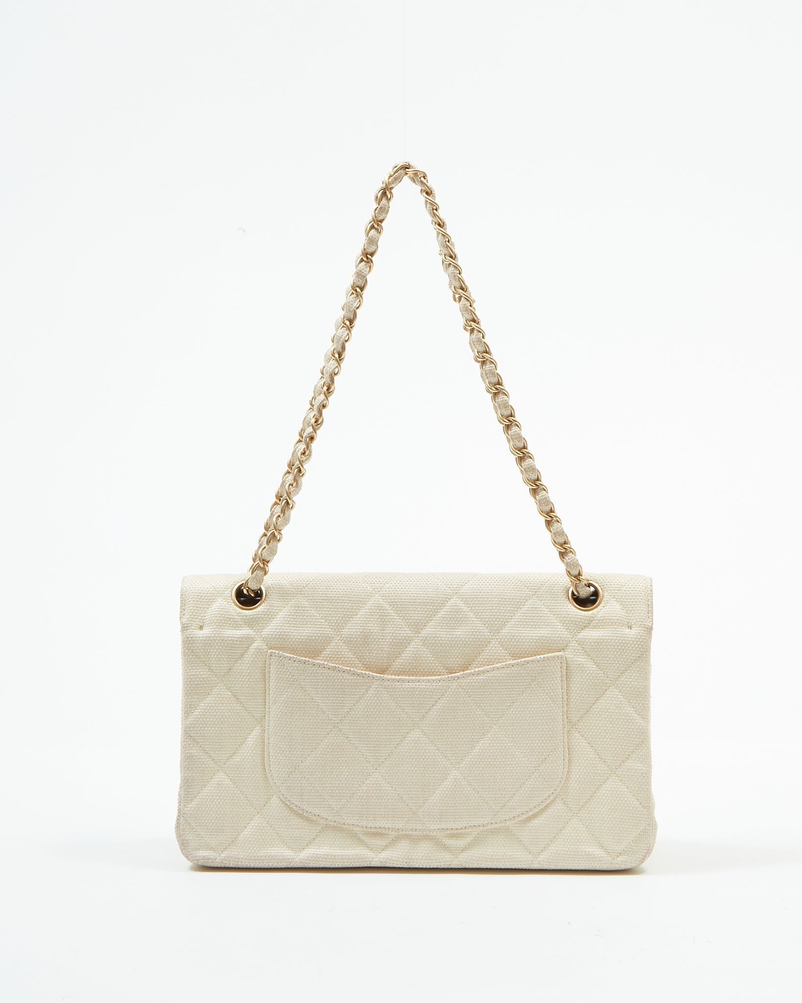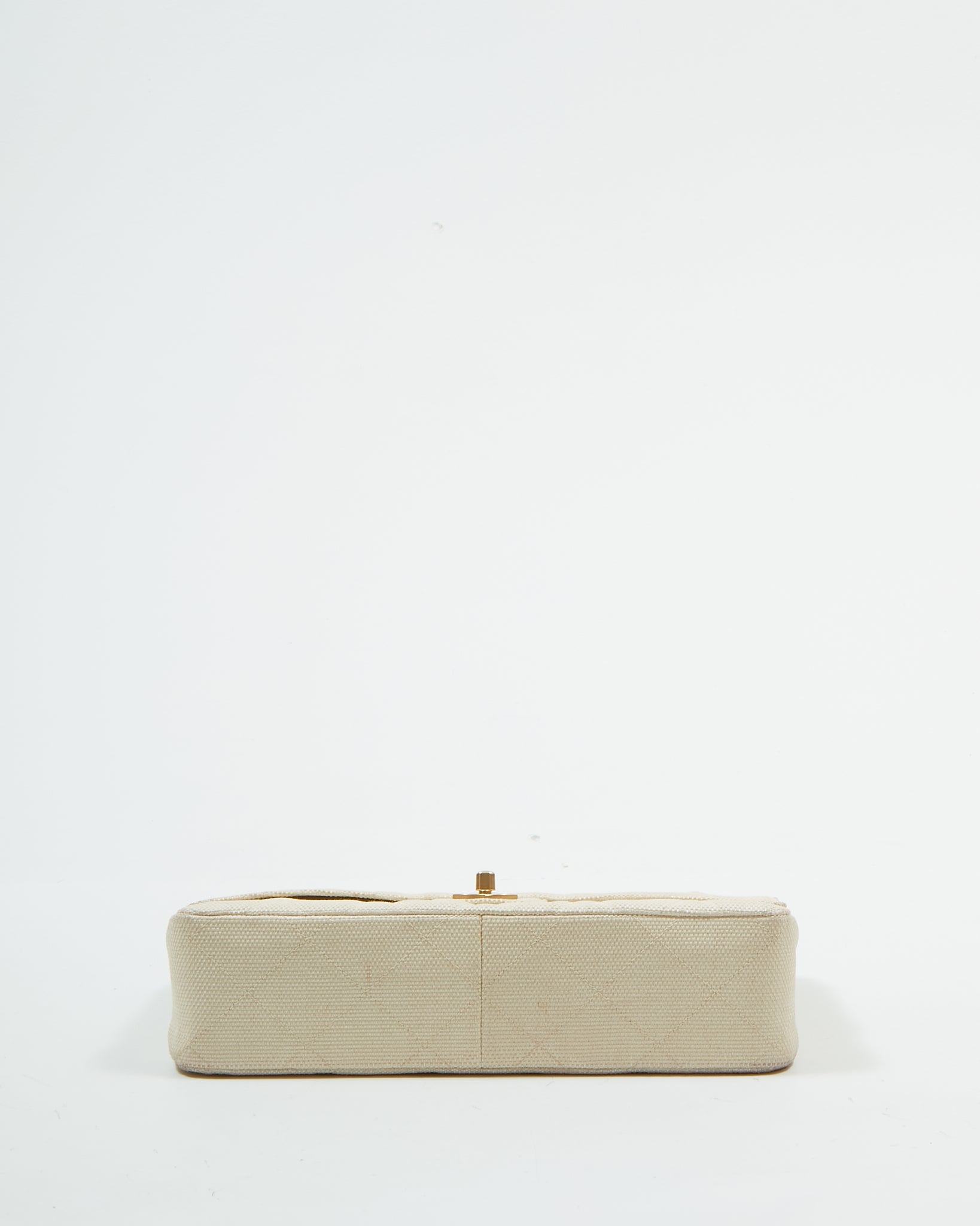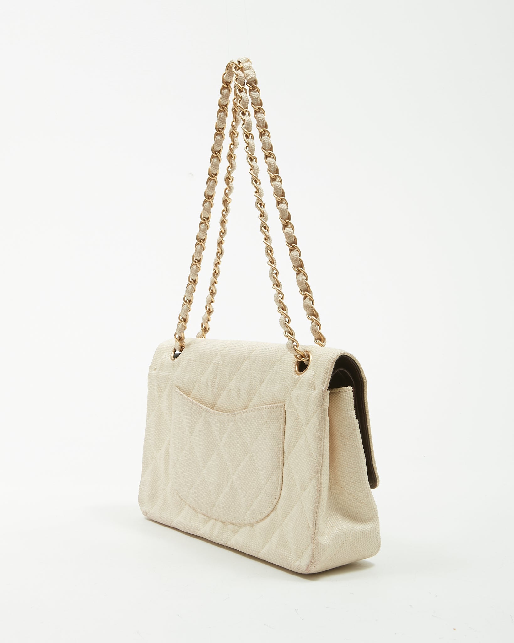 Chanel Vintage Beige Canvas Quilted Medium Double Flap Bag