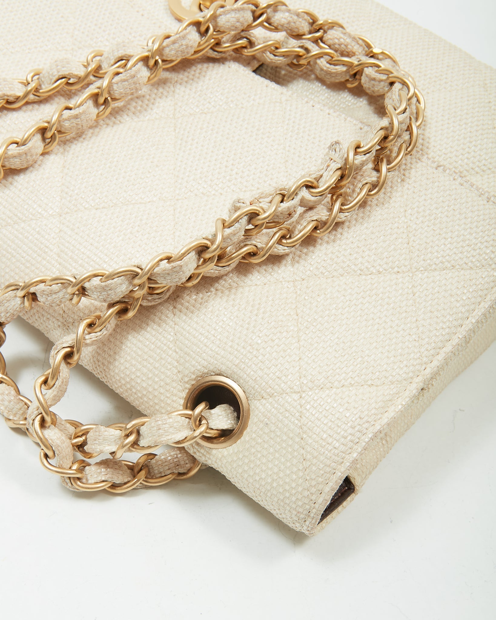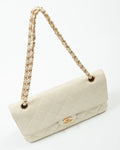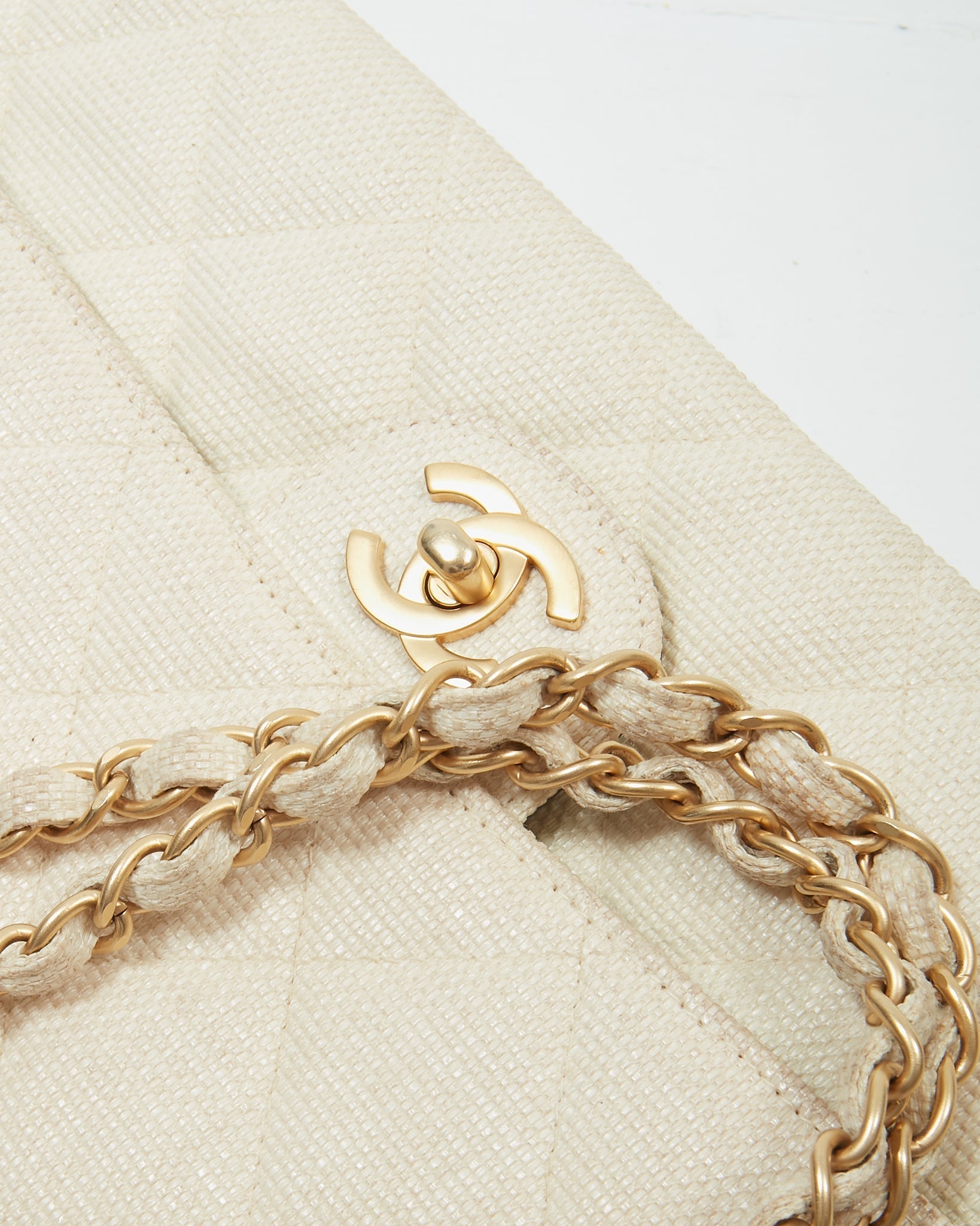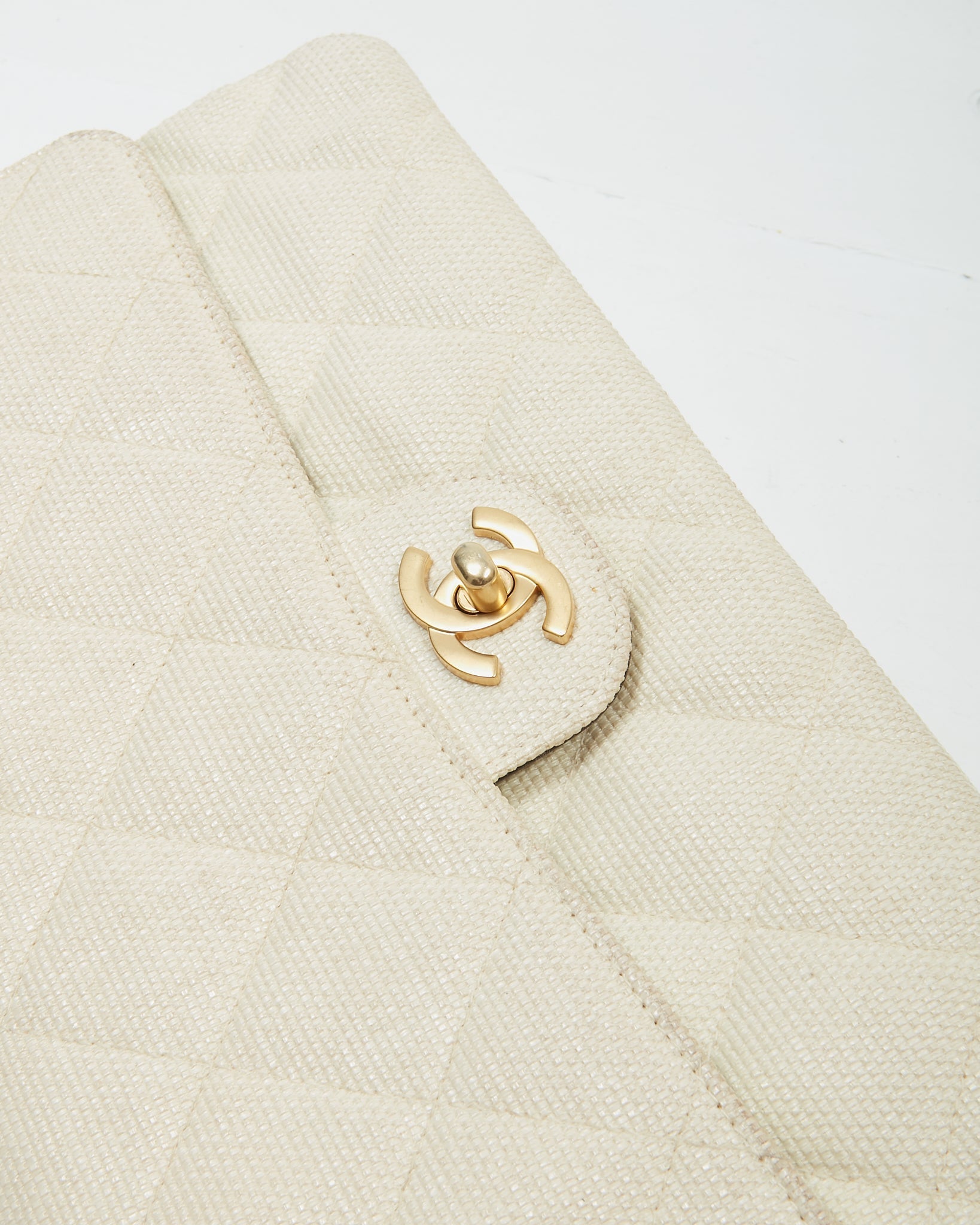 Chanel Vintage Beige Canvas Quilted Medium Double Flap Bag