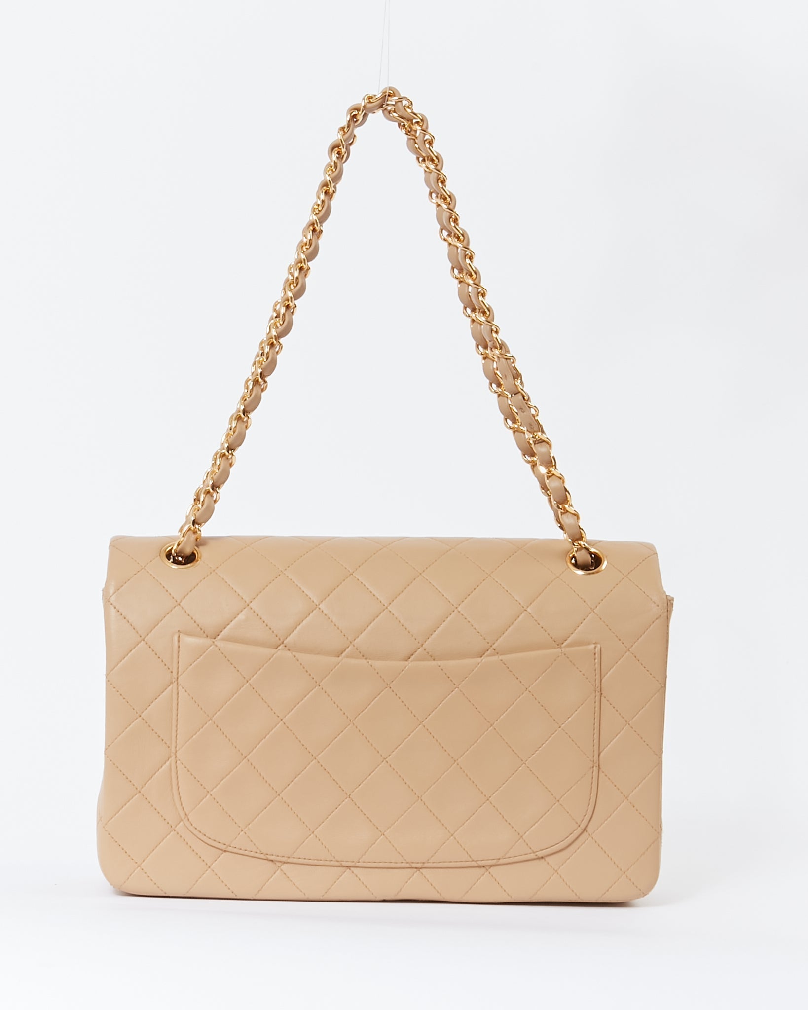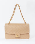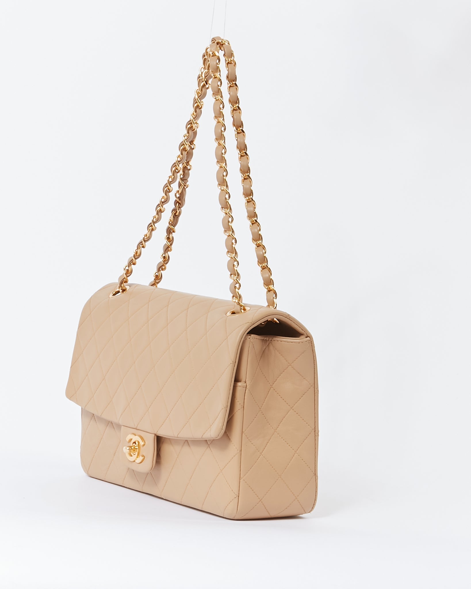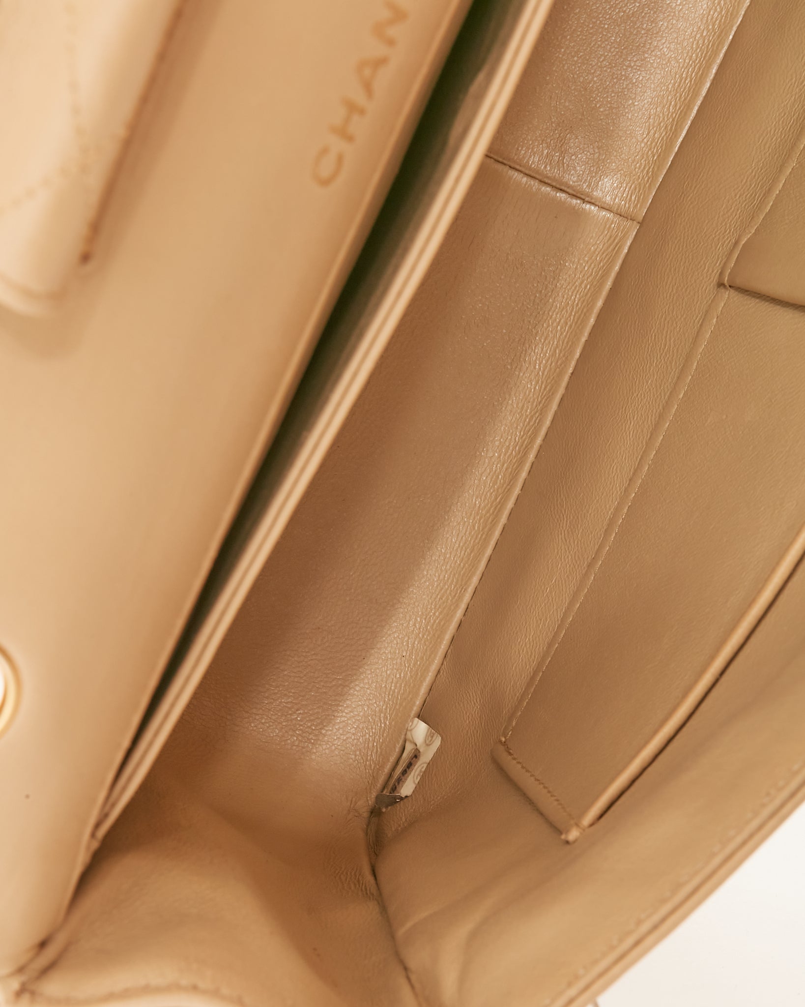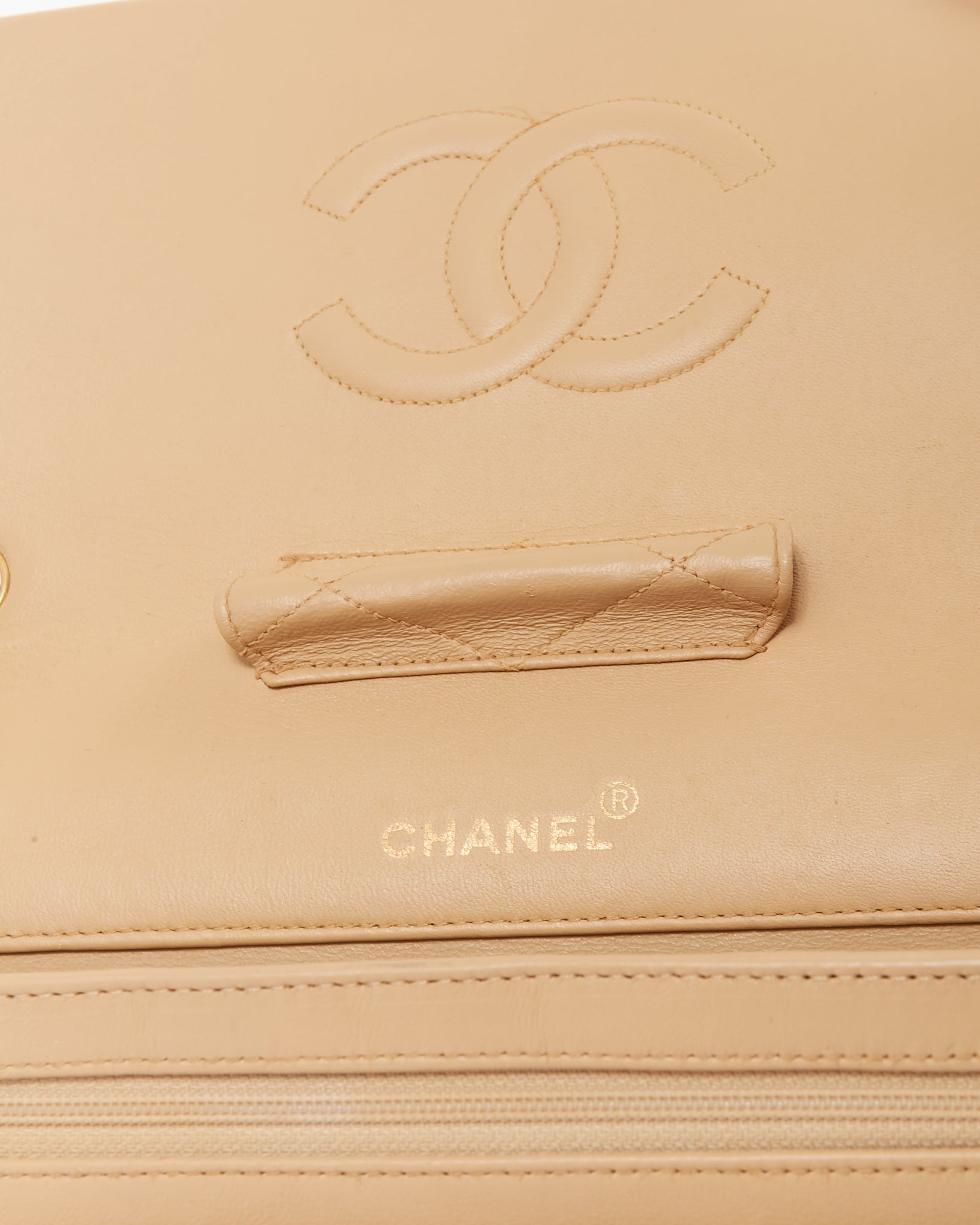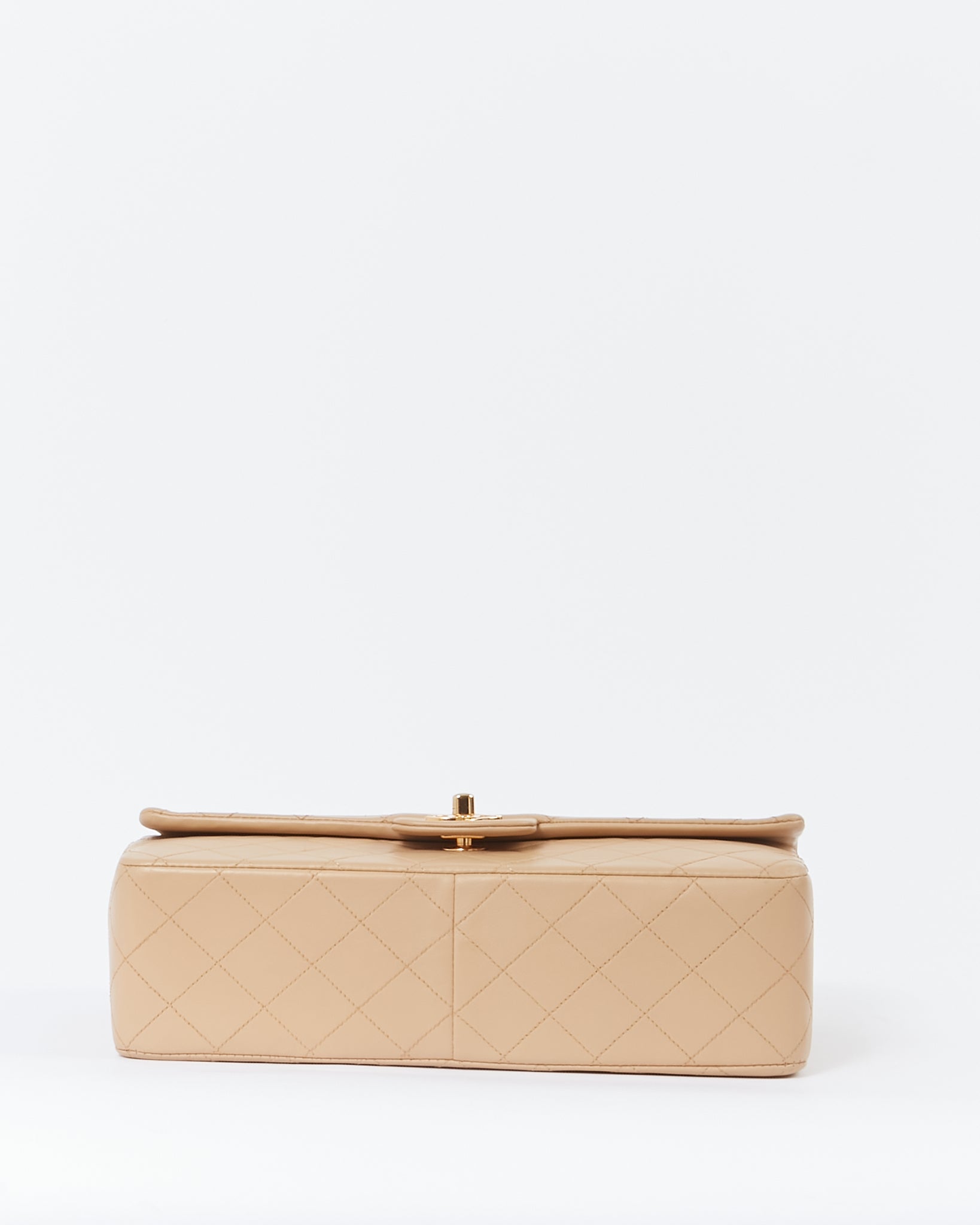 Chanel Vintage Beige Lambskin Medium Single Flap Shoulder Bag GHW