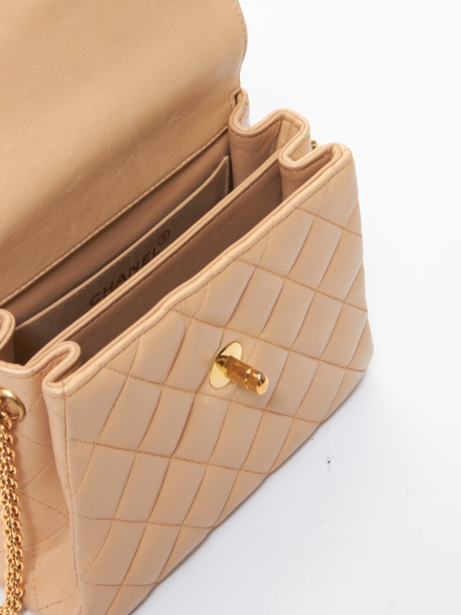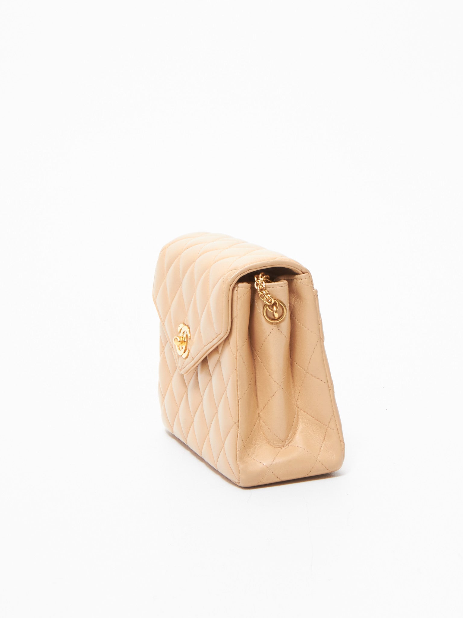 Chanel Vintage Beige Lambskin Mini Envelope Flap Bag GHW