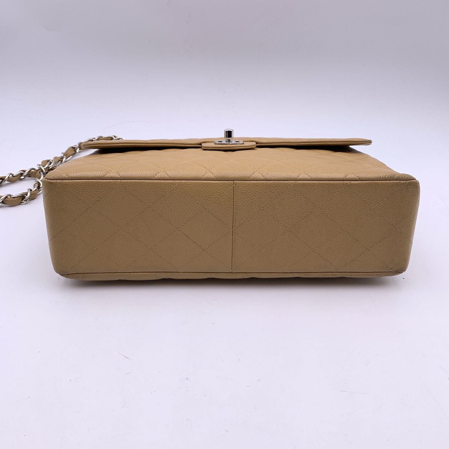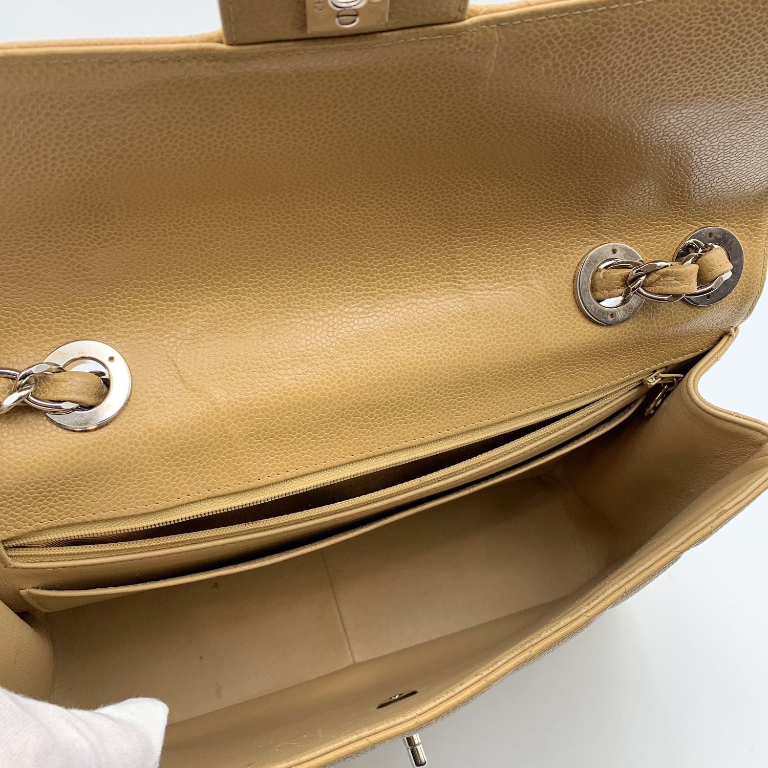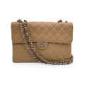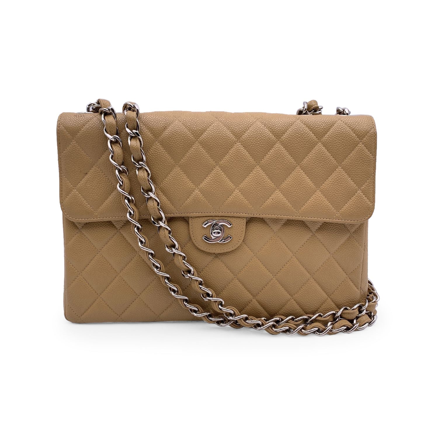 CHANEL Vintage Beige Quilted Caviar Jumbo Timeless Classic Flap Bag
