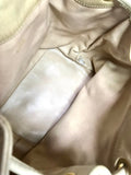 Beige bucket hobo shoulder Bag in lambskin matelasse.
