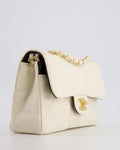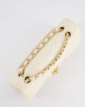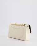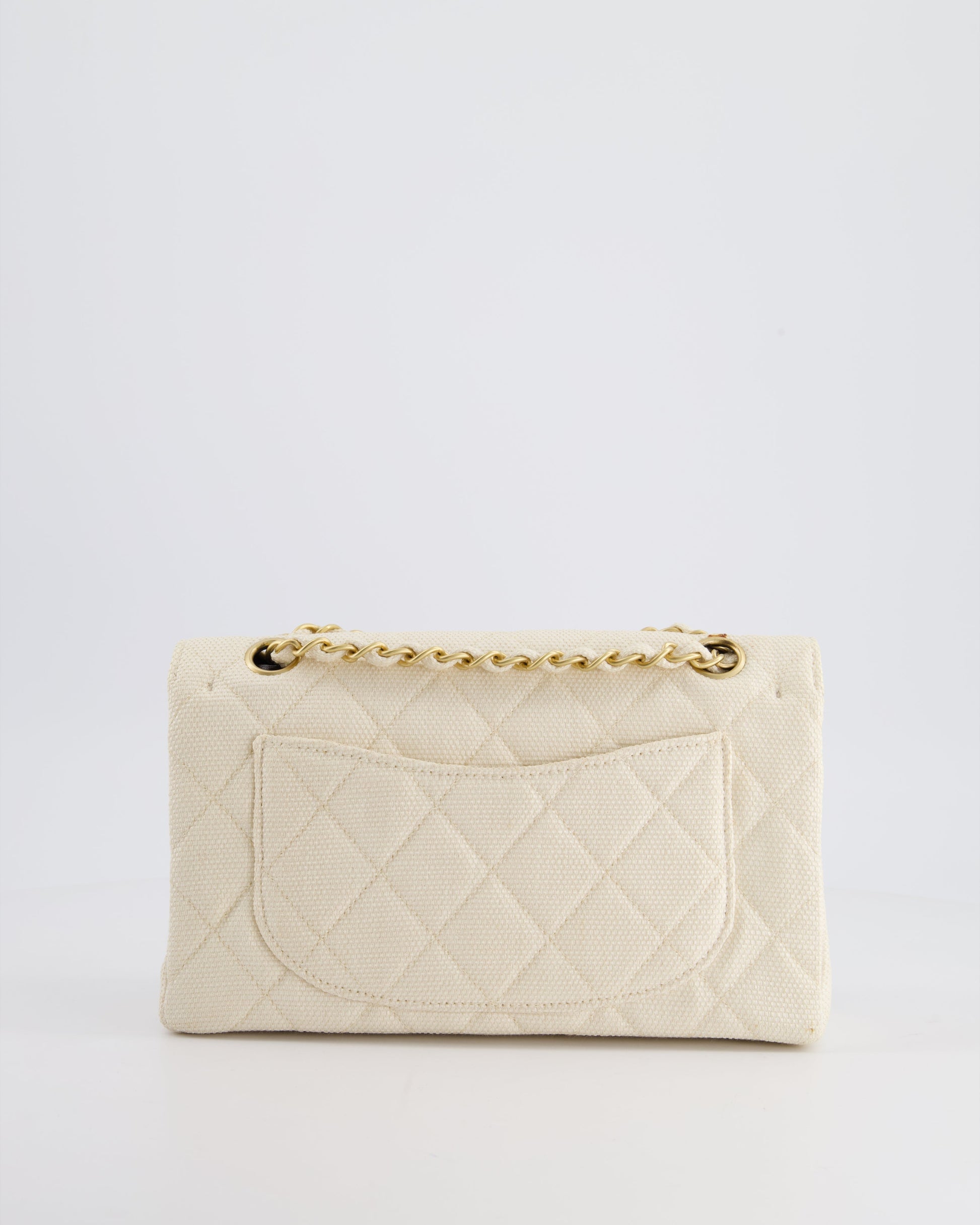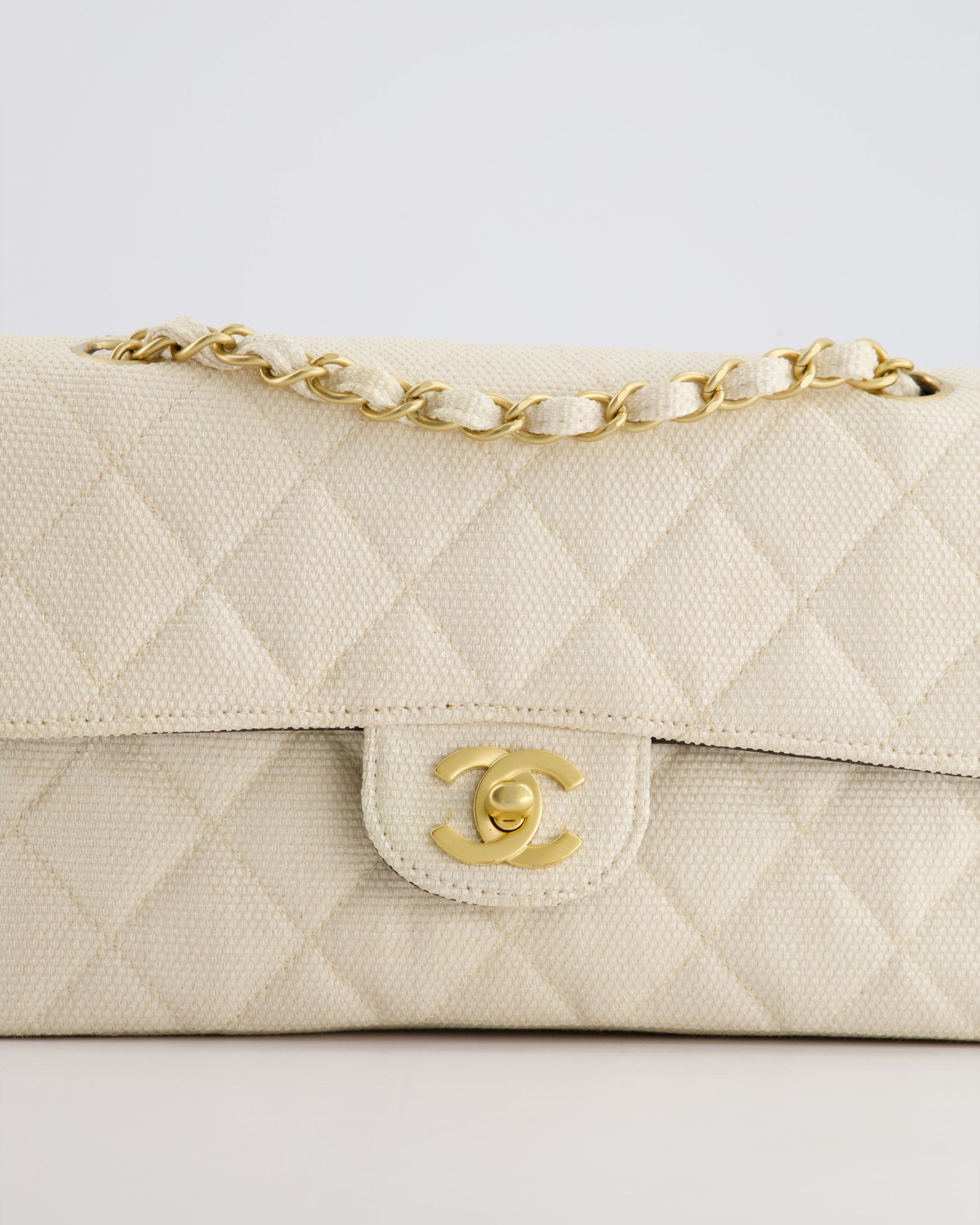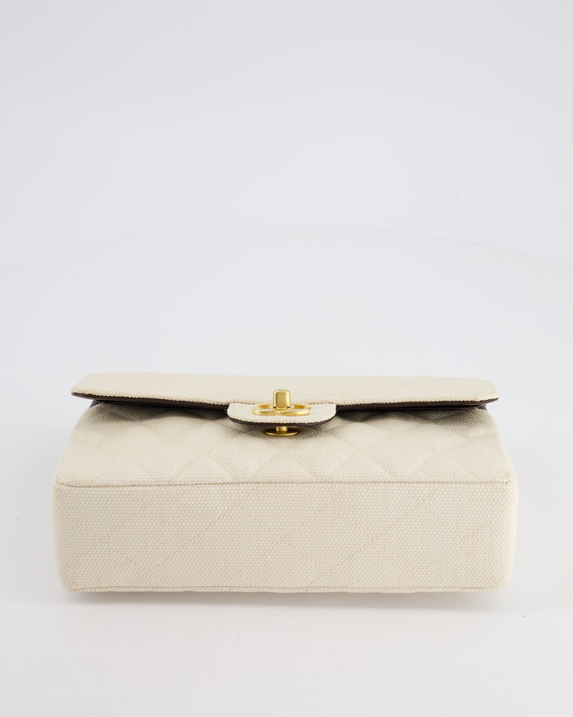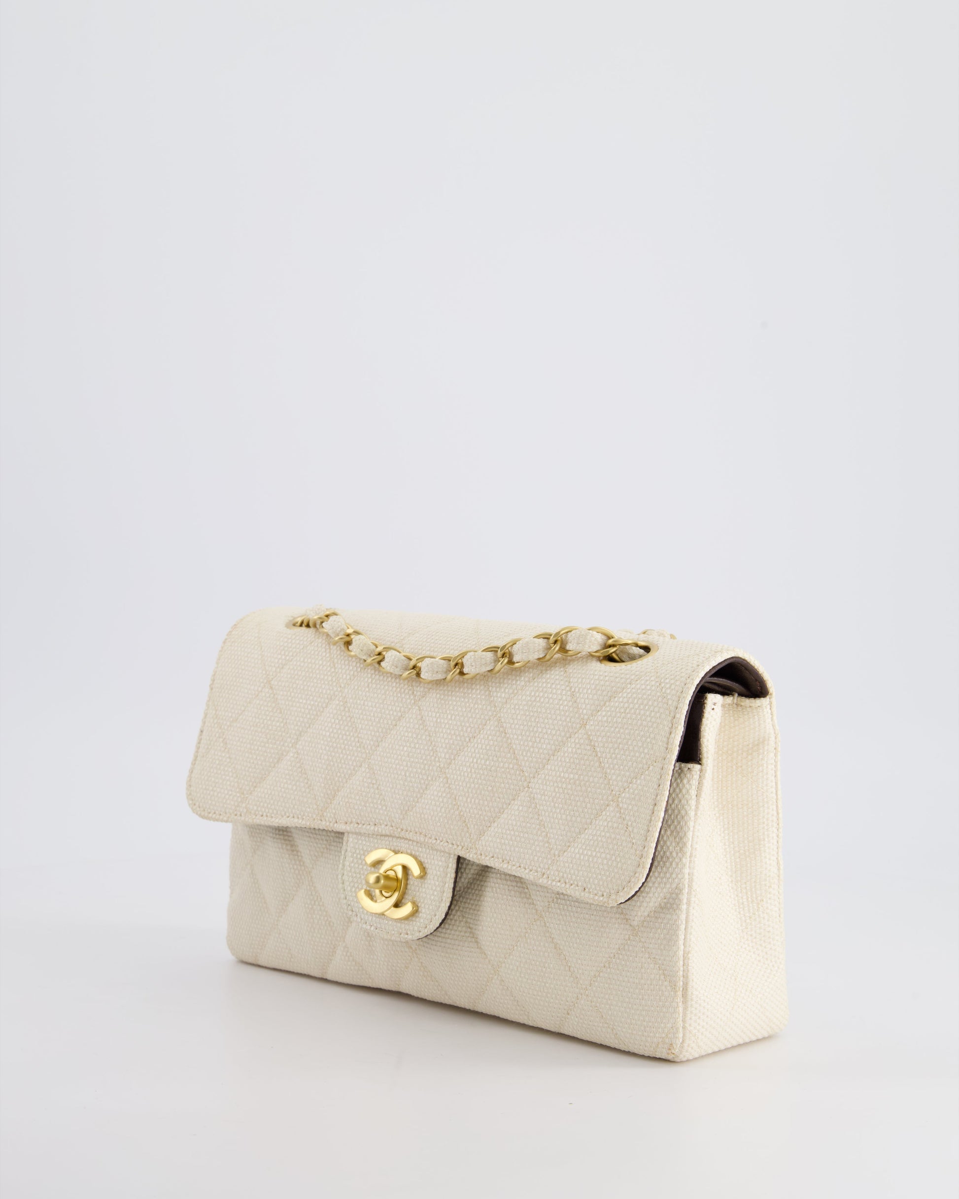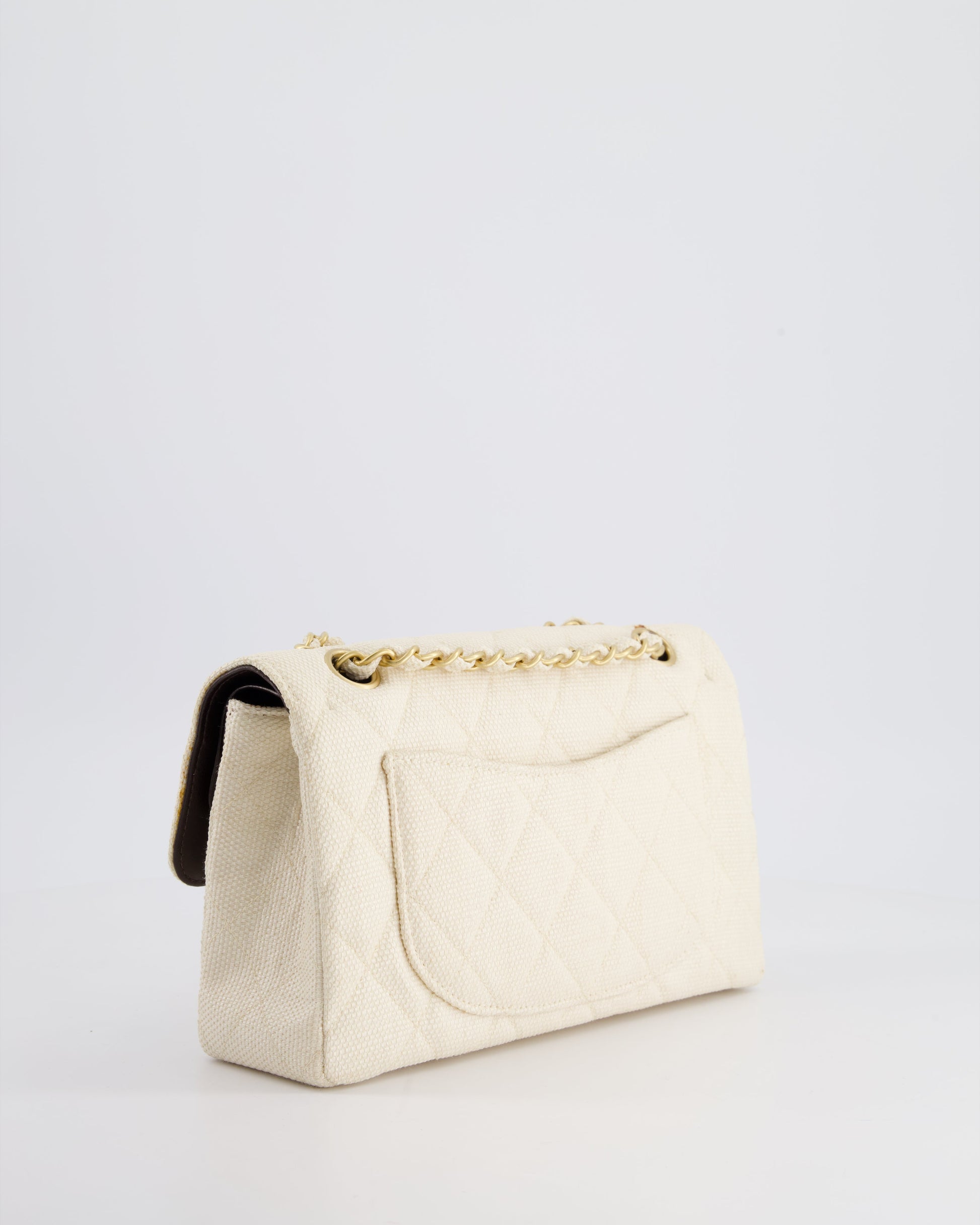 Chanel Vintage Beige Raffia Small Classic Double Flap Bag with Chocolate Brown Lambskin Interior and Brushed Gold Hardware