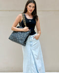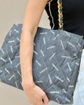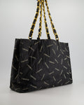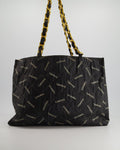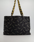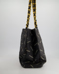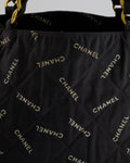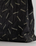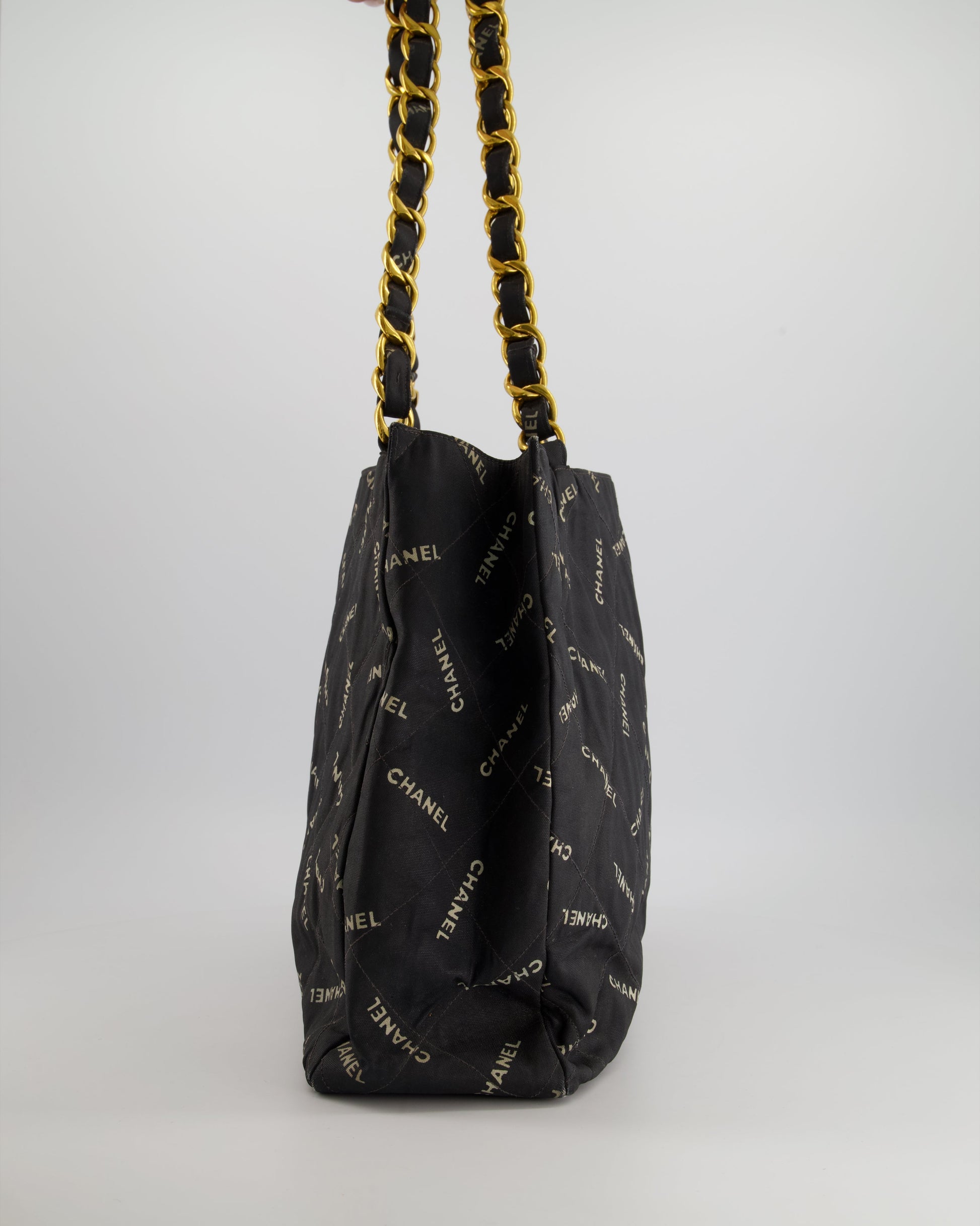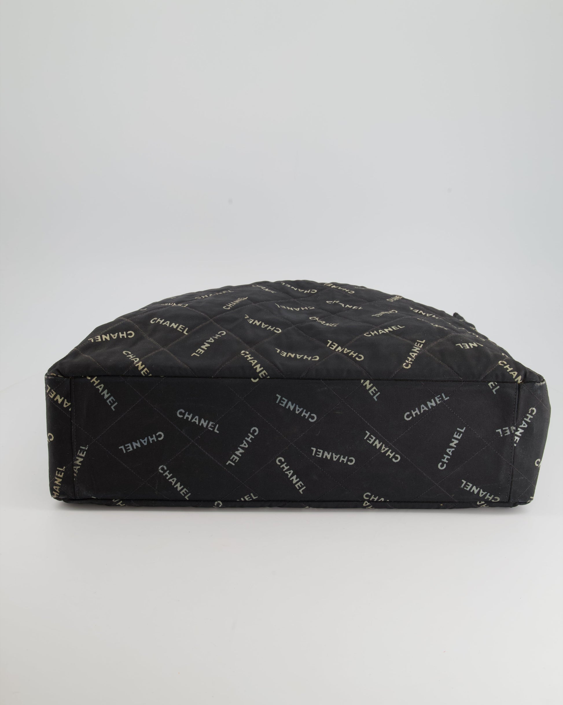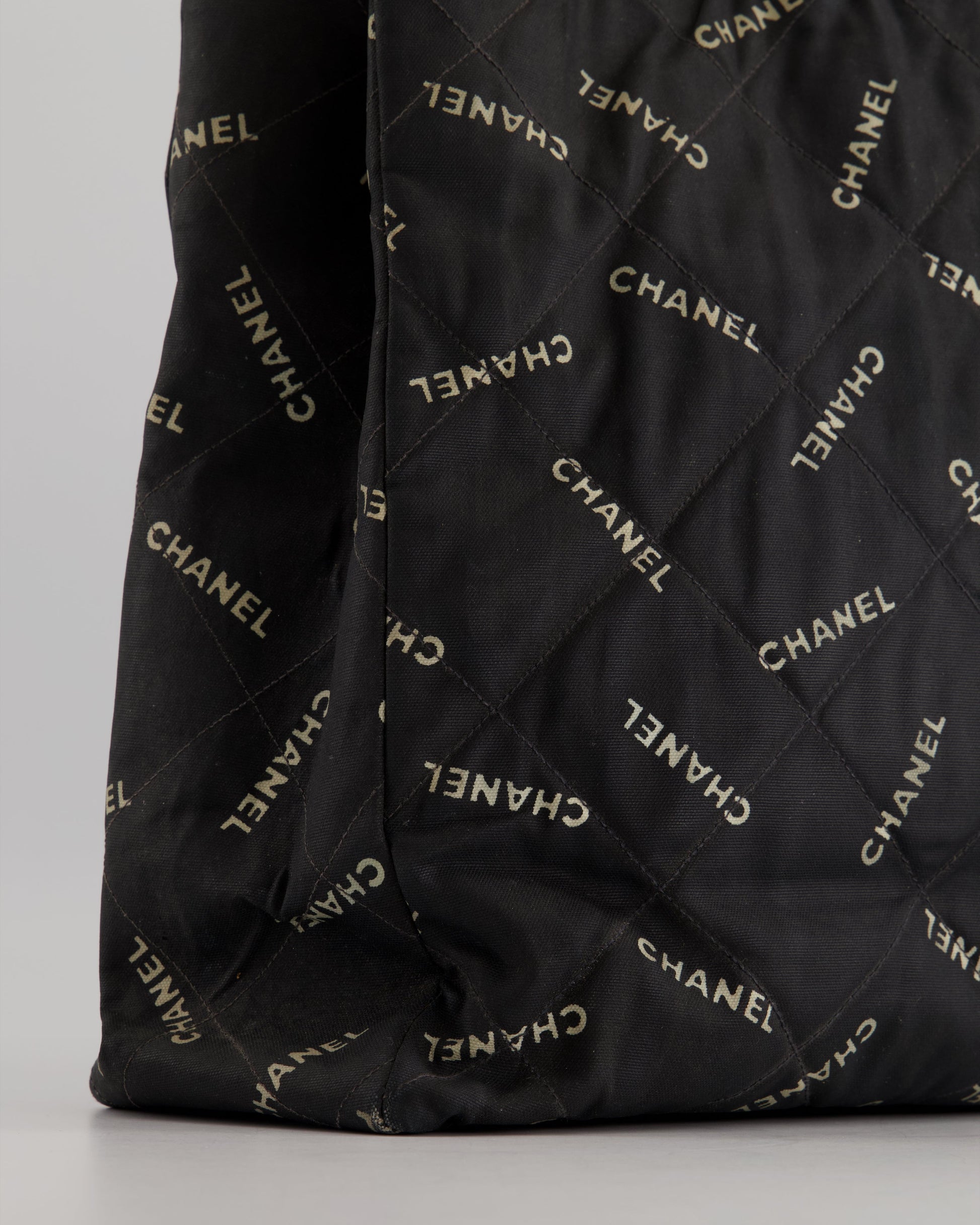 Chanel Vintage Black Bag in Quilted Canvas Logo Print with Gold Hardware
