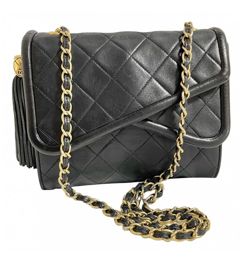 Featuring 2 collar-like double flaps and matching leather tassel with CC mark on it.