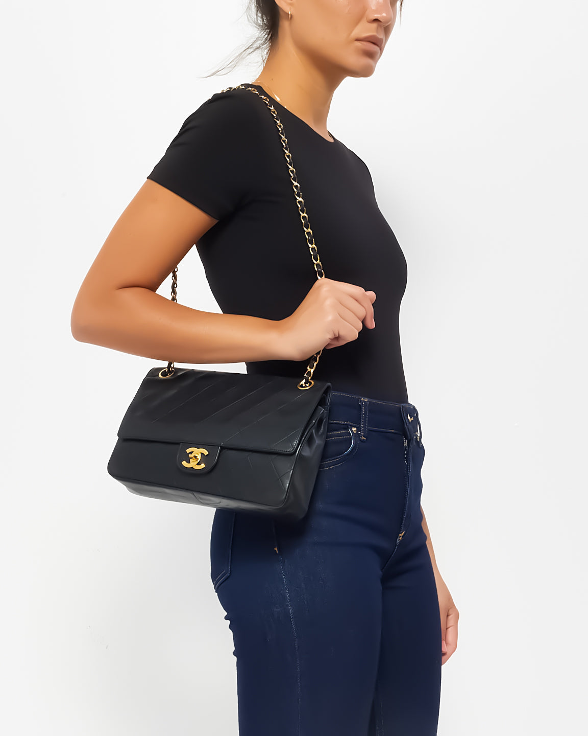 Chanel Vintage Black Lambskin Medium Double Flap Bag GHW