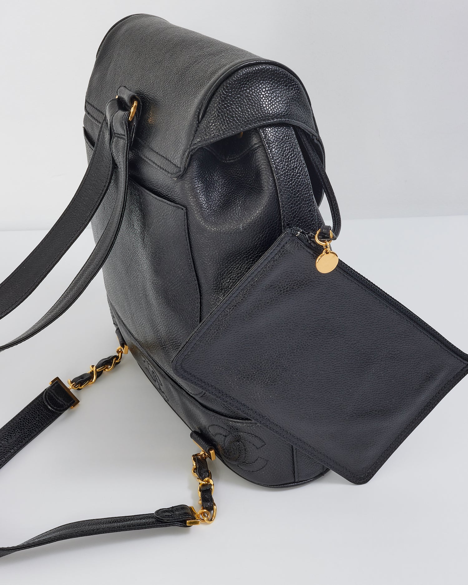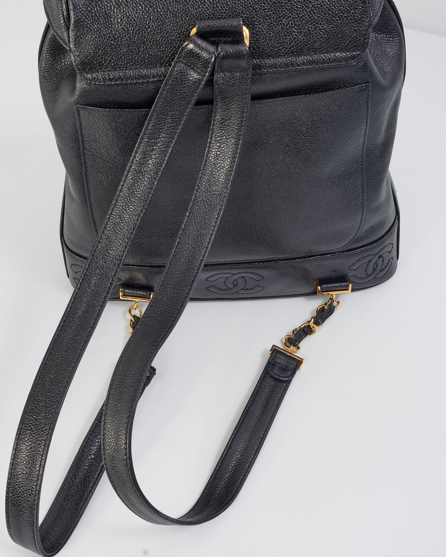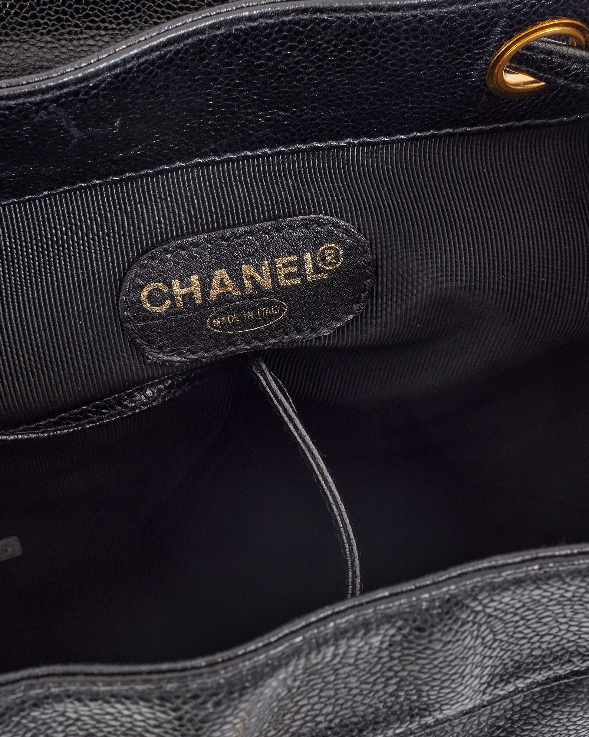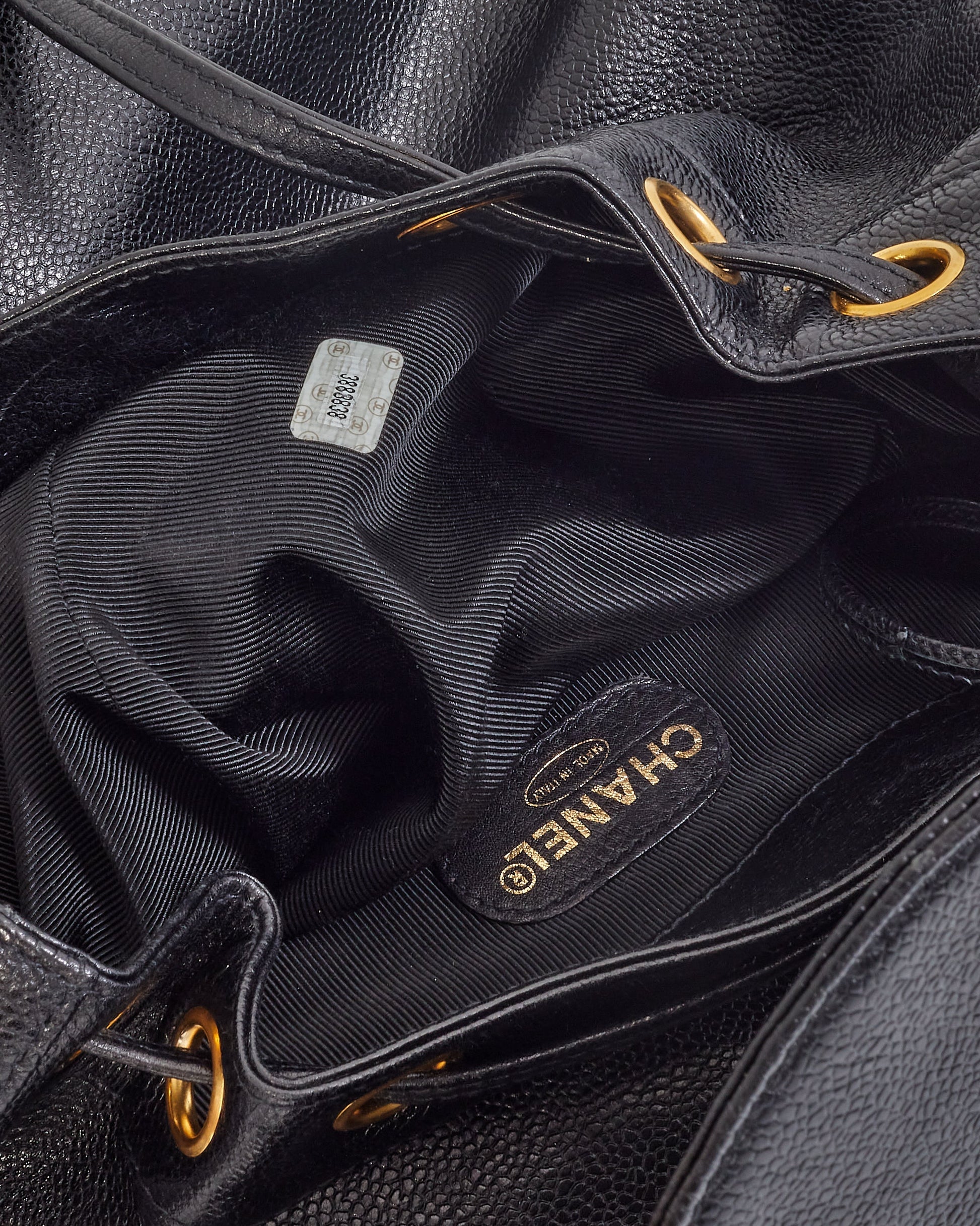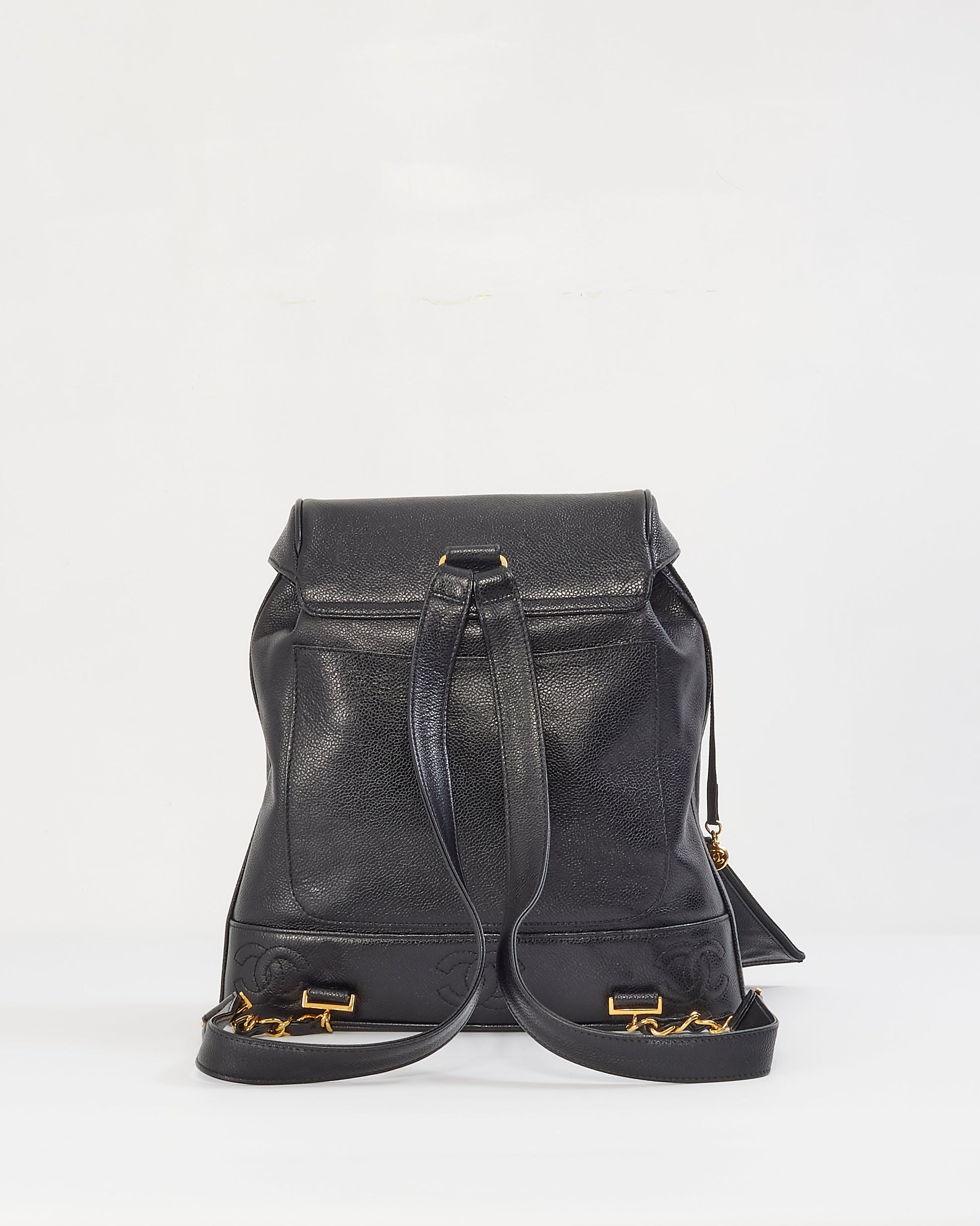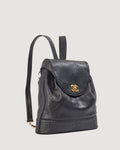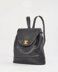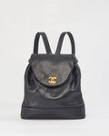 Chanel Vintage Black Caviar Leather Drawstring Triple CC Backpack