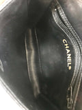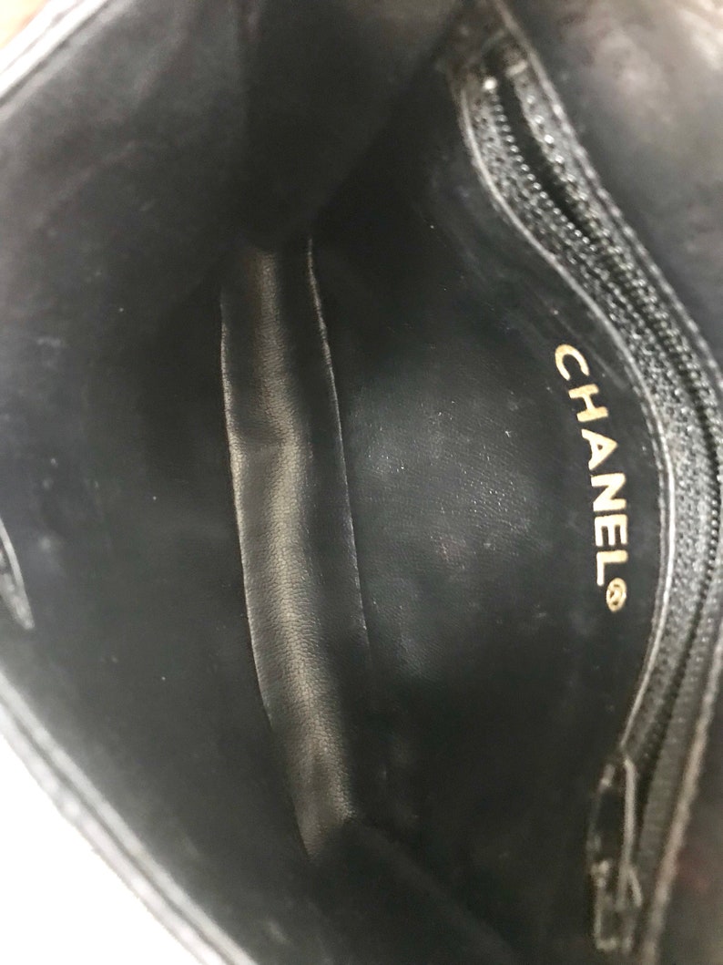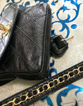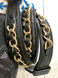 Vintage Chanel black goatskin leather waist purse, fanny Bag with golden chain belt and CC closure hock.