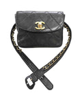 Chanel Vintage black leather waist purse, fanny pack with golden chain belt and CC closure hock