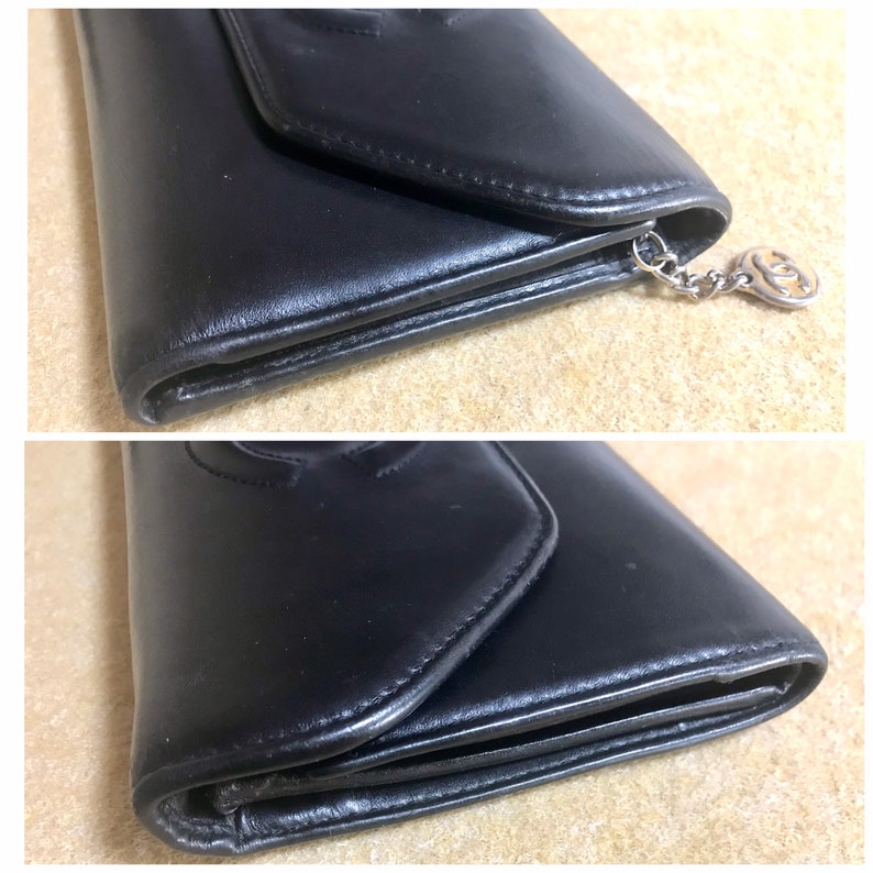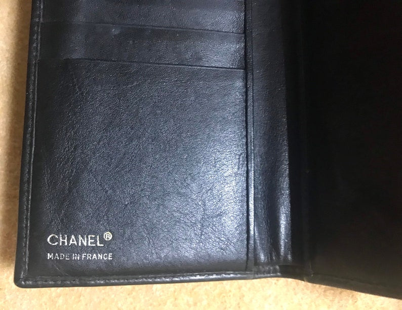 Classic wallet but rare design; Unique flap shape and CC stitch mark on top.